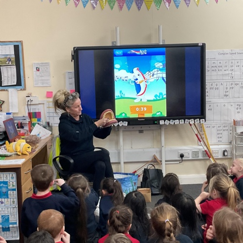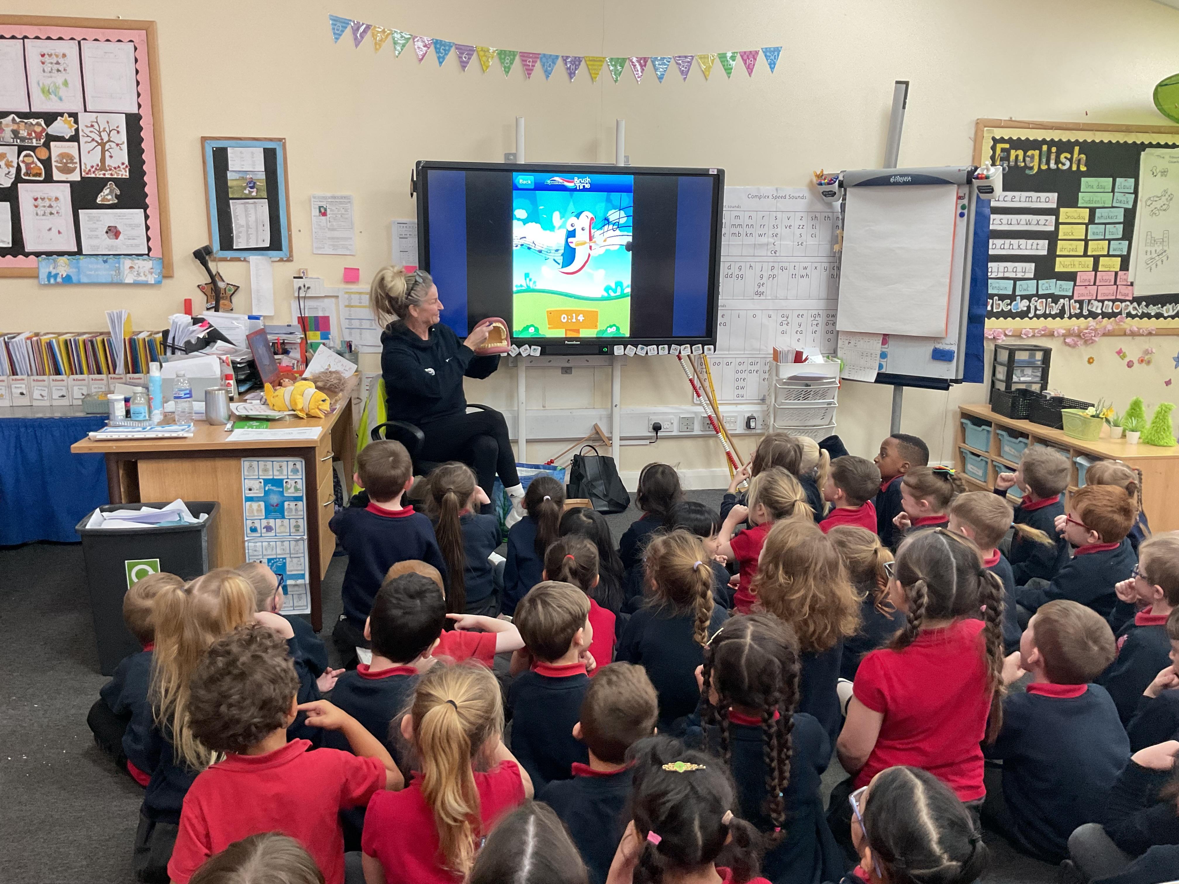 We were shown how to brush our teeth correctly to keep them healthy. We know we need to brush at least twice a day and for 2 minutes at a time. We were also told not to rinse out toothbrushes whilst brushing to make sure we don't wash the toothpaste off our teeth.