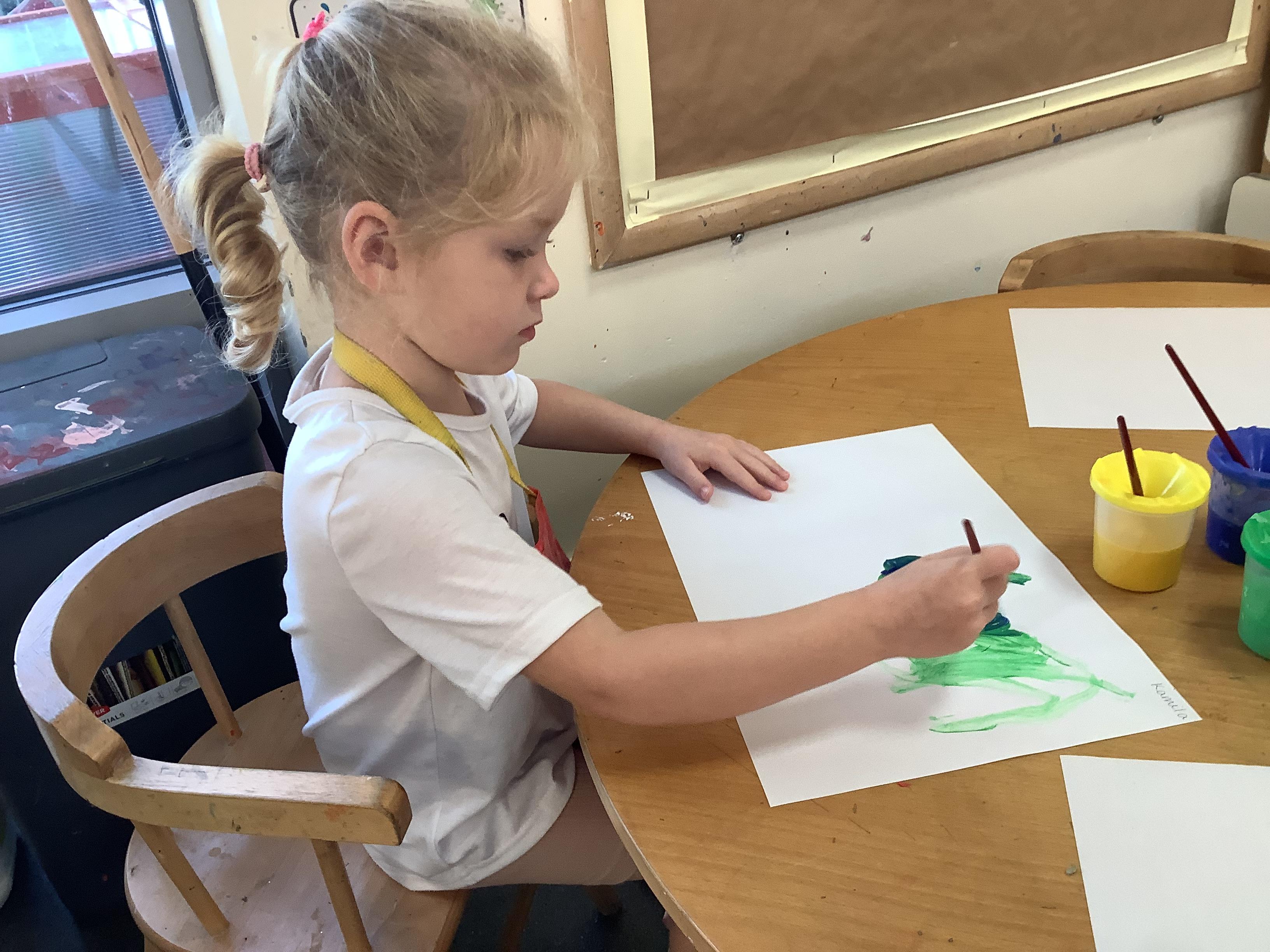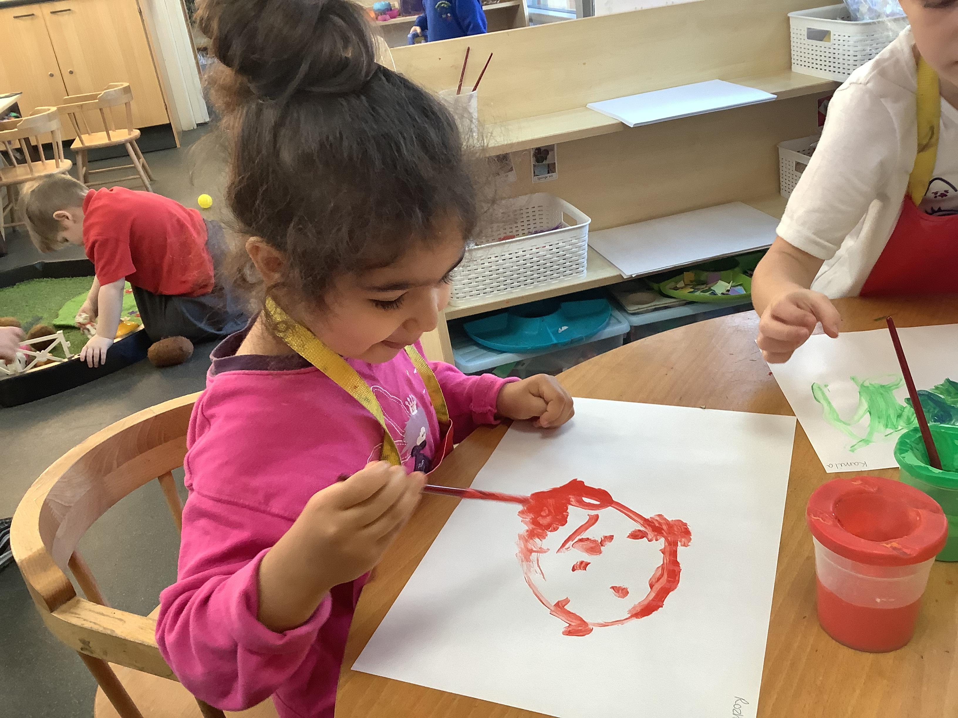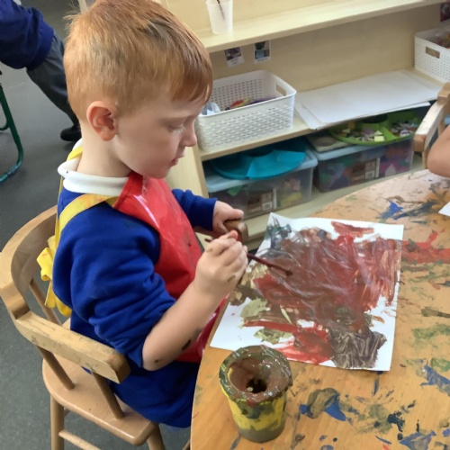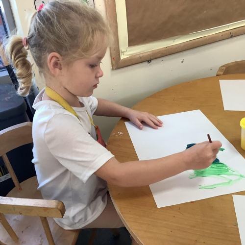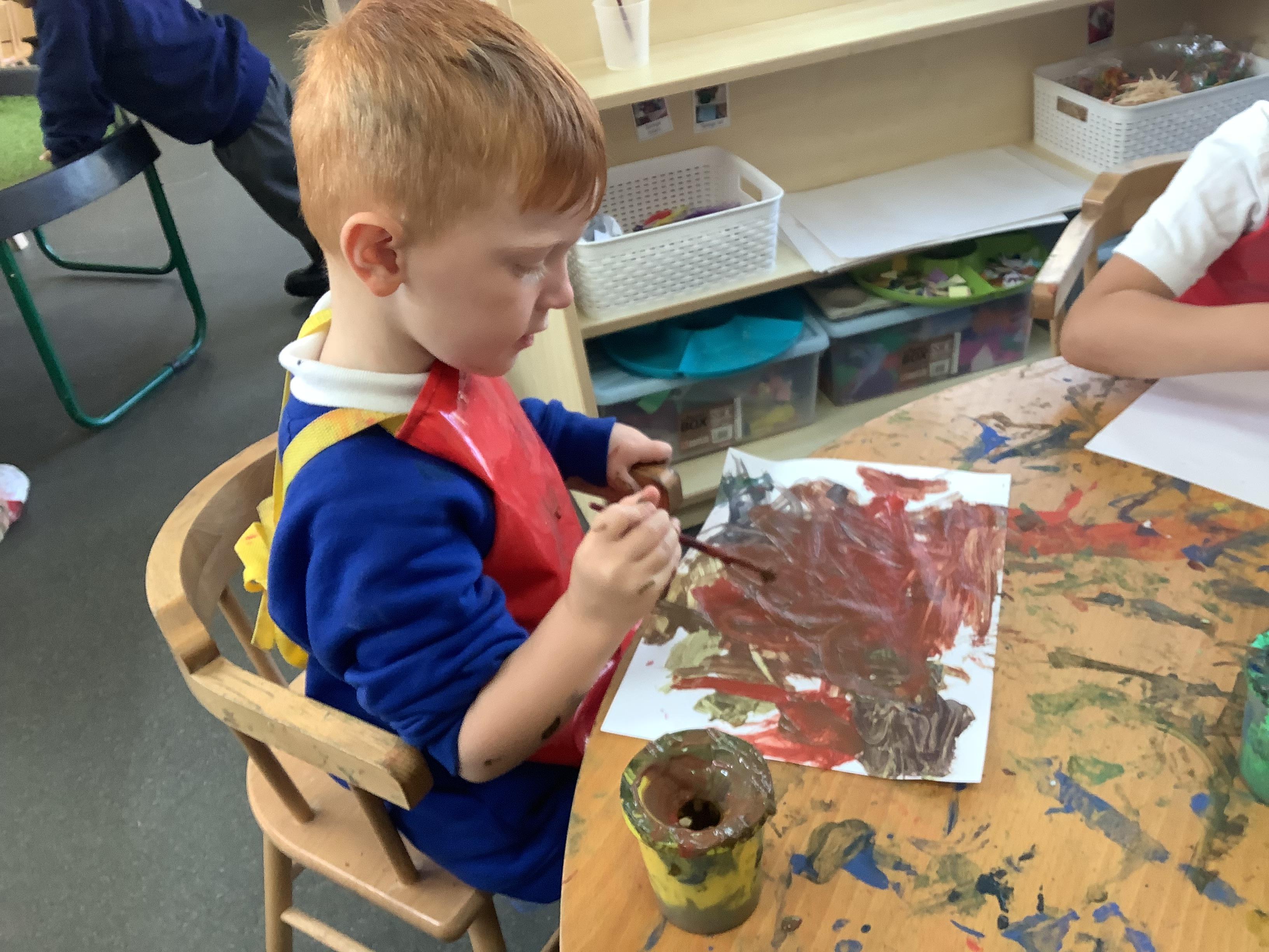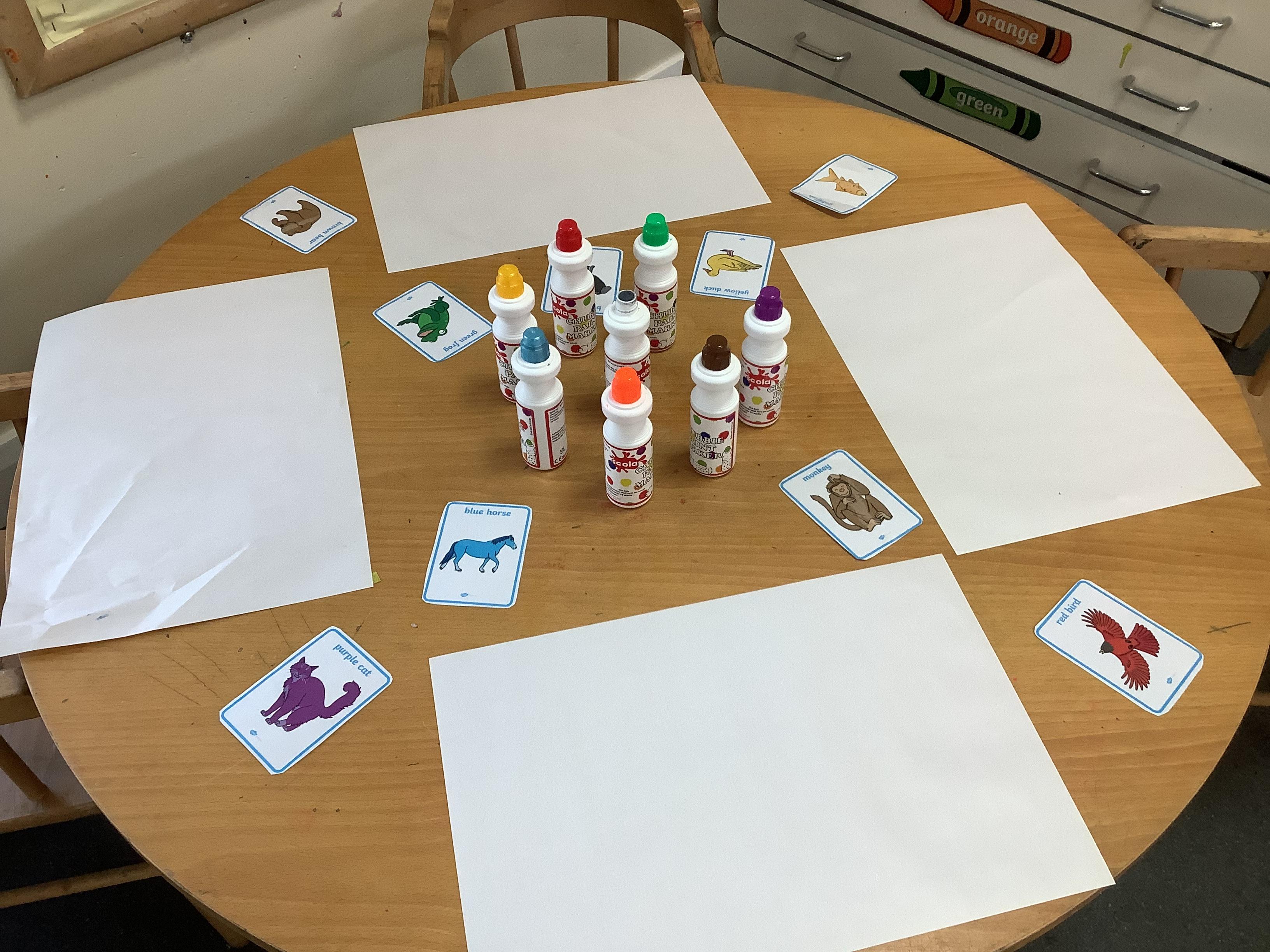 We took the ideas from the book into our drawing and writing practice in the adult focussed activity. We were able to select the correct colours for our picture and some children even copied the letters from their name!