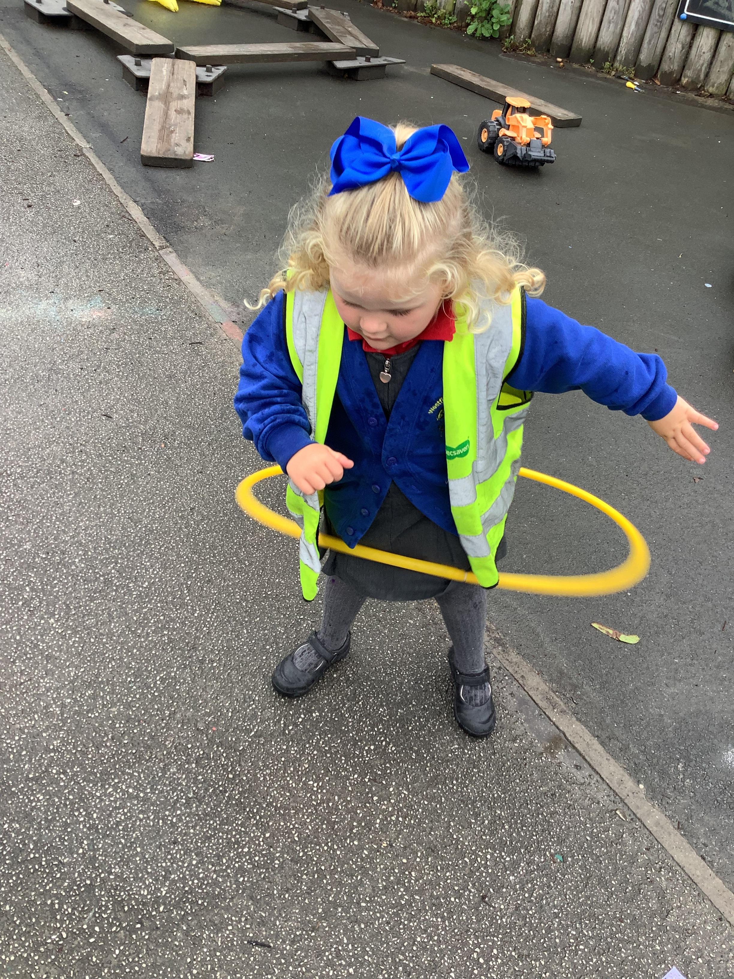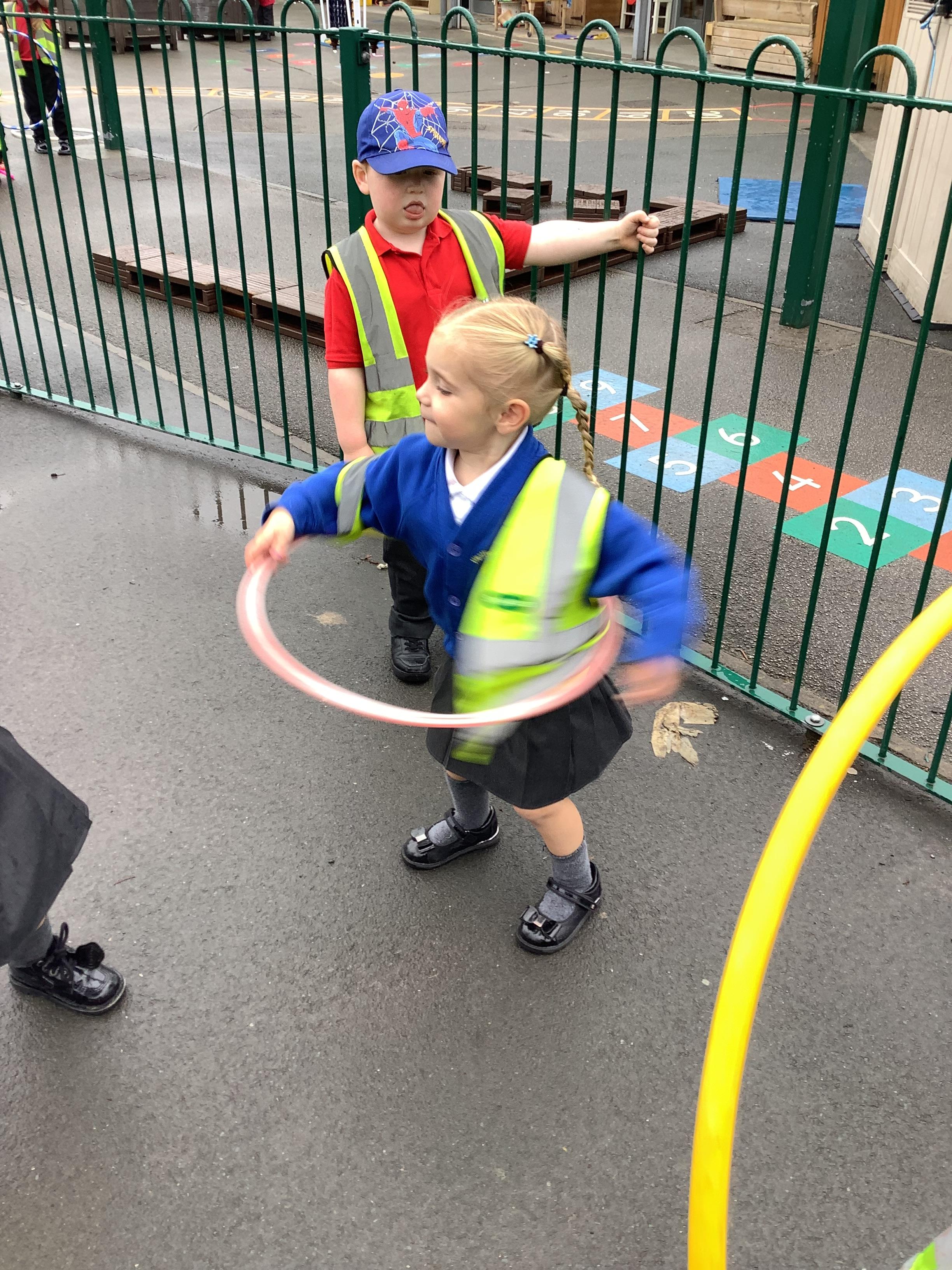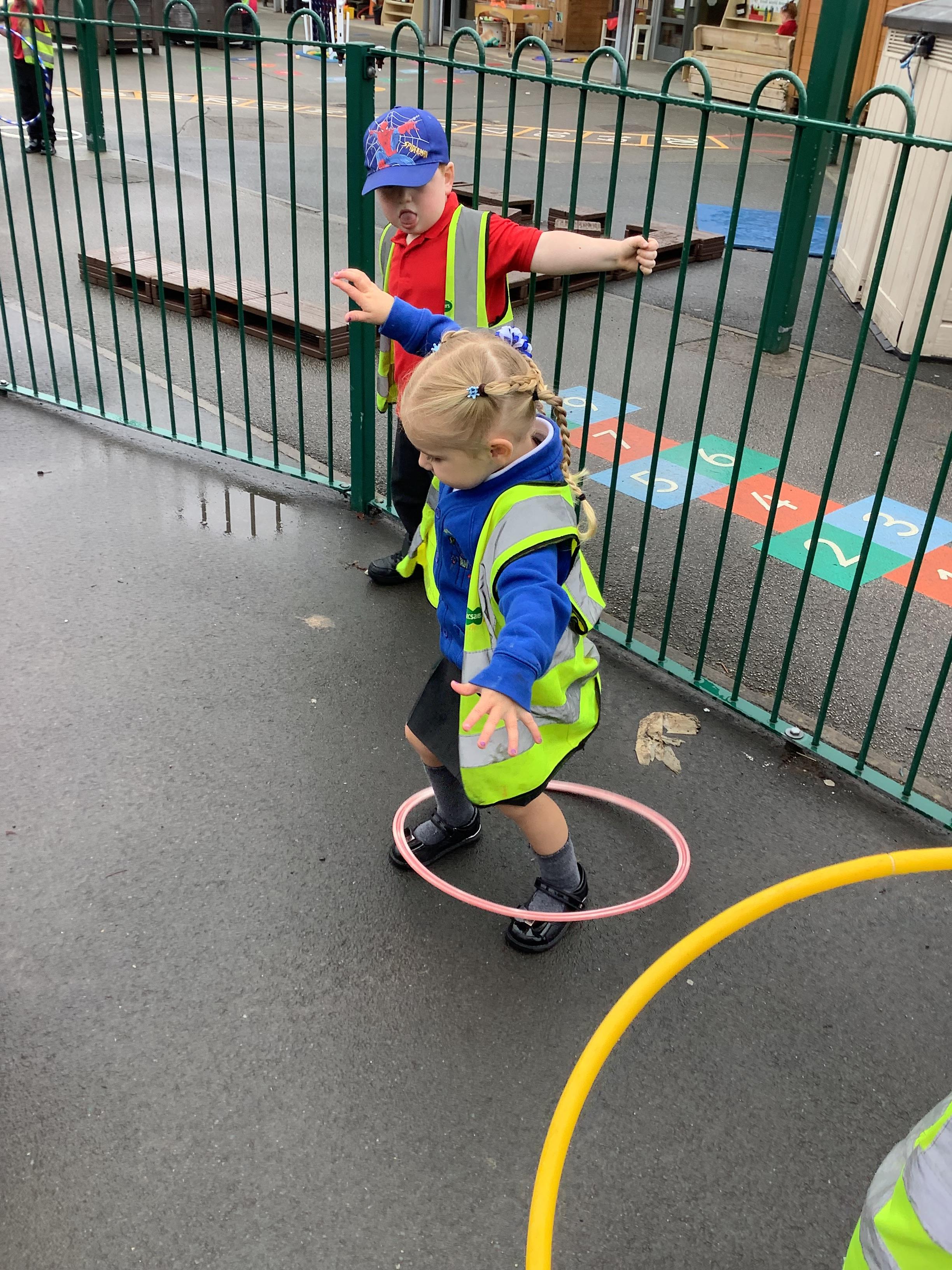 We have also enjoyed outdoor play with the hula hoops (in between the rain!)