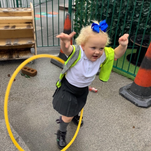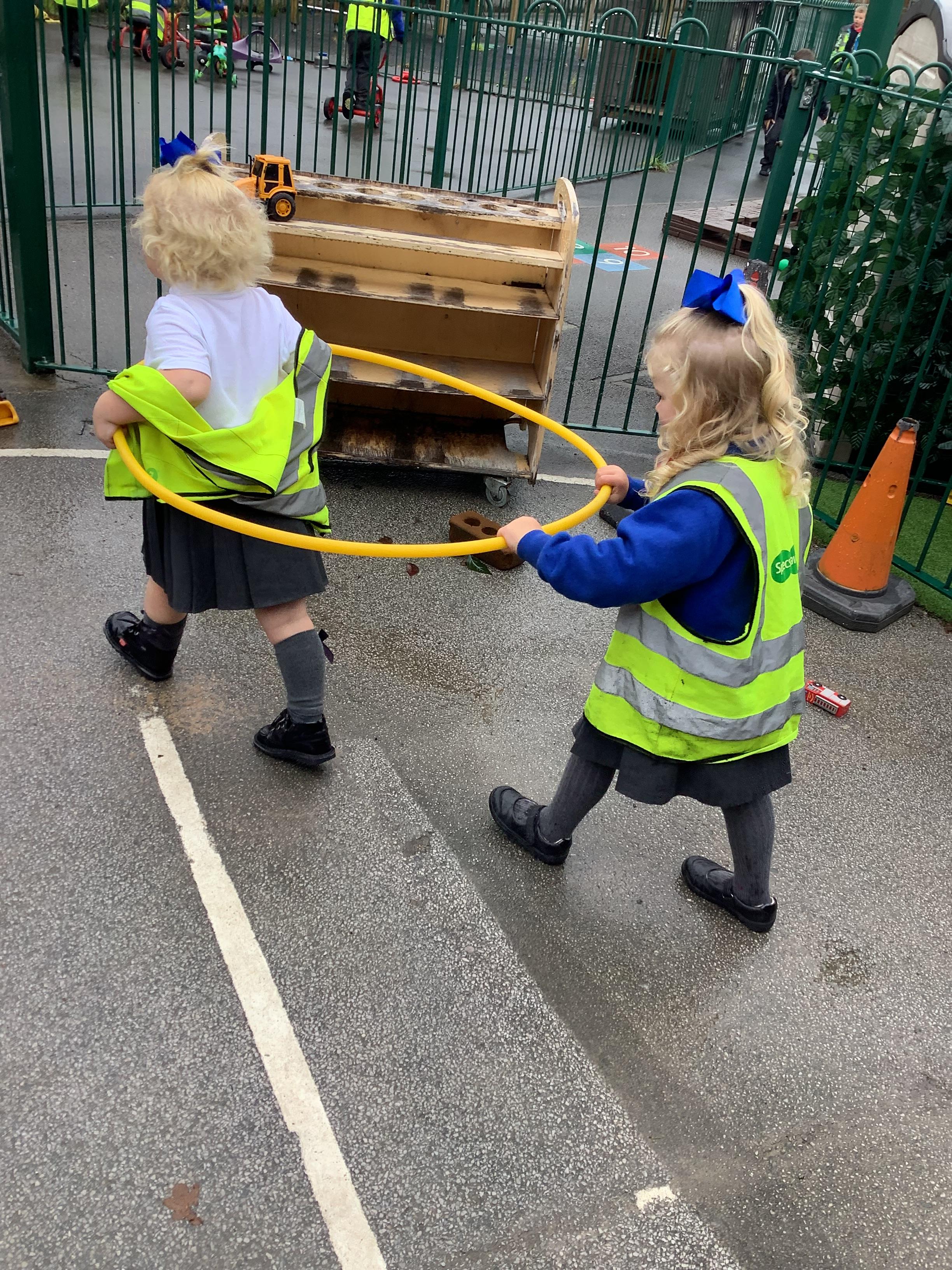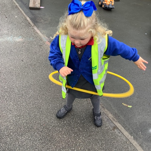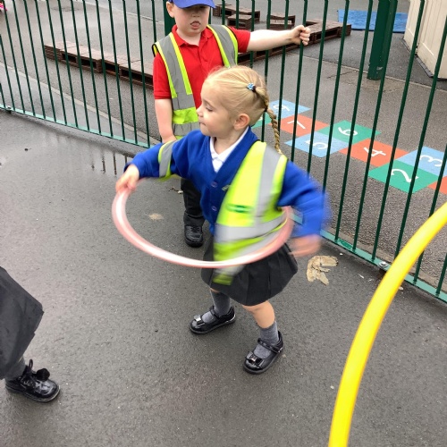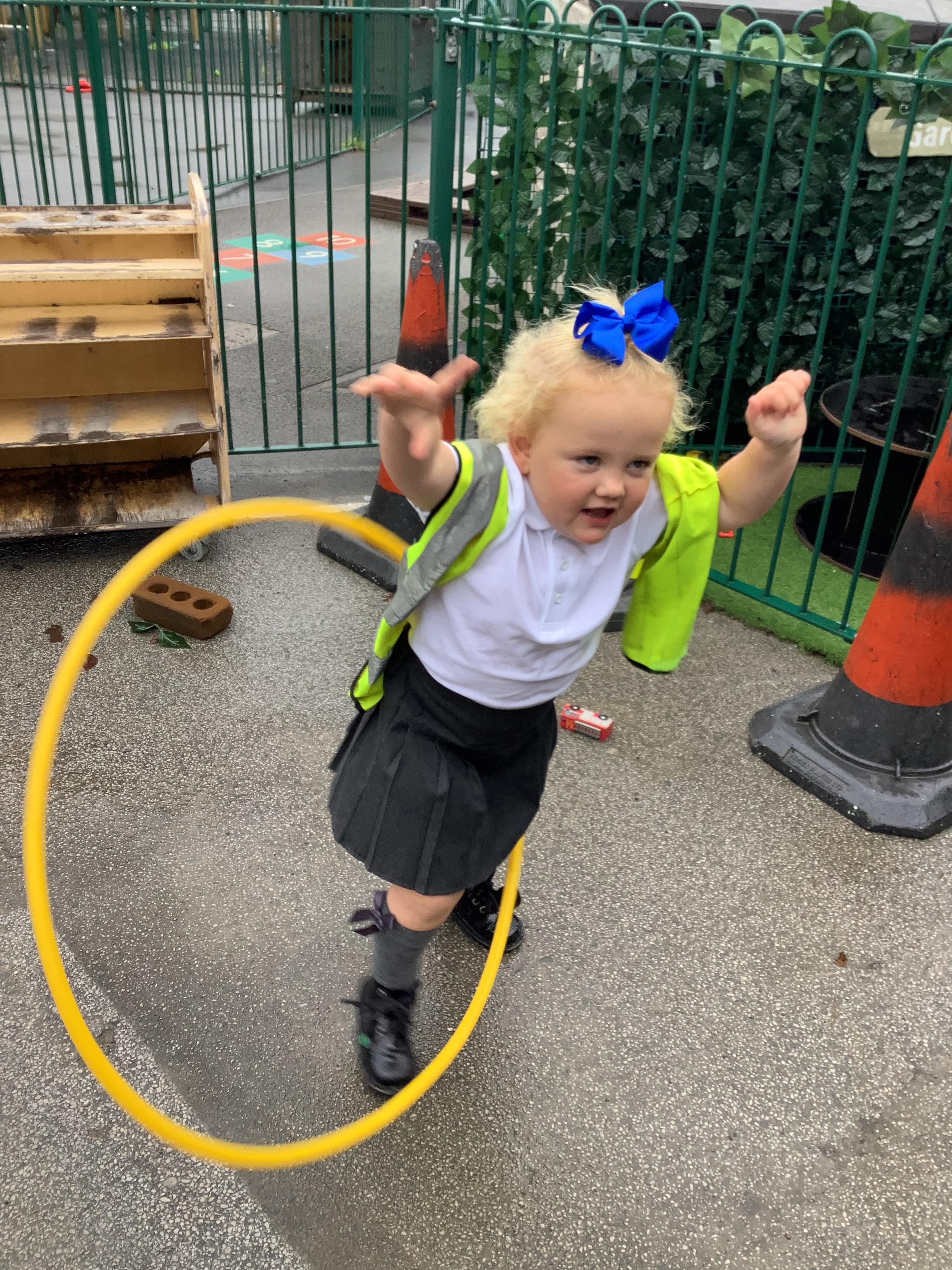 We have also enjoyed outdoor play with the hula hoops (in between the rain!)