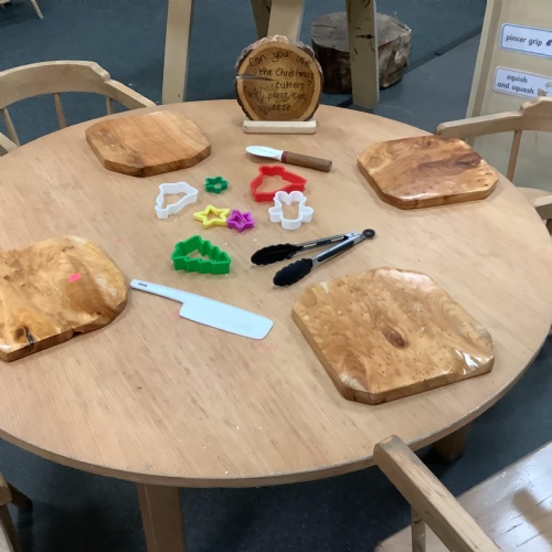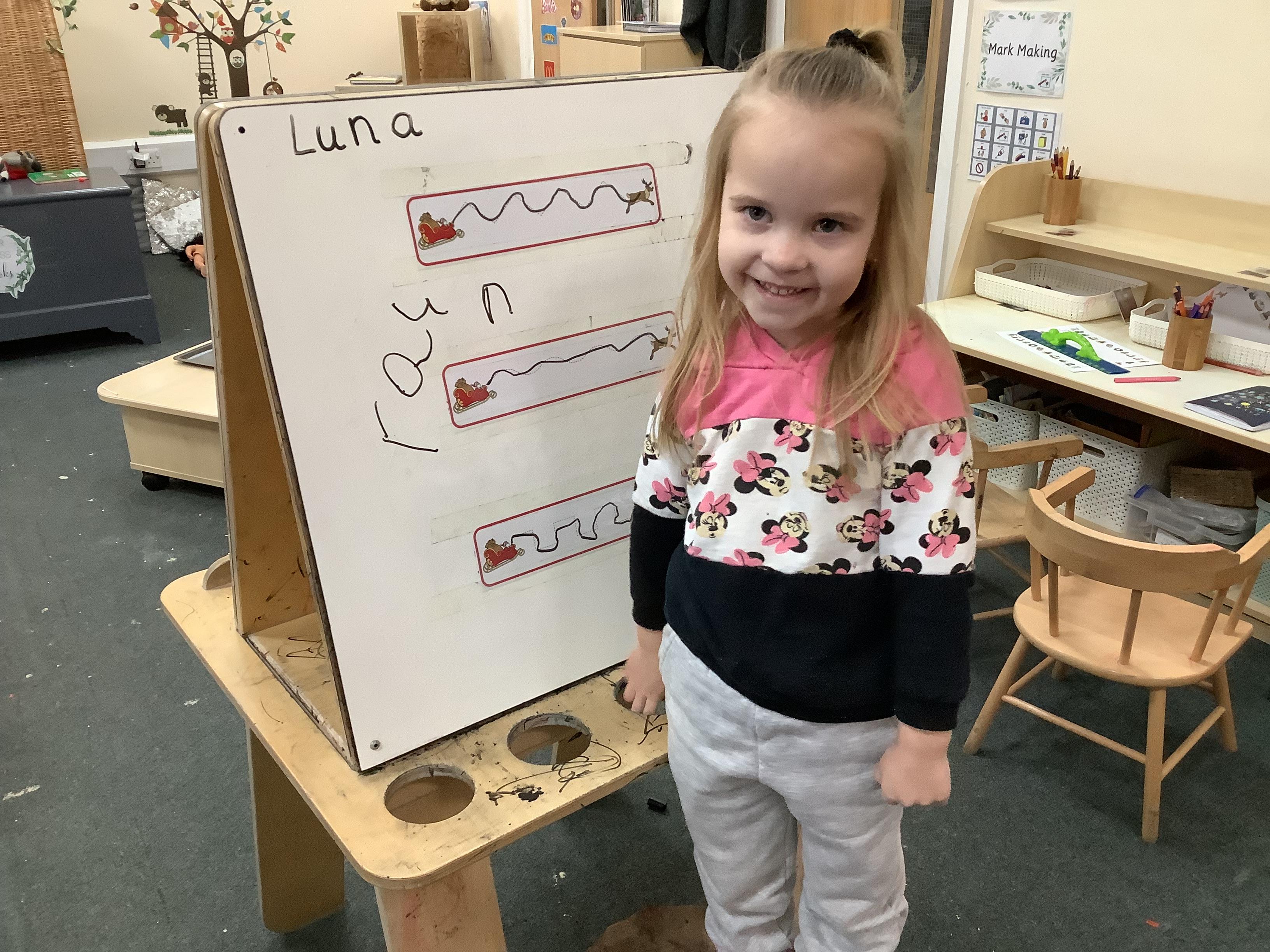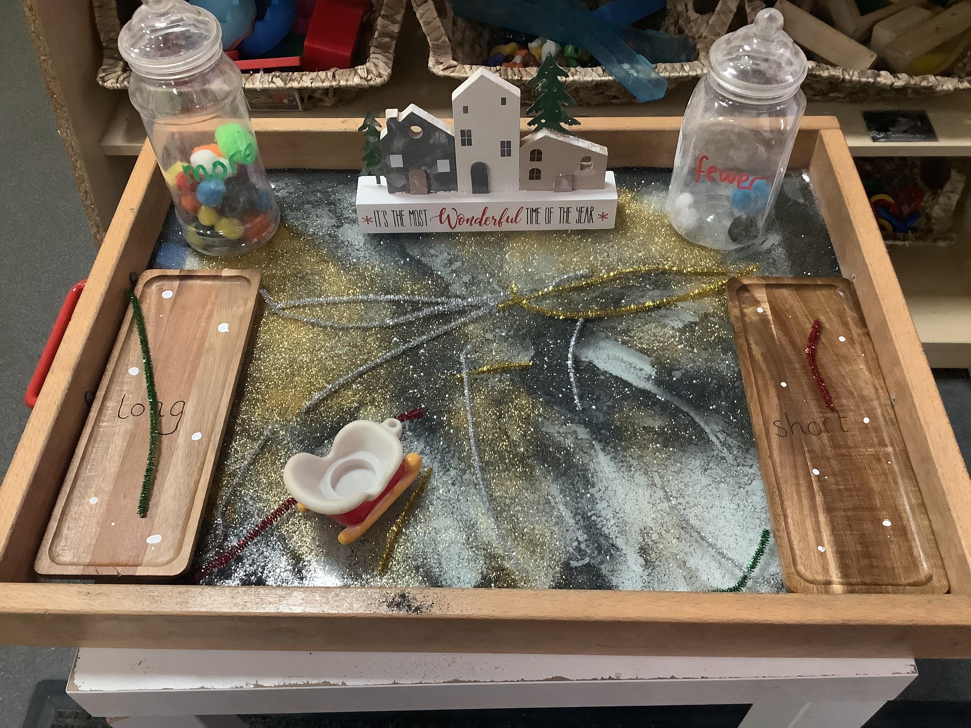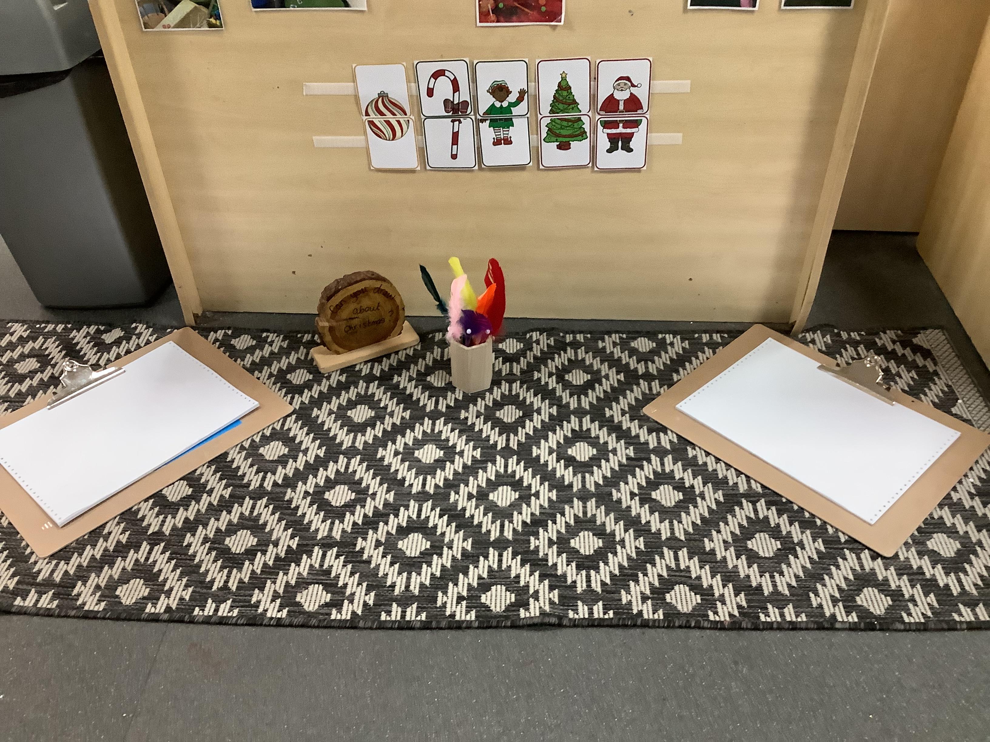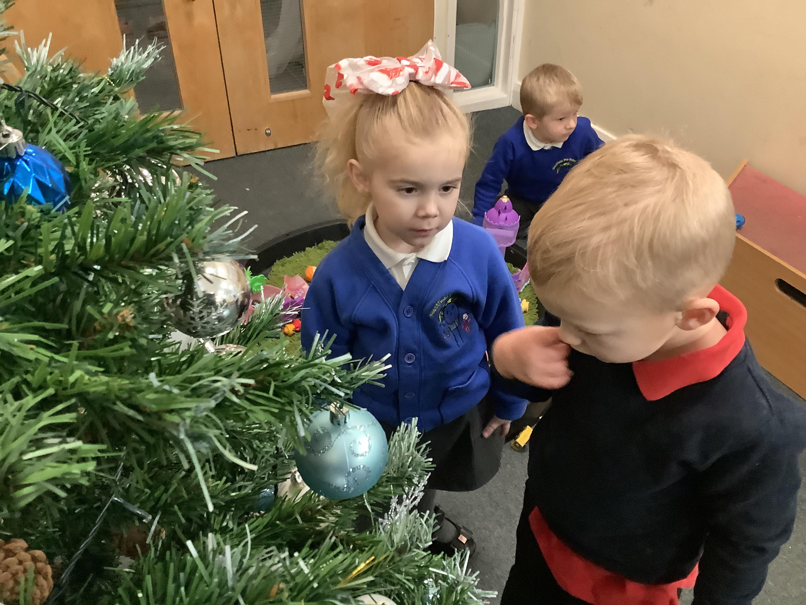 We worked as little elves in Santa's workshop. We chose a toy, used scissors to cut the wrapping paper and then sellotape to wrap it!