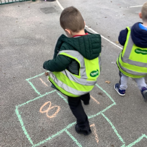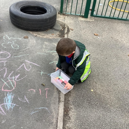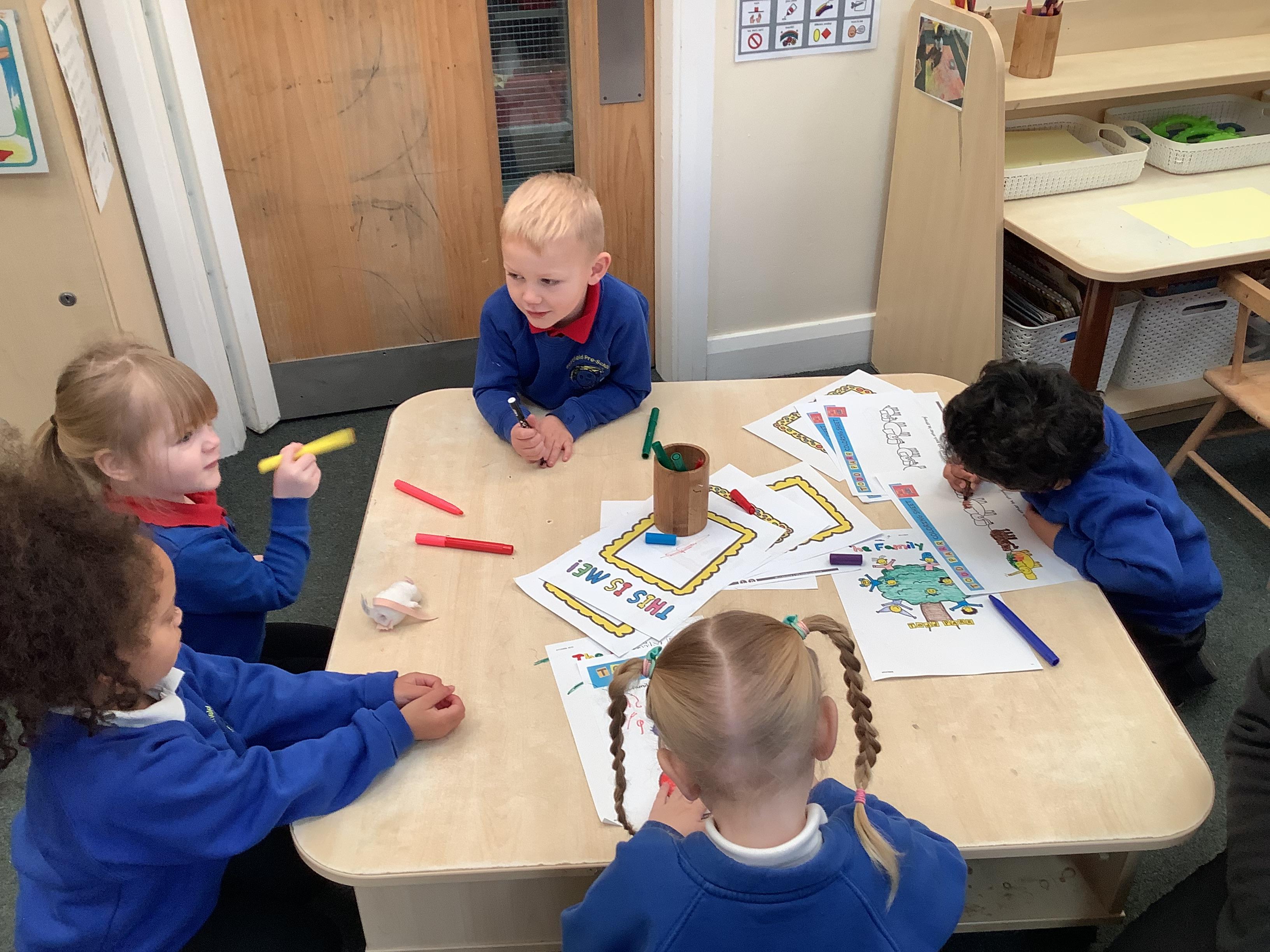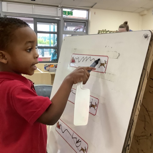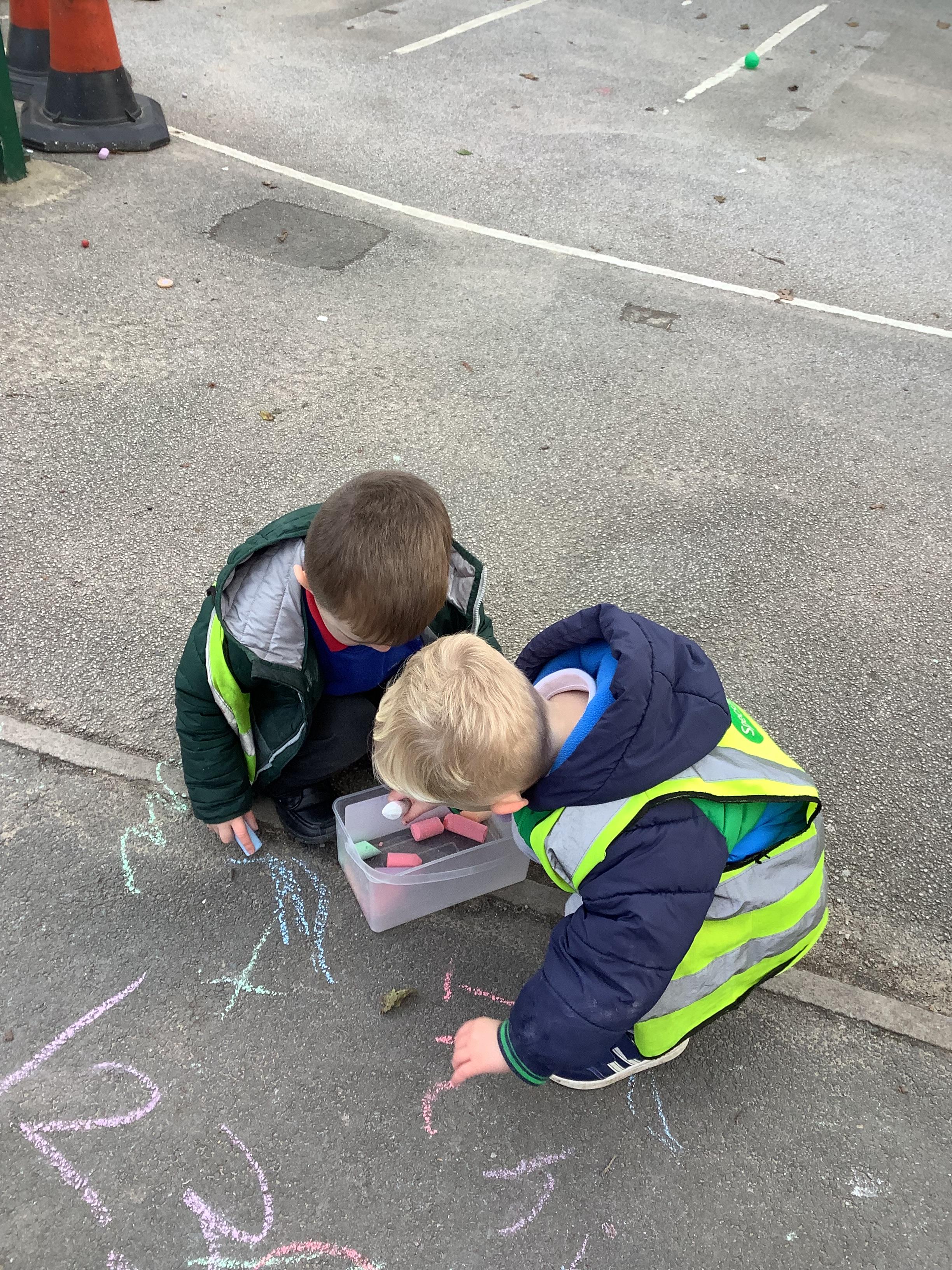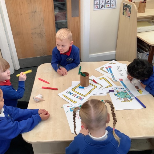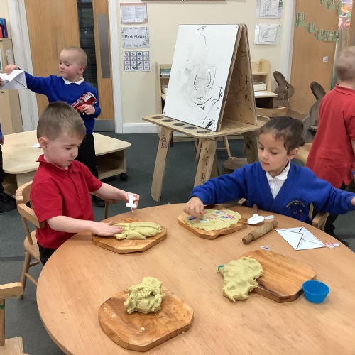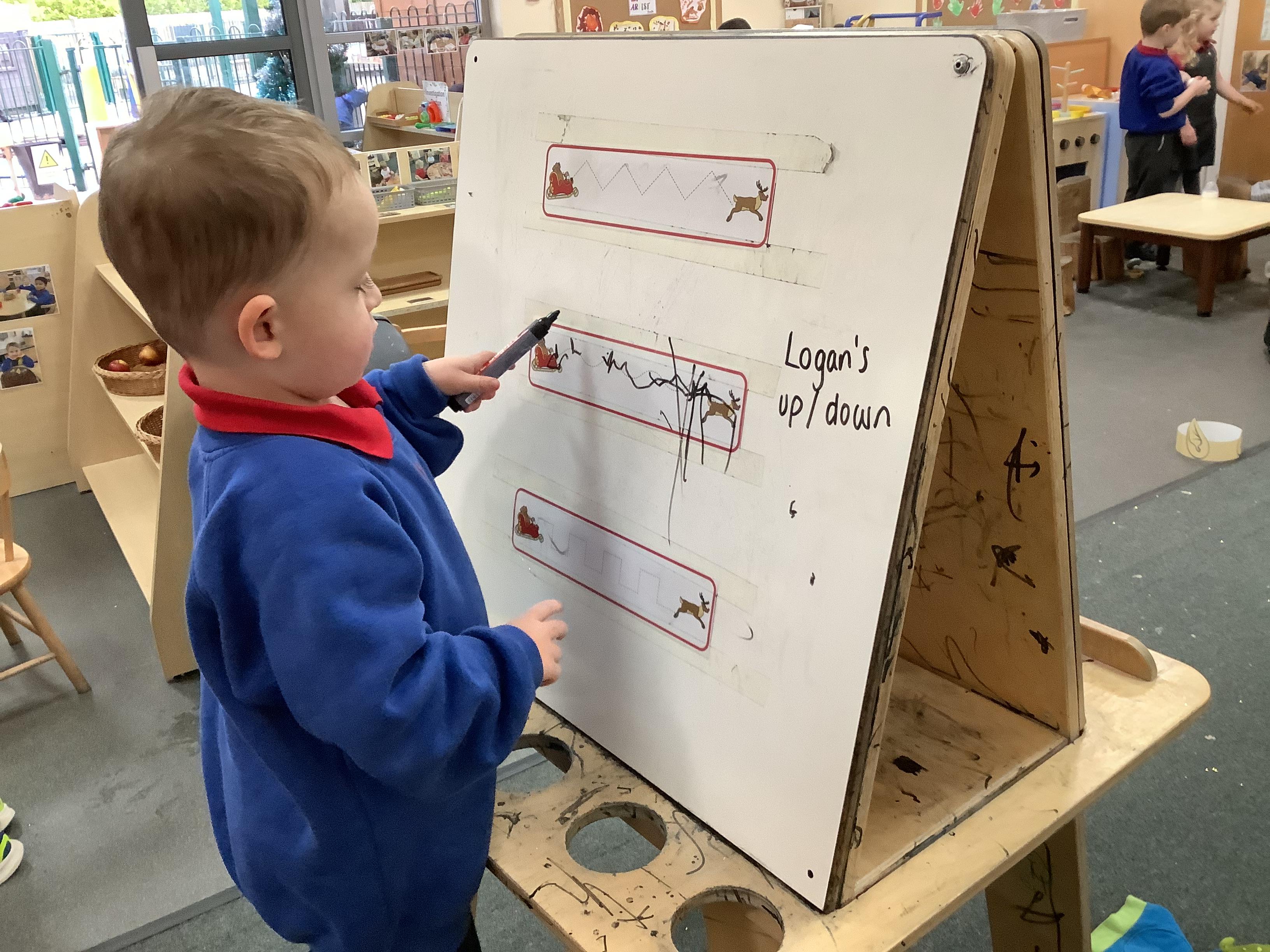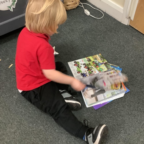 We worked as little elves in Santa's workshop. We chose a toy, used scissors to cut the wrapping paper and then sellotape to wrap it!