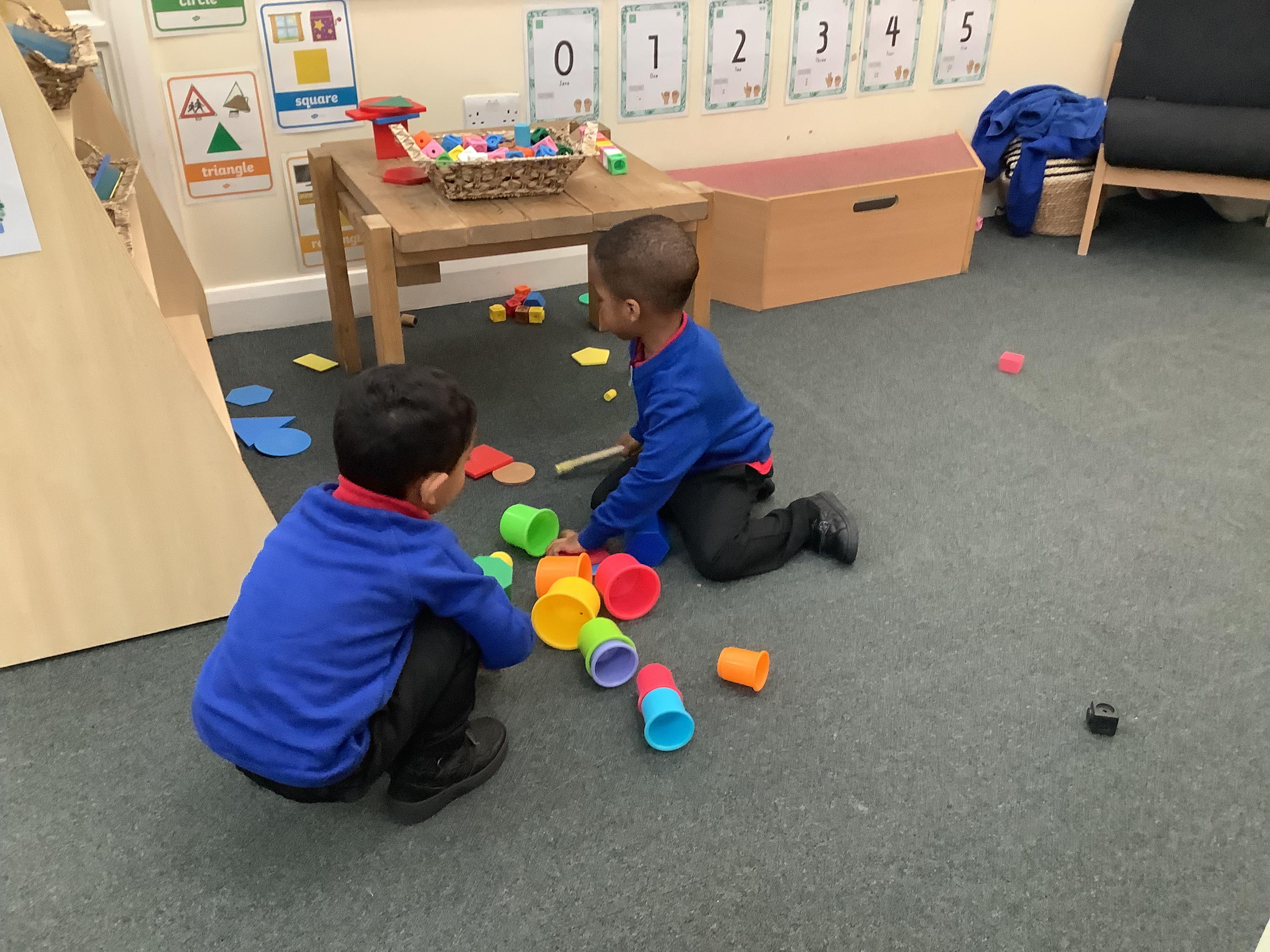 We have been accessing the continuous provision indoors and outdoors and getting used to the classroom routine now that lunchtime and carpet time has appeared on our daily timetable!