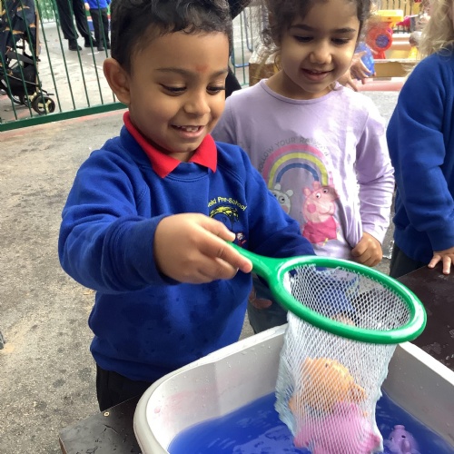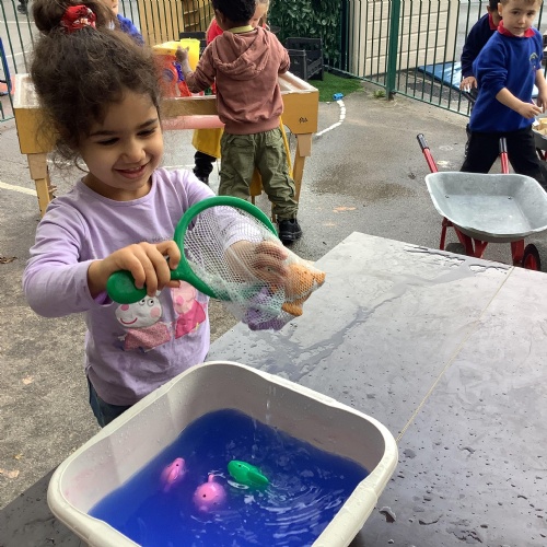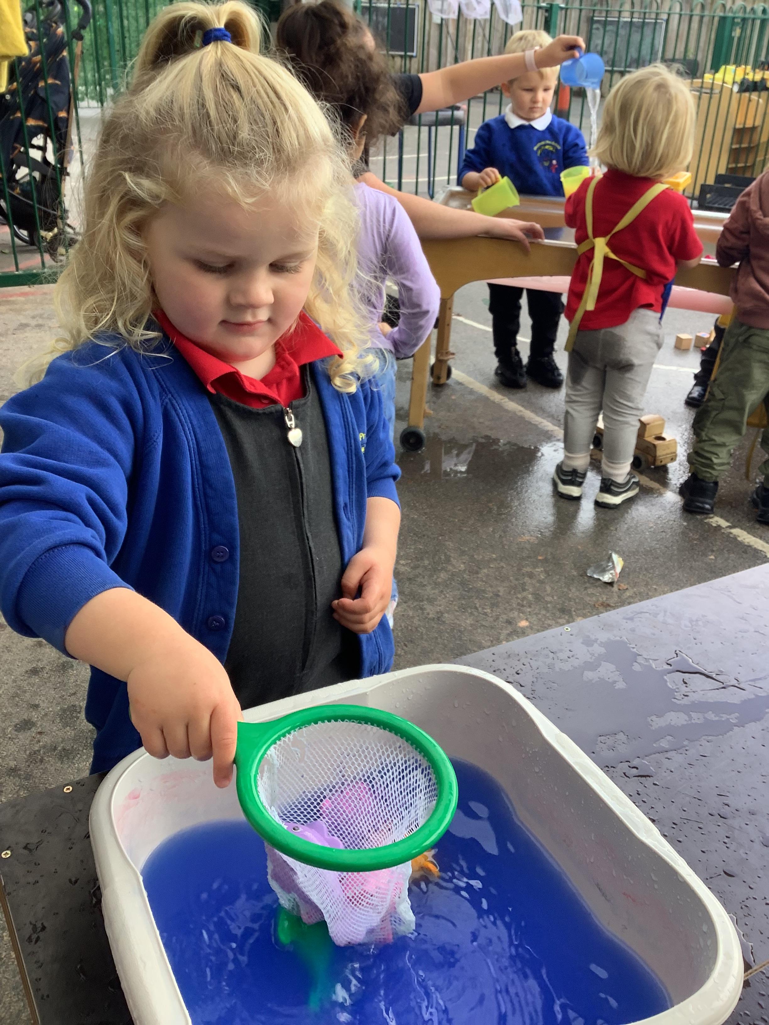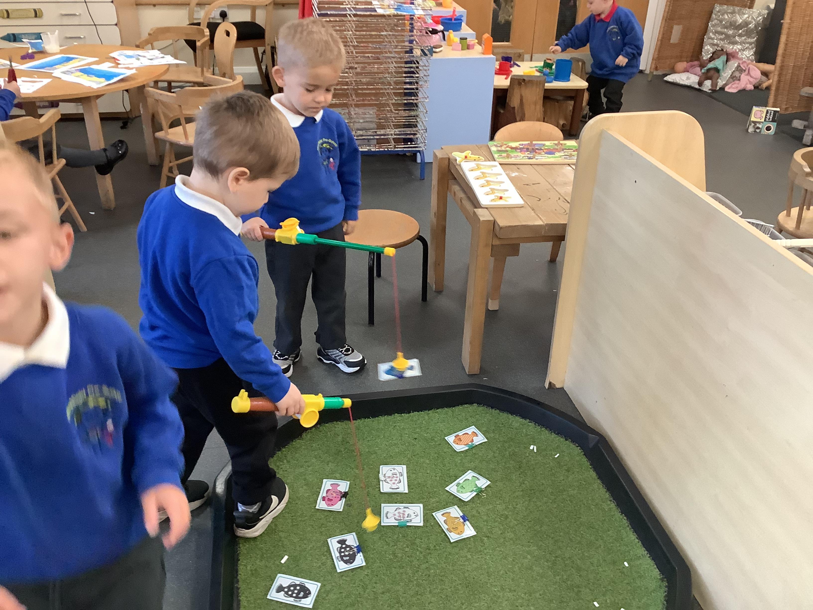 The adult led activity this week involved catching fish and counting how many we had caught. Some children blew Mrs Rothwell's socks off as they did not even need to count if they had three fish- they just knew it was three! We checked by counting and they were right!