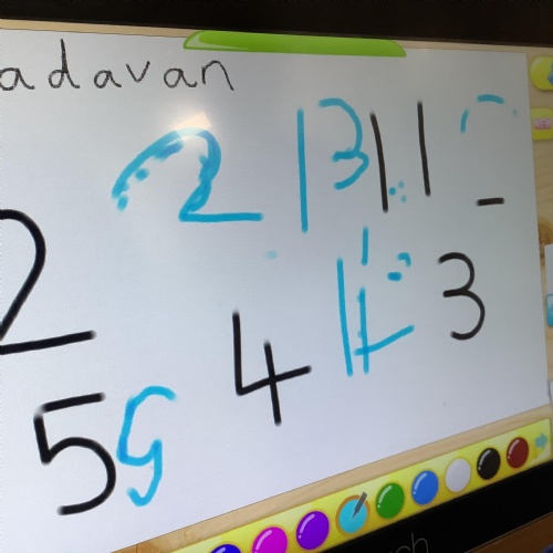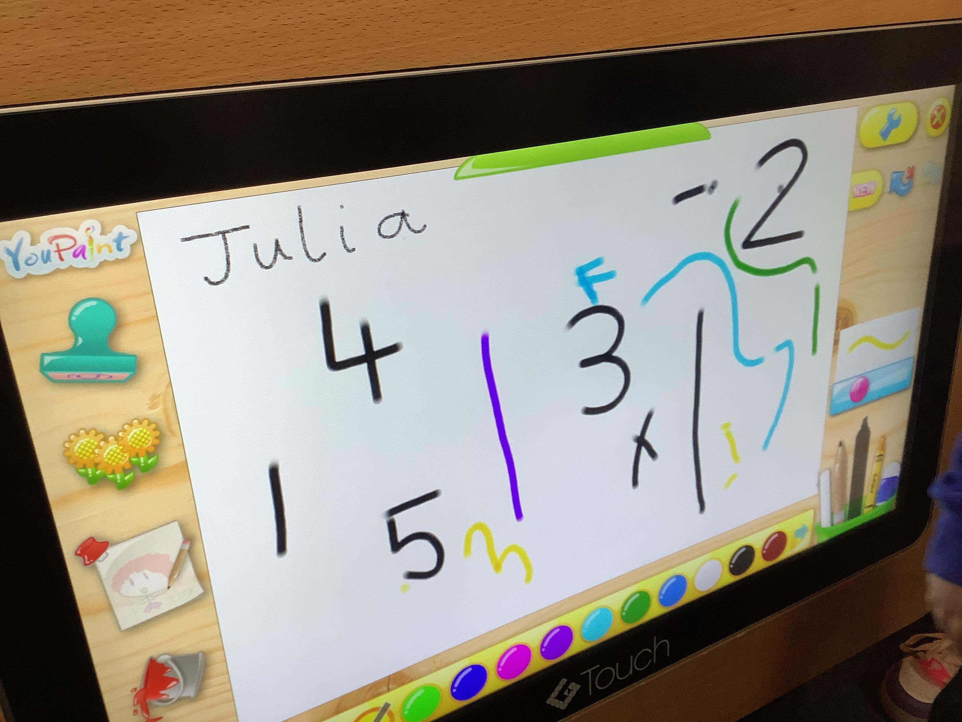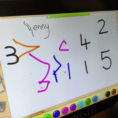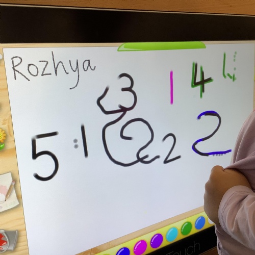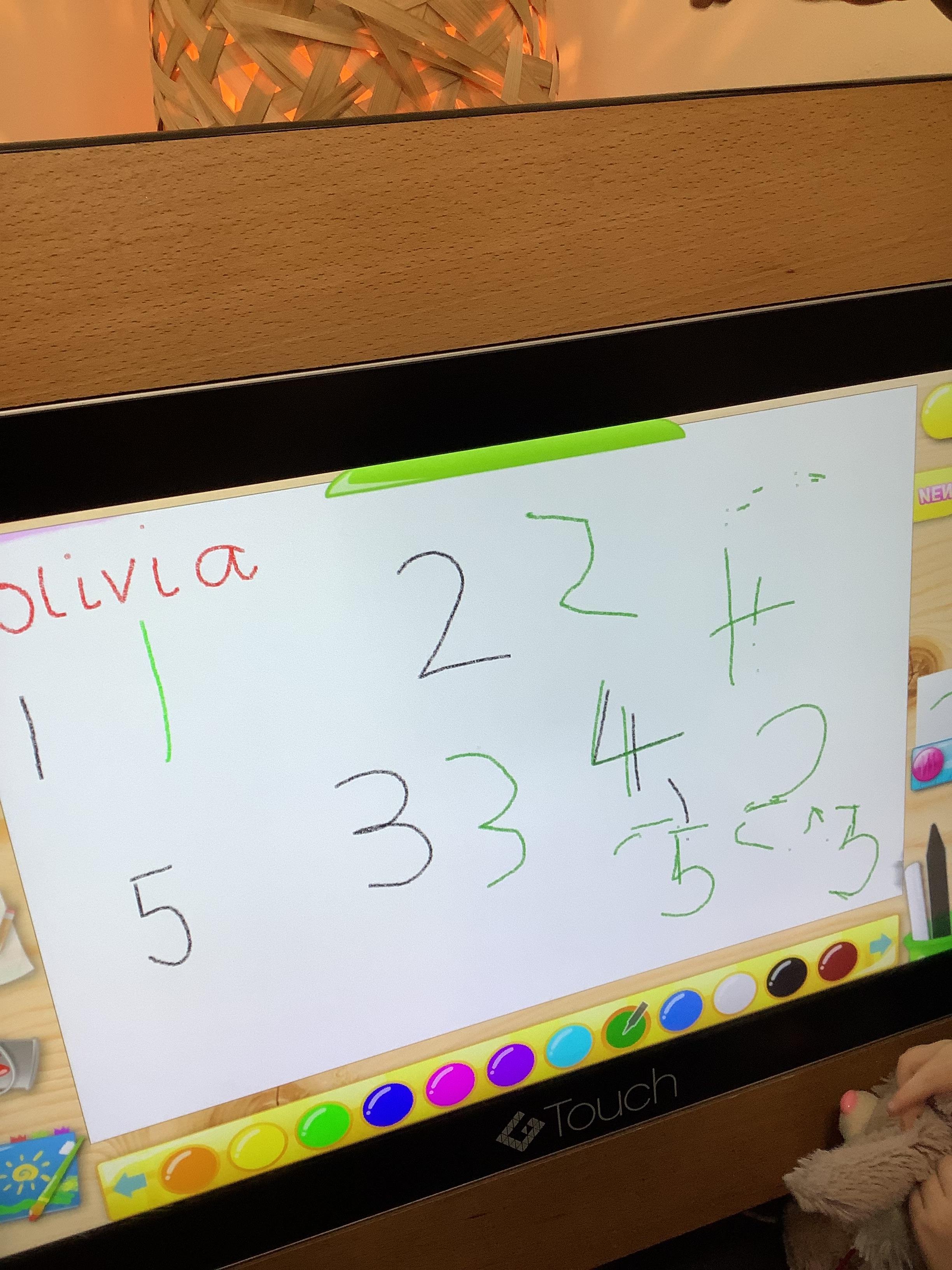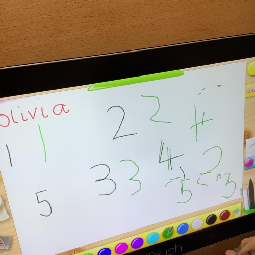 We also used the interactive whiteboard's paint feature to practise recognising and writing numbers 1-5