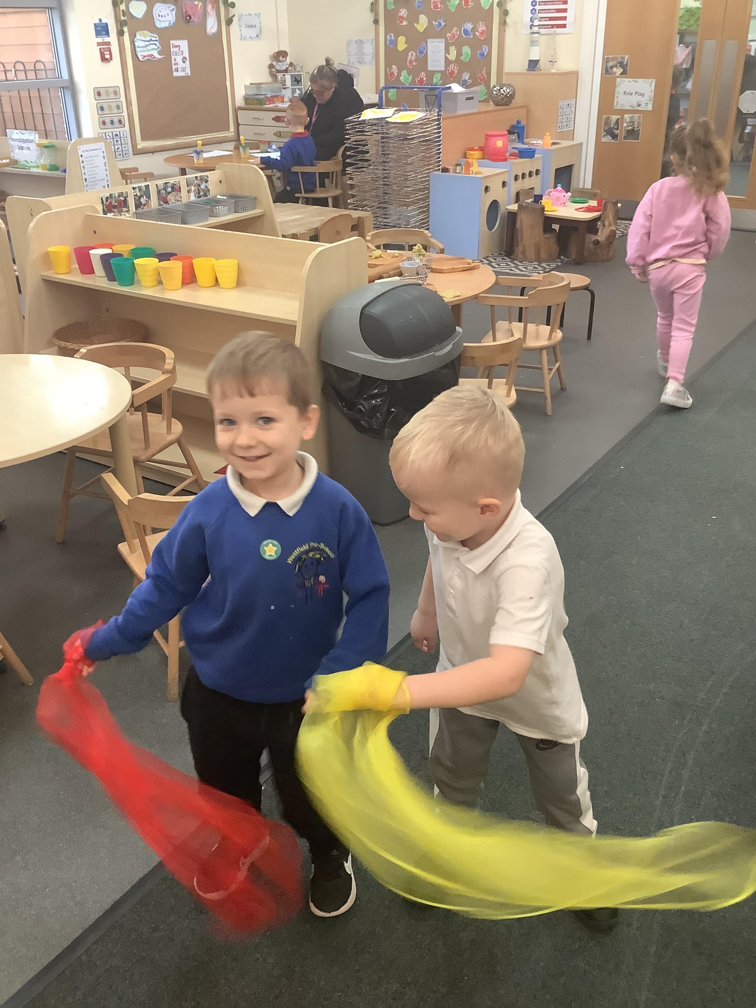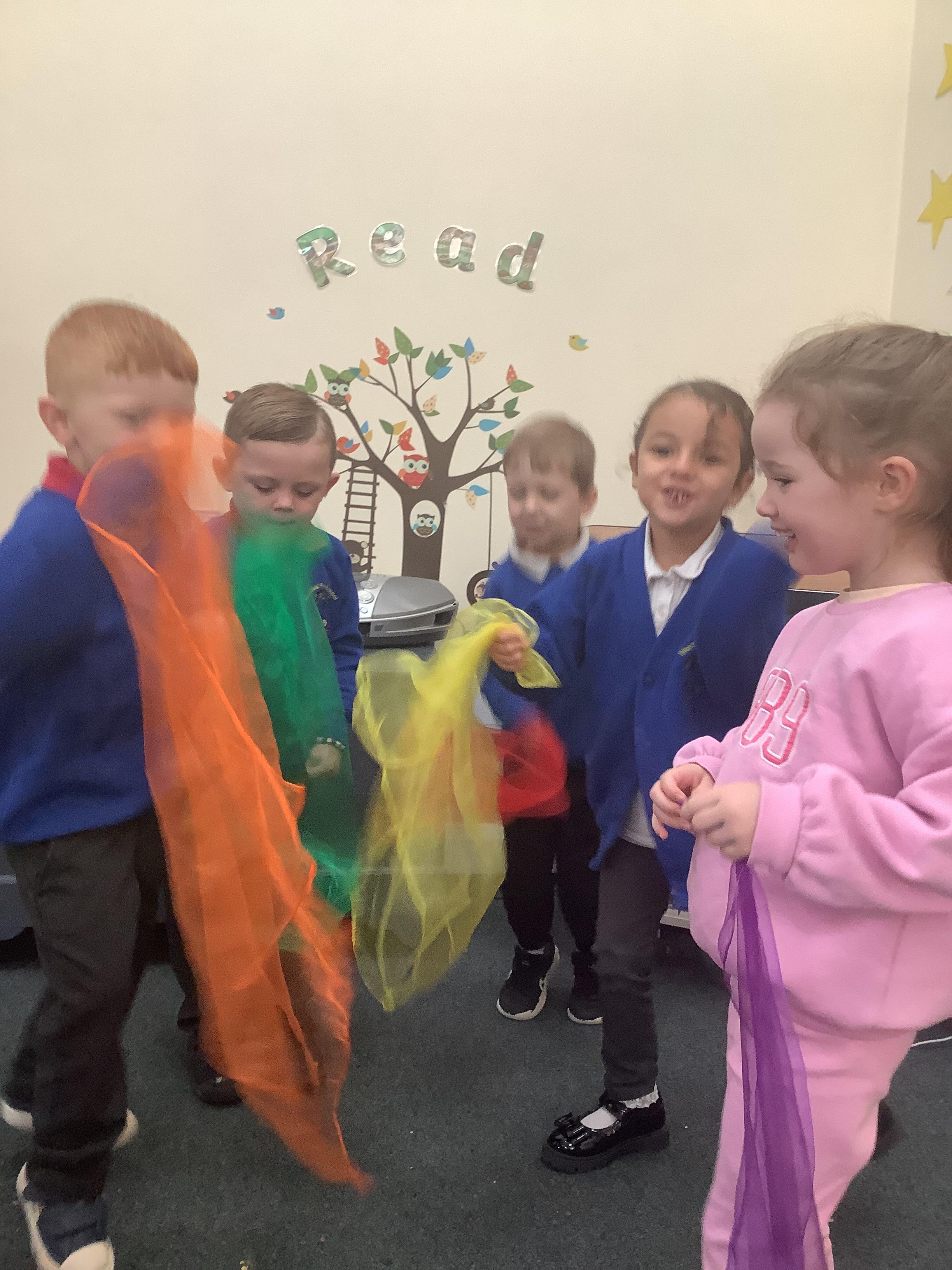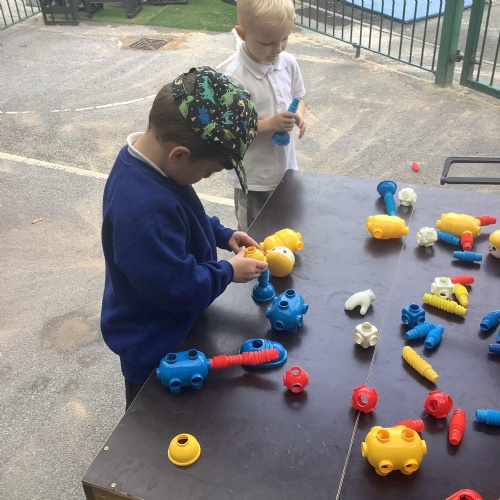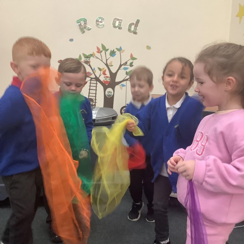 They had the opportunity to access an adult led activity to use scissors to cut out pictures of a star, diamond and the world to create their own stick puppets for the song.