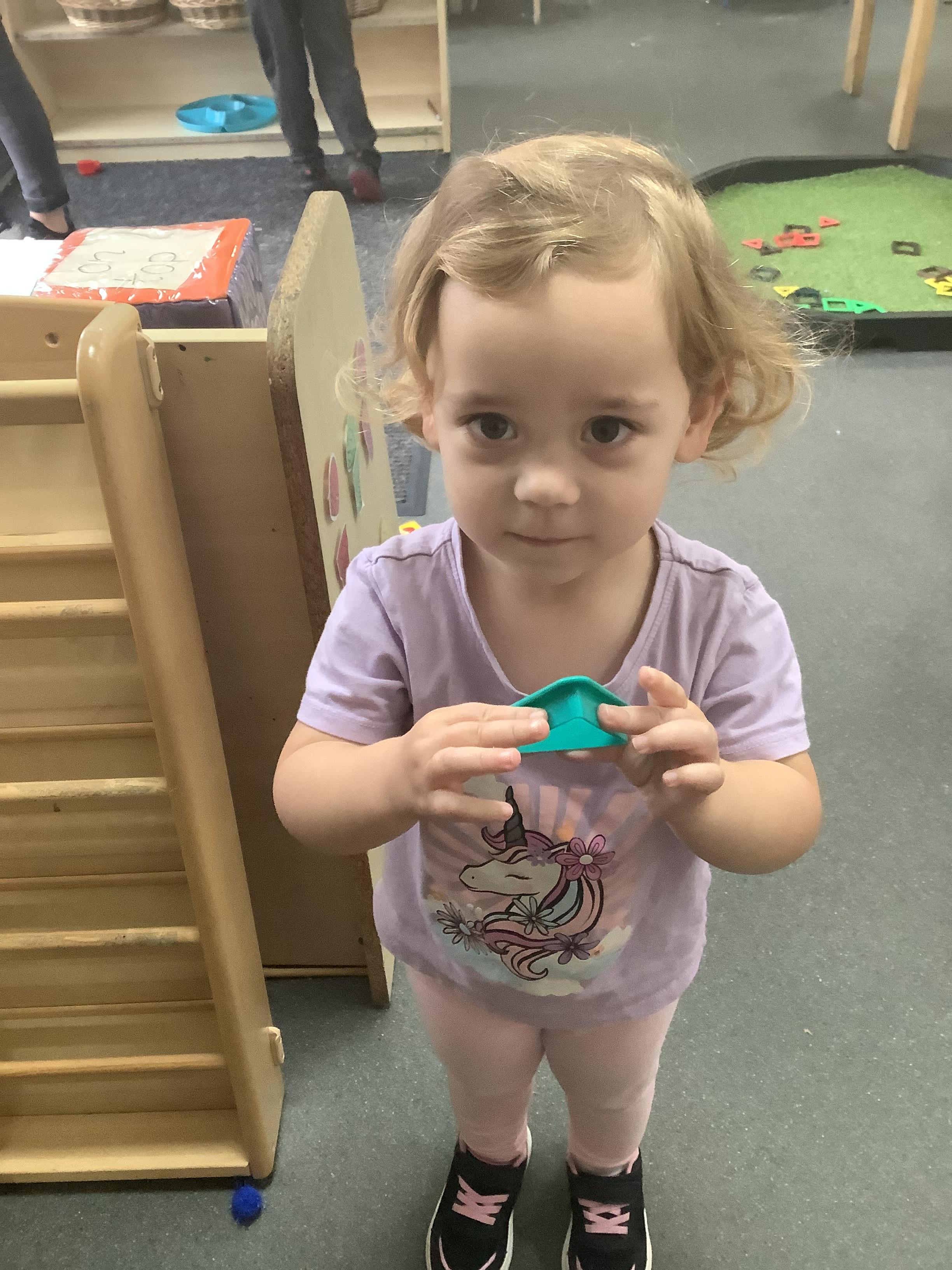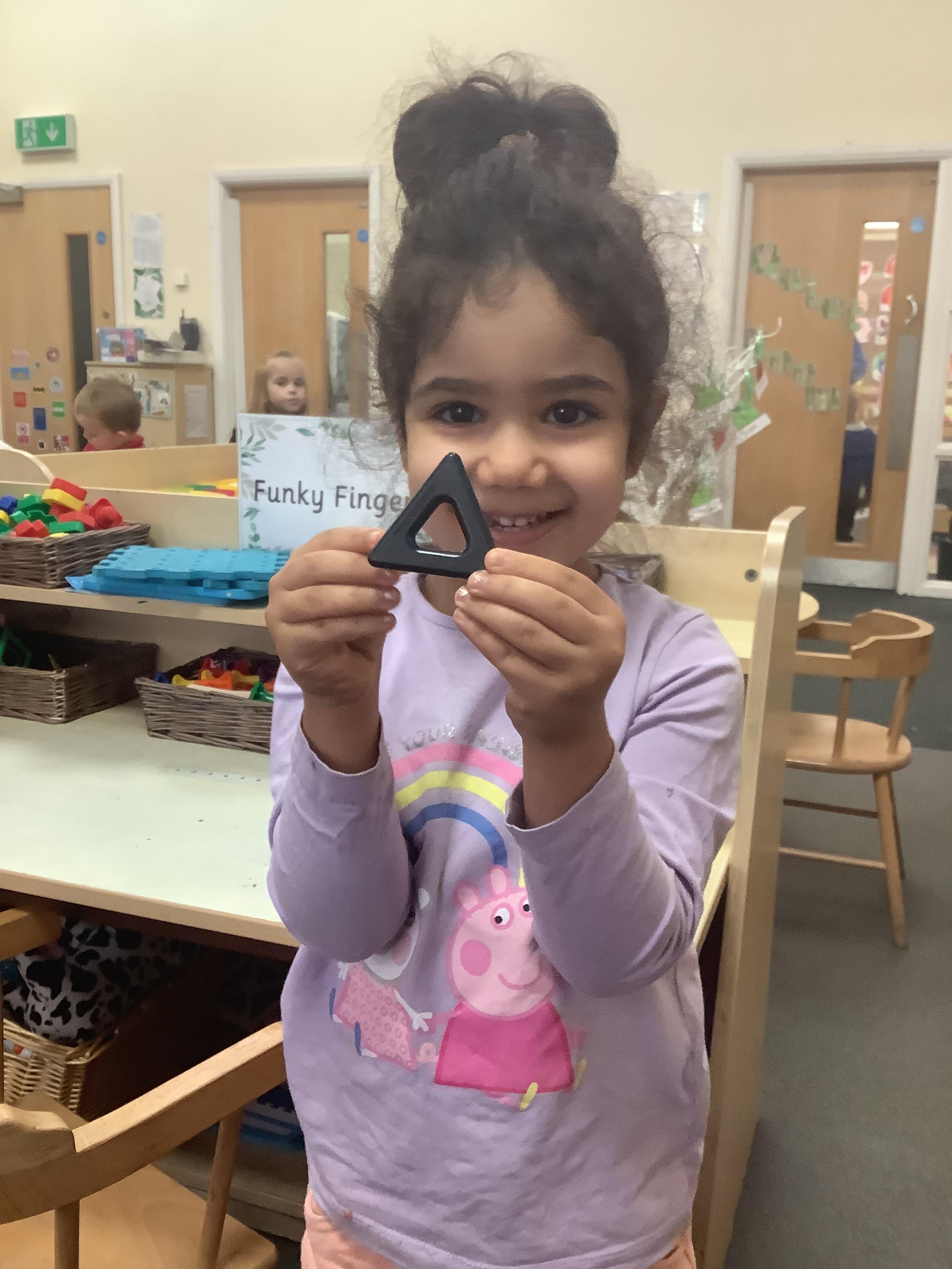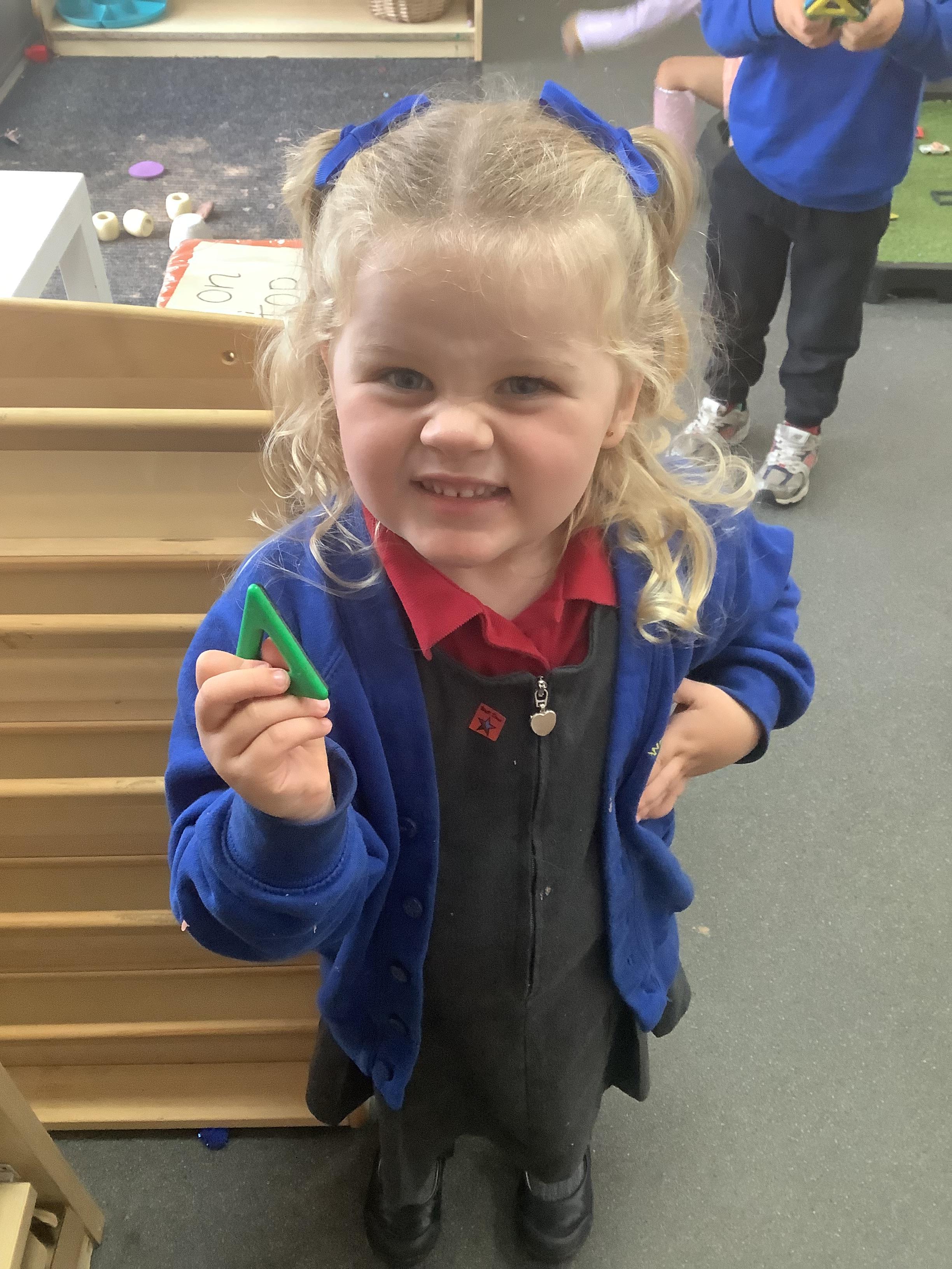 We also hunted around the classroom for triangles after learning about this shape at carpet time.