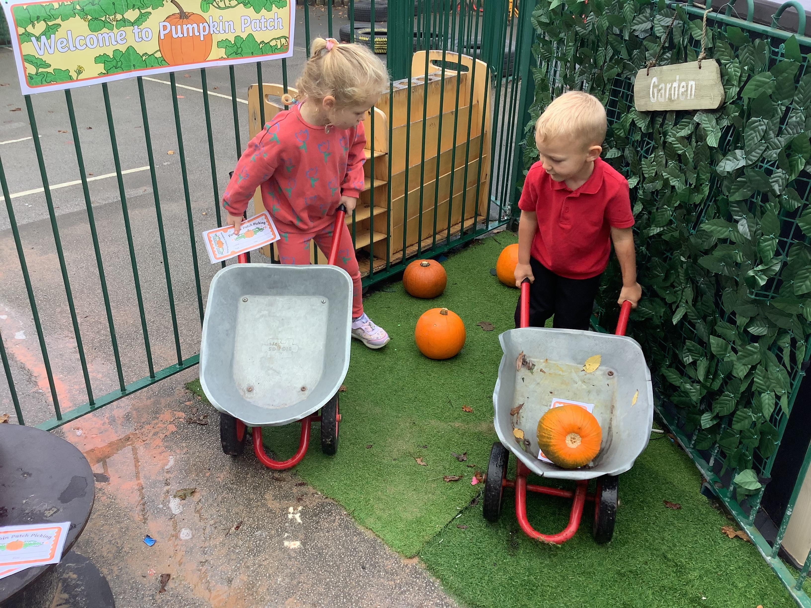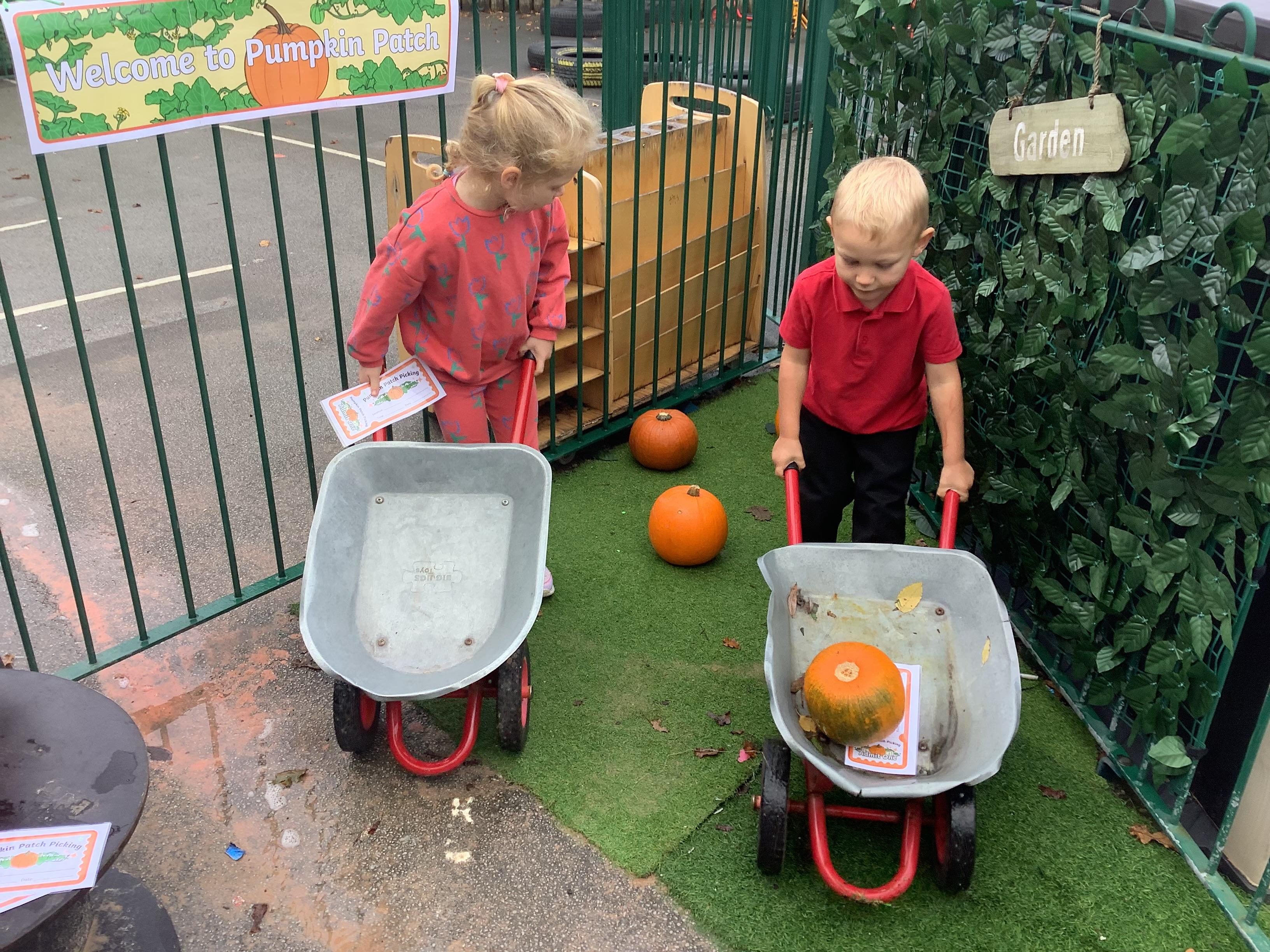 There was lots of opportunity for maths skills, communication and language development and of course the physicality of picking your own pumpkin!