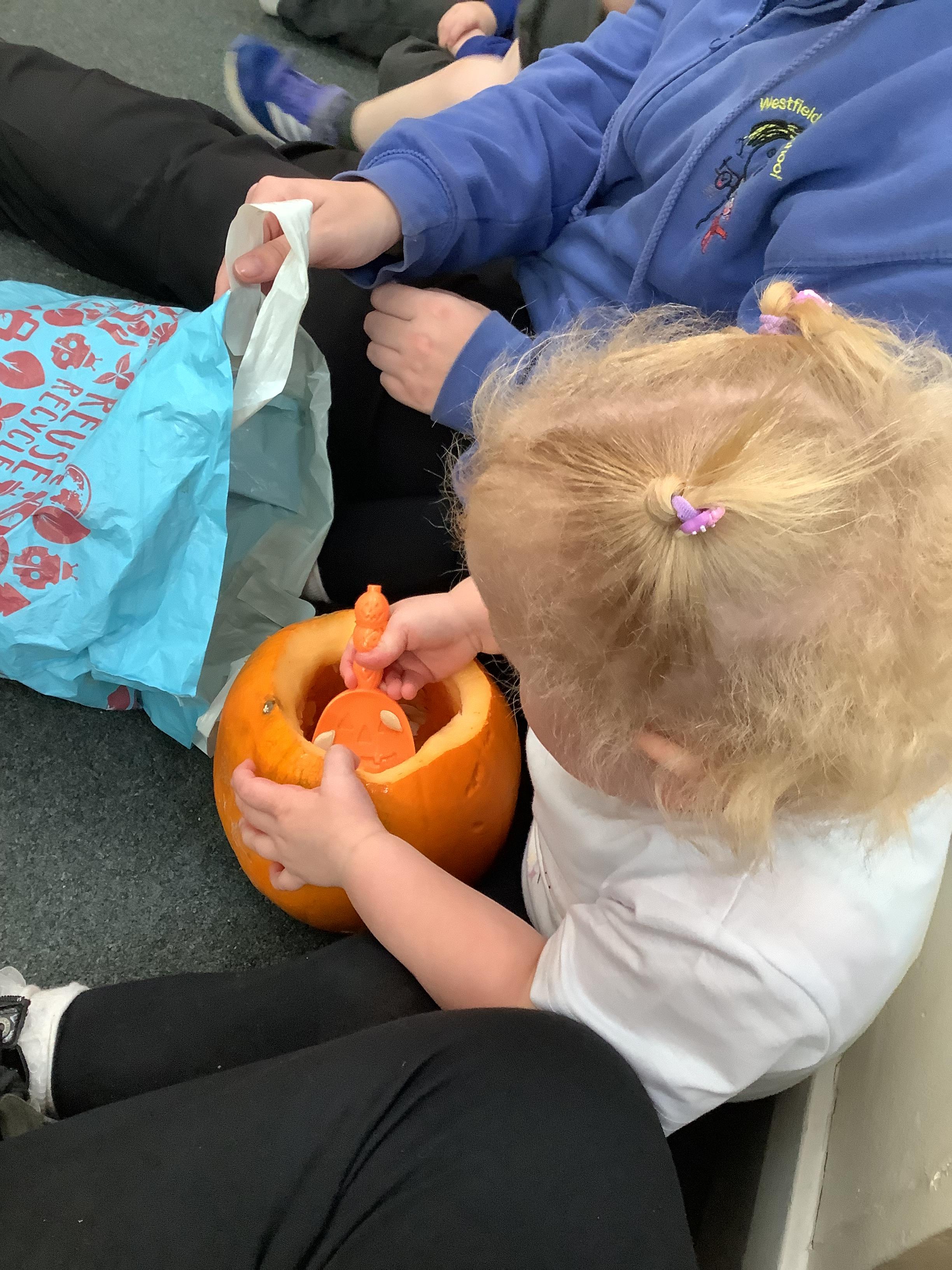 The children had lots of opportunities in the continuous provision to learn about pumpkins and Autumn.