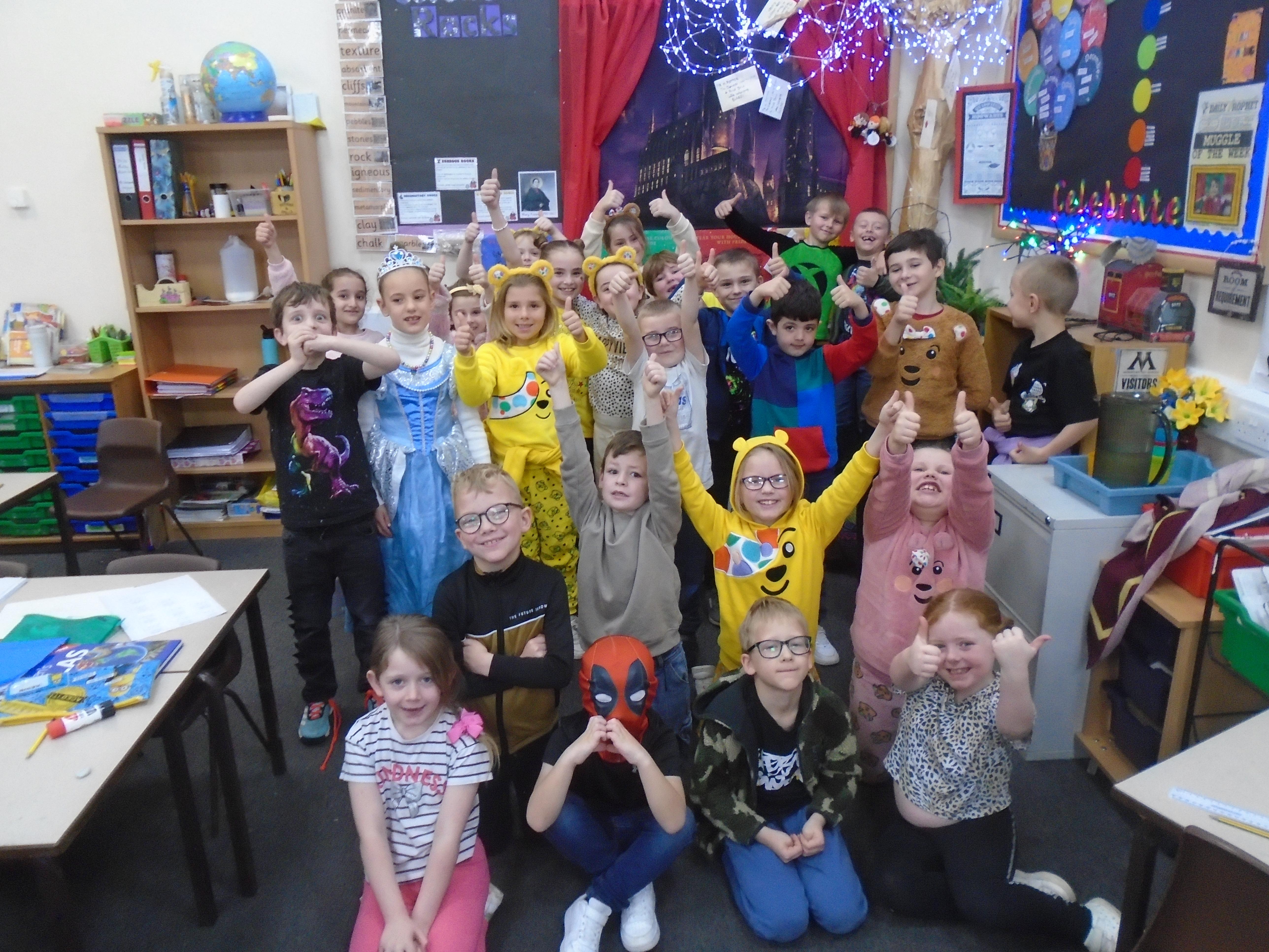 On Friday, we got to wear our own clothes for Children in Need.
