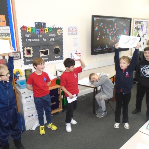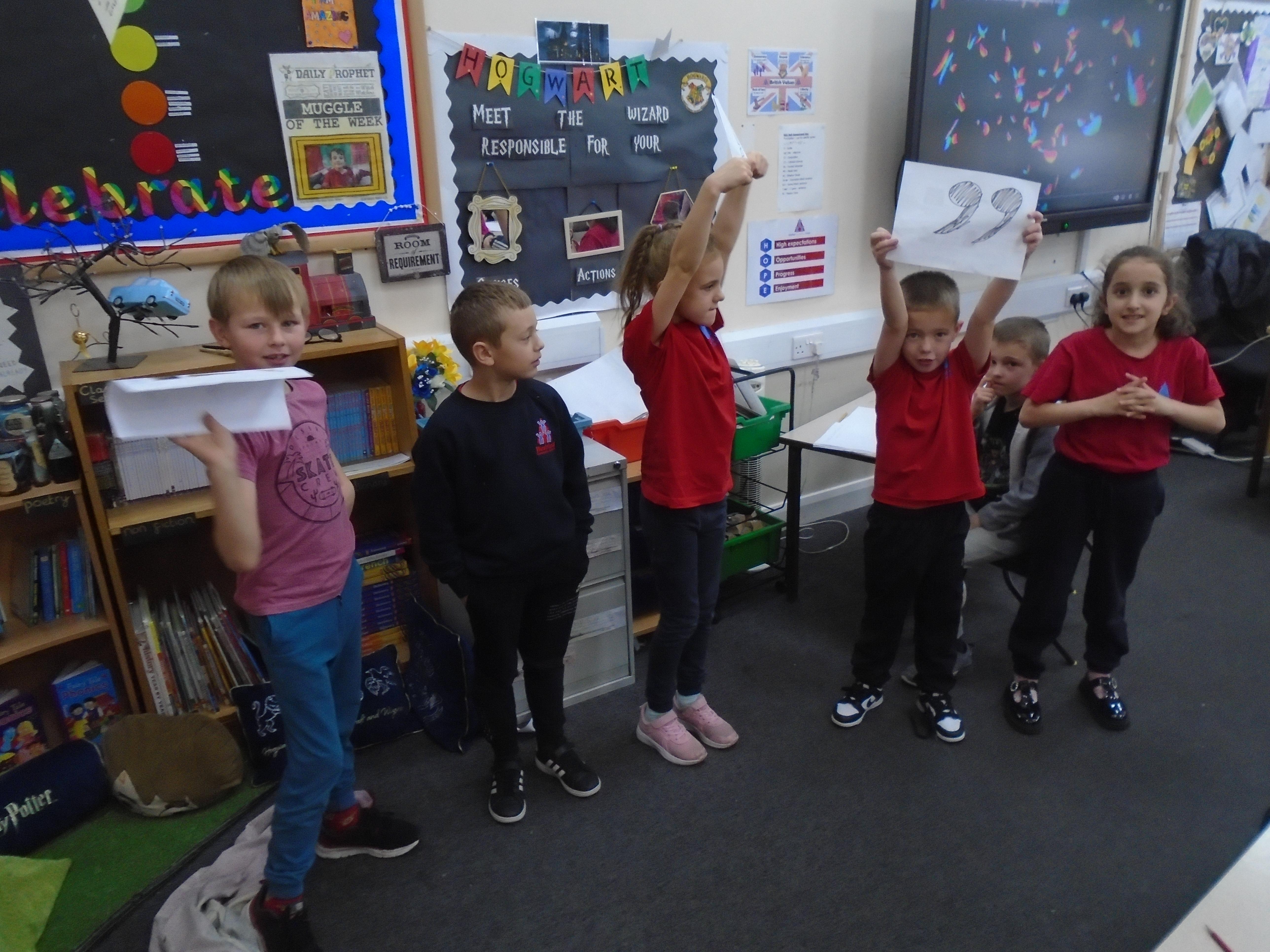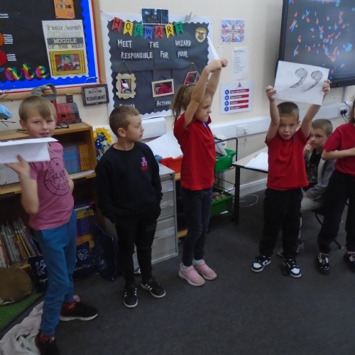 In English, we have been learning how to use speech in our writing. We did this by becoming human sentences at the front of the class.