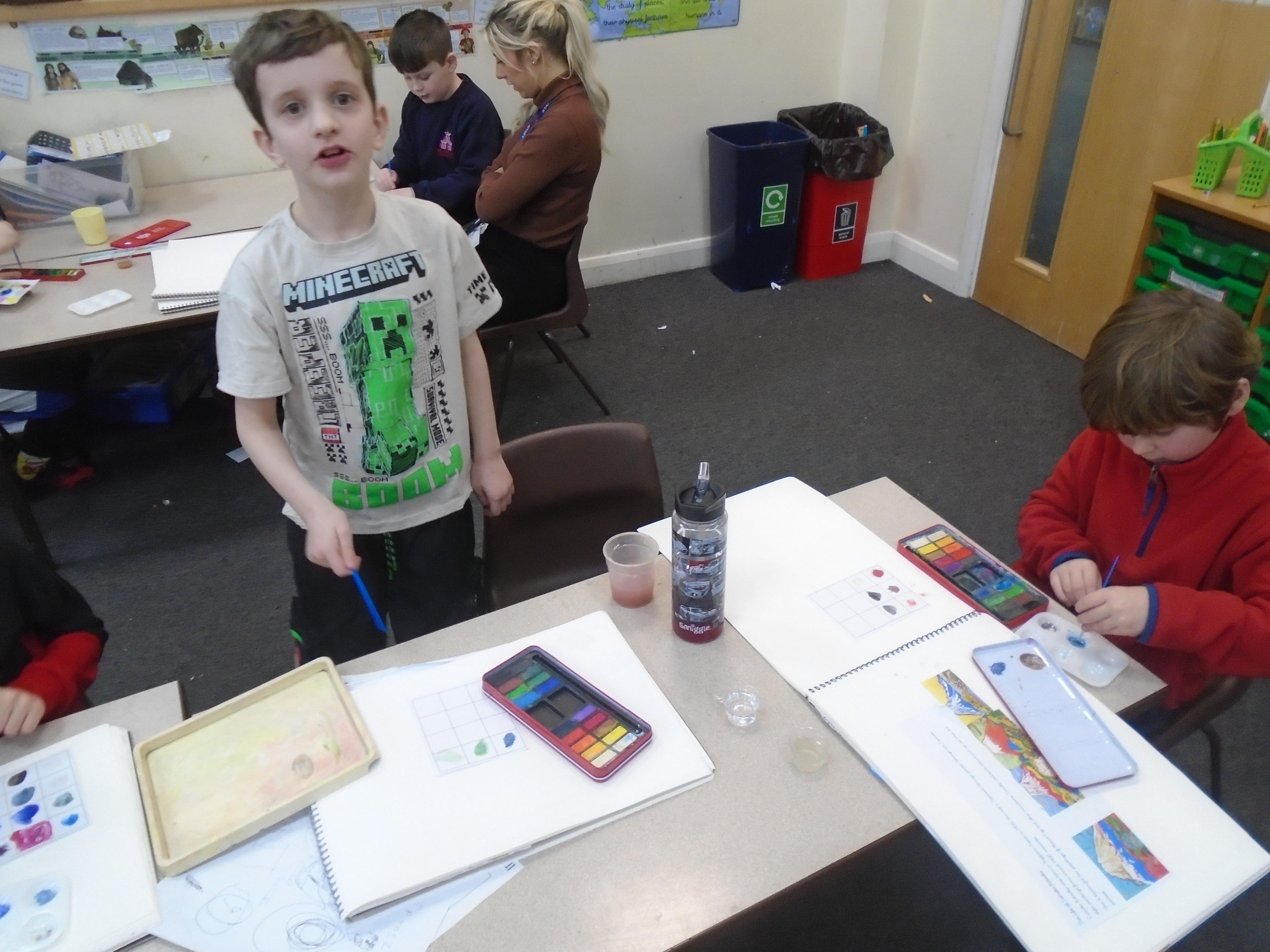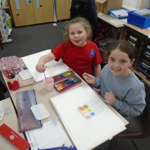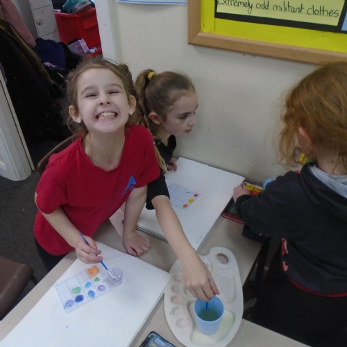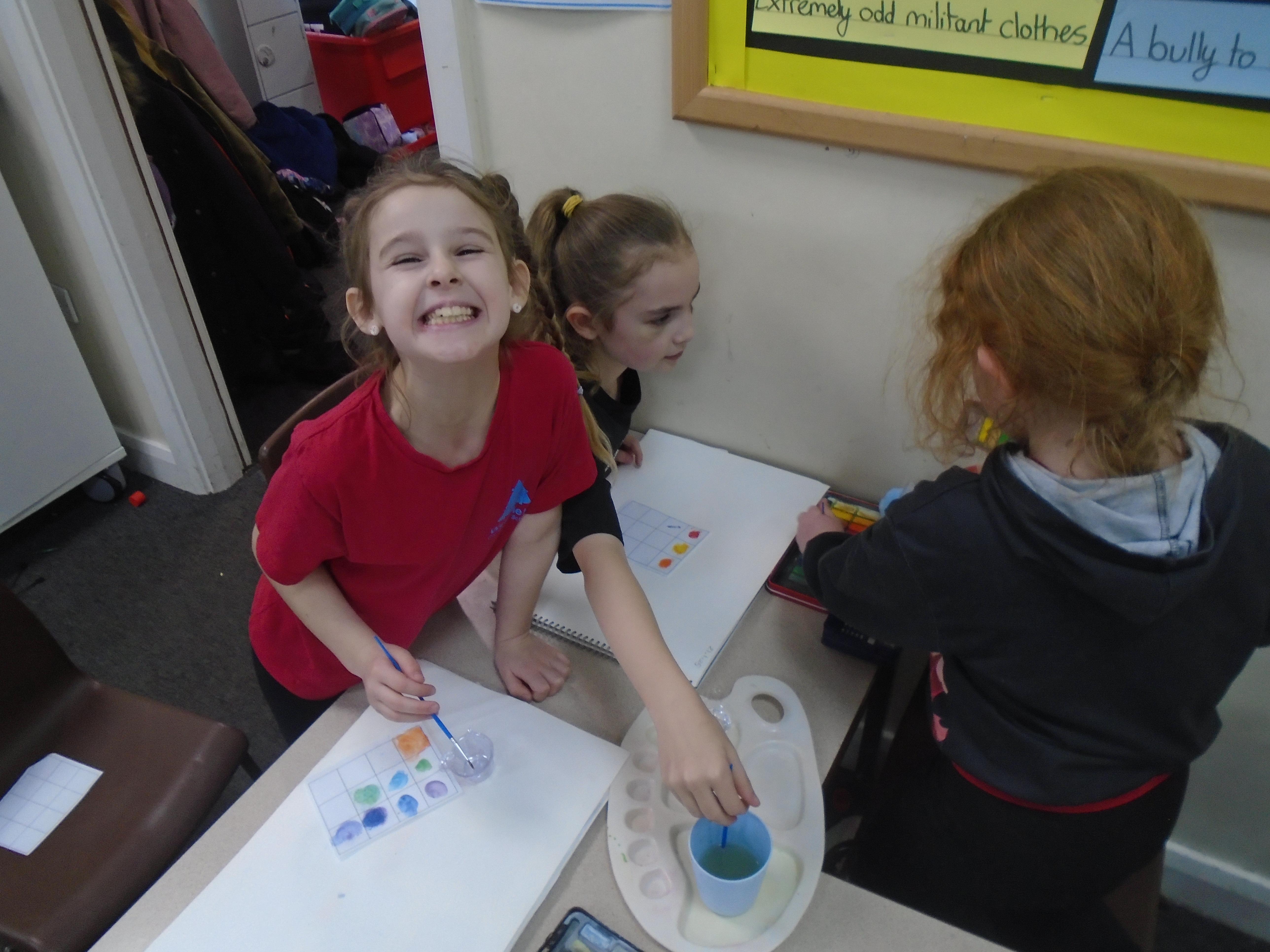 In Art, we have been mixing paint colours at looking at the spectrum to see what is hot and what is cold.
