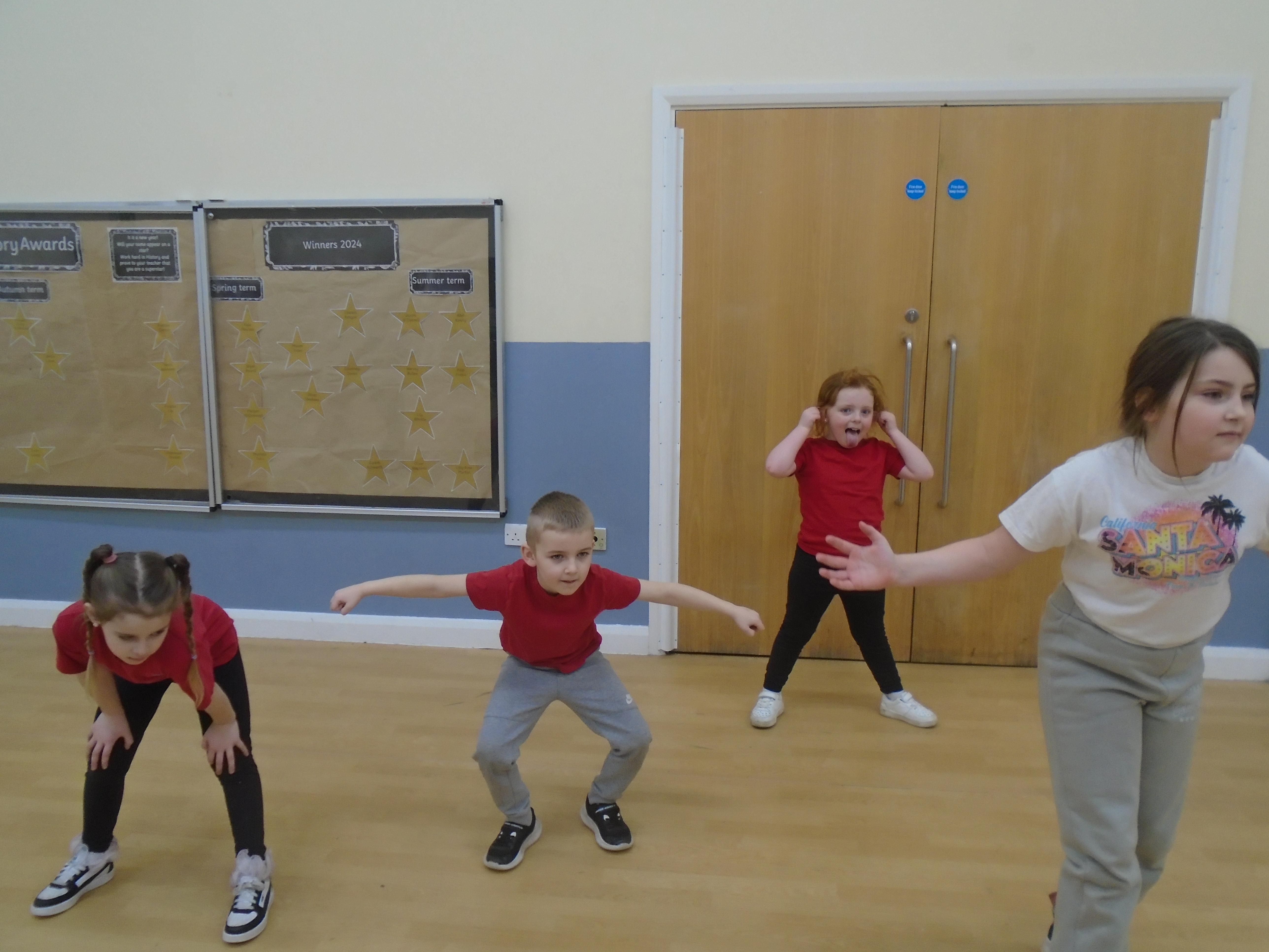 In PE this week, we have continued to look at gestures within movement. We used a song, and an animal as stimulus. The children created bouncy, fluid movement, changing in speed and shape. They performed it in front of the class.