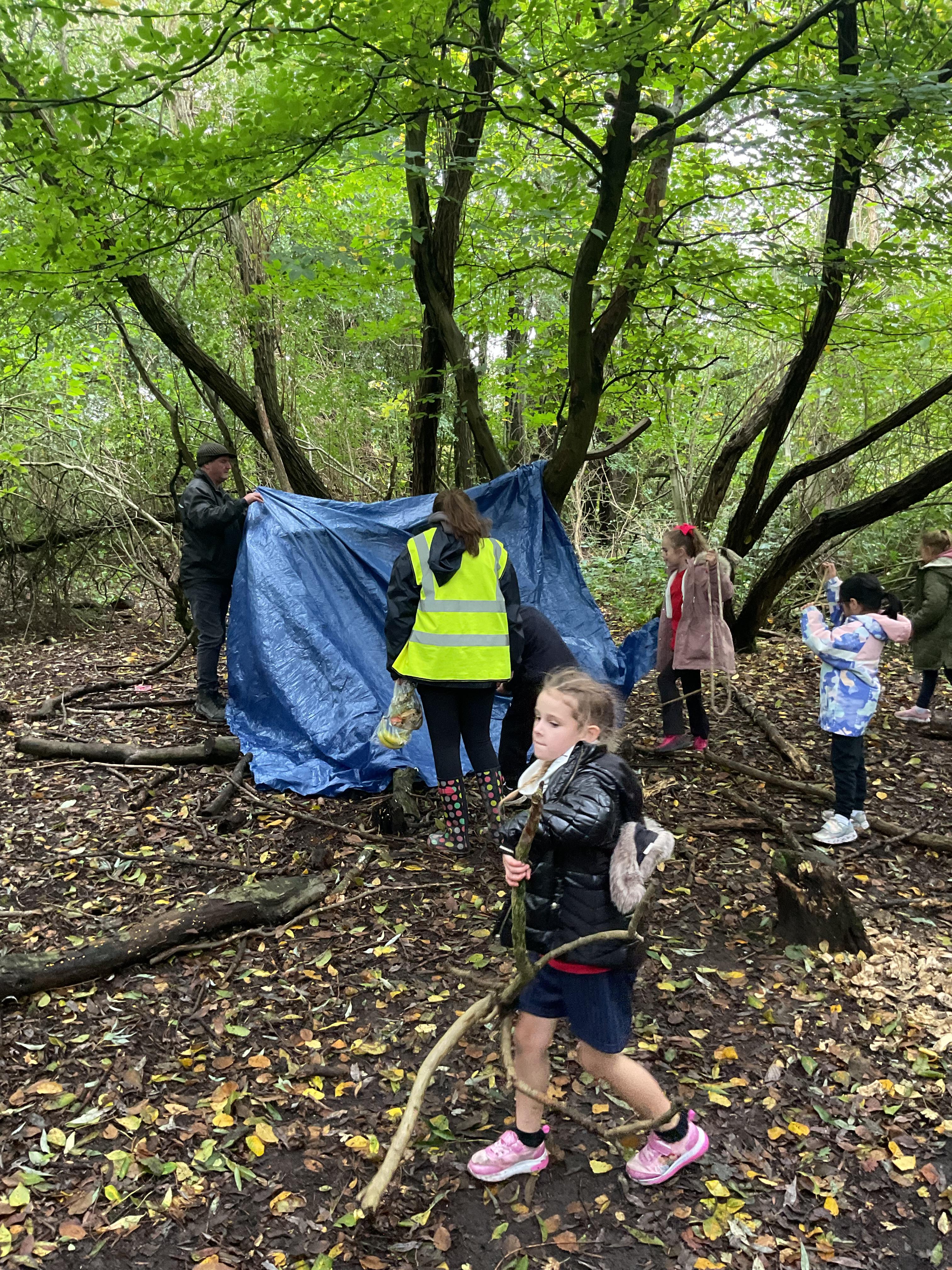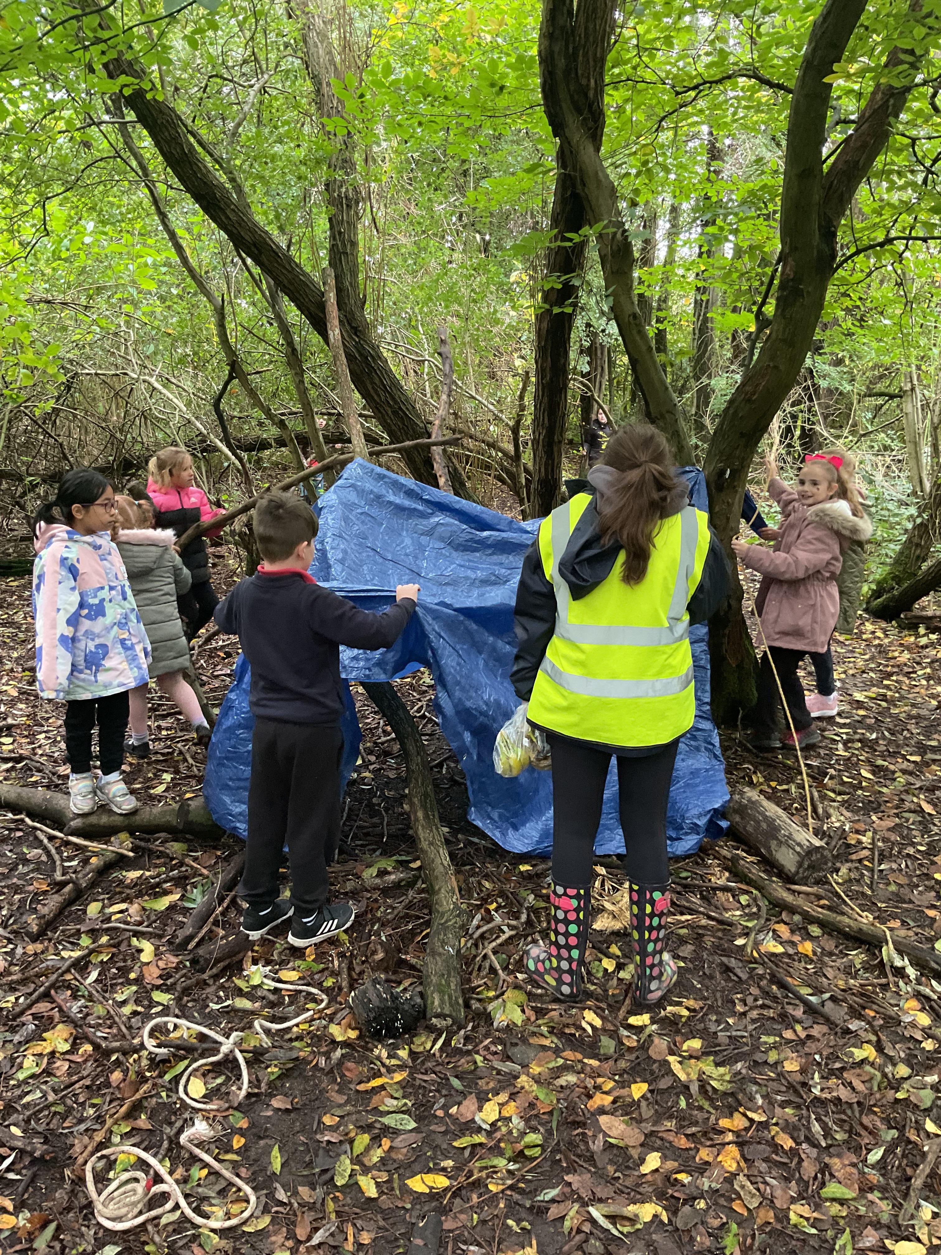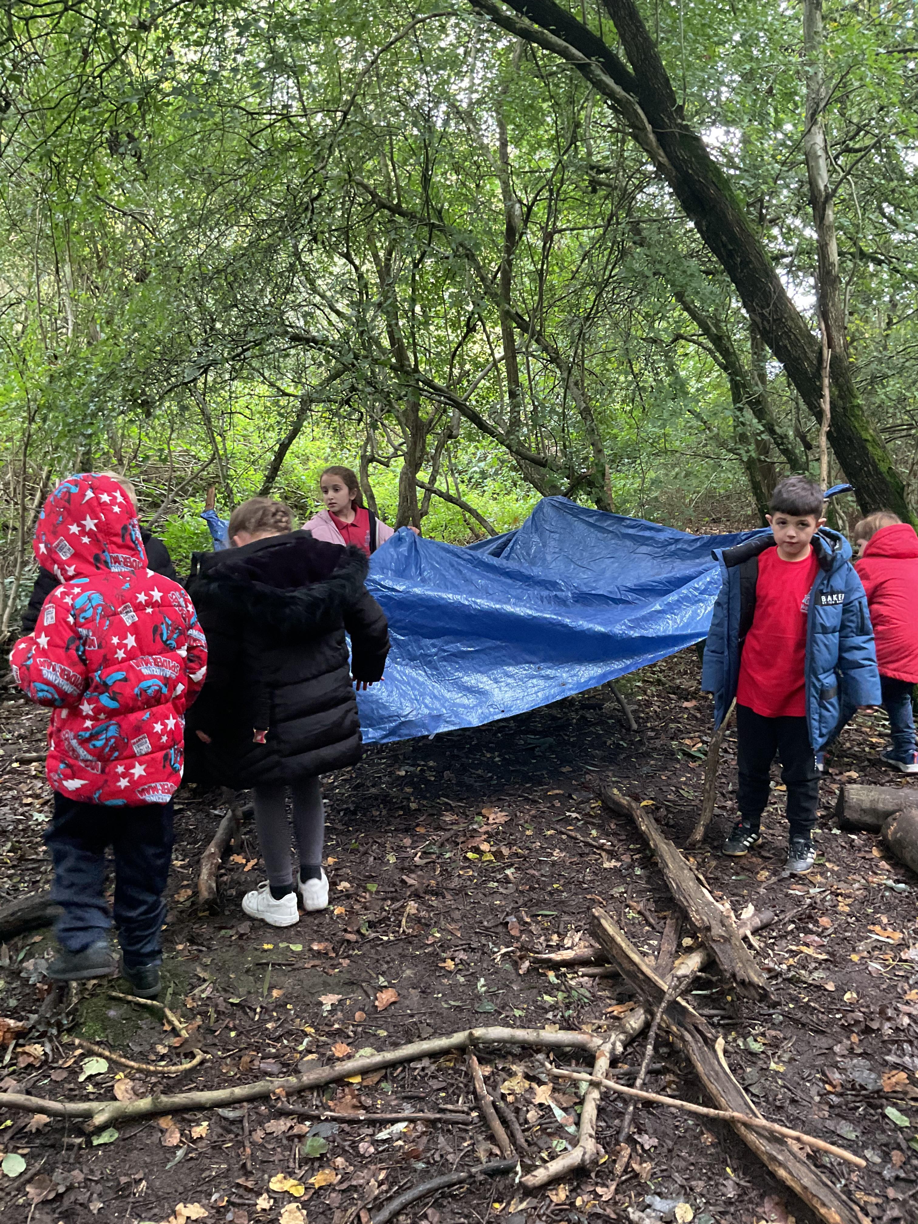 We went over to the ALPS and created shelters to make a settlement as part of our Geography topic. It was great, and carefully planned. There was shelter, seats, and enough room for 10 children n each.