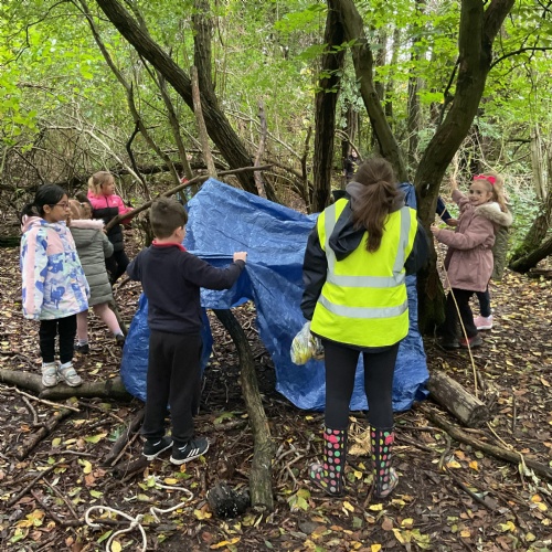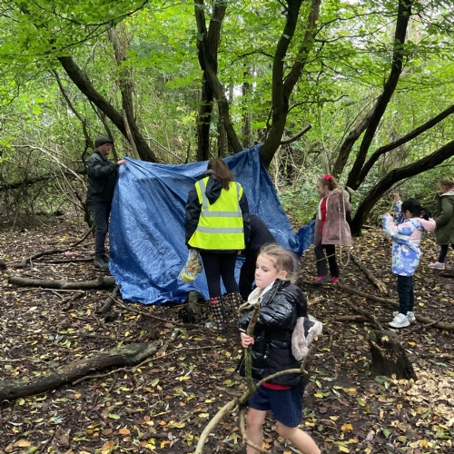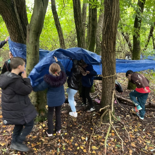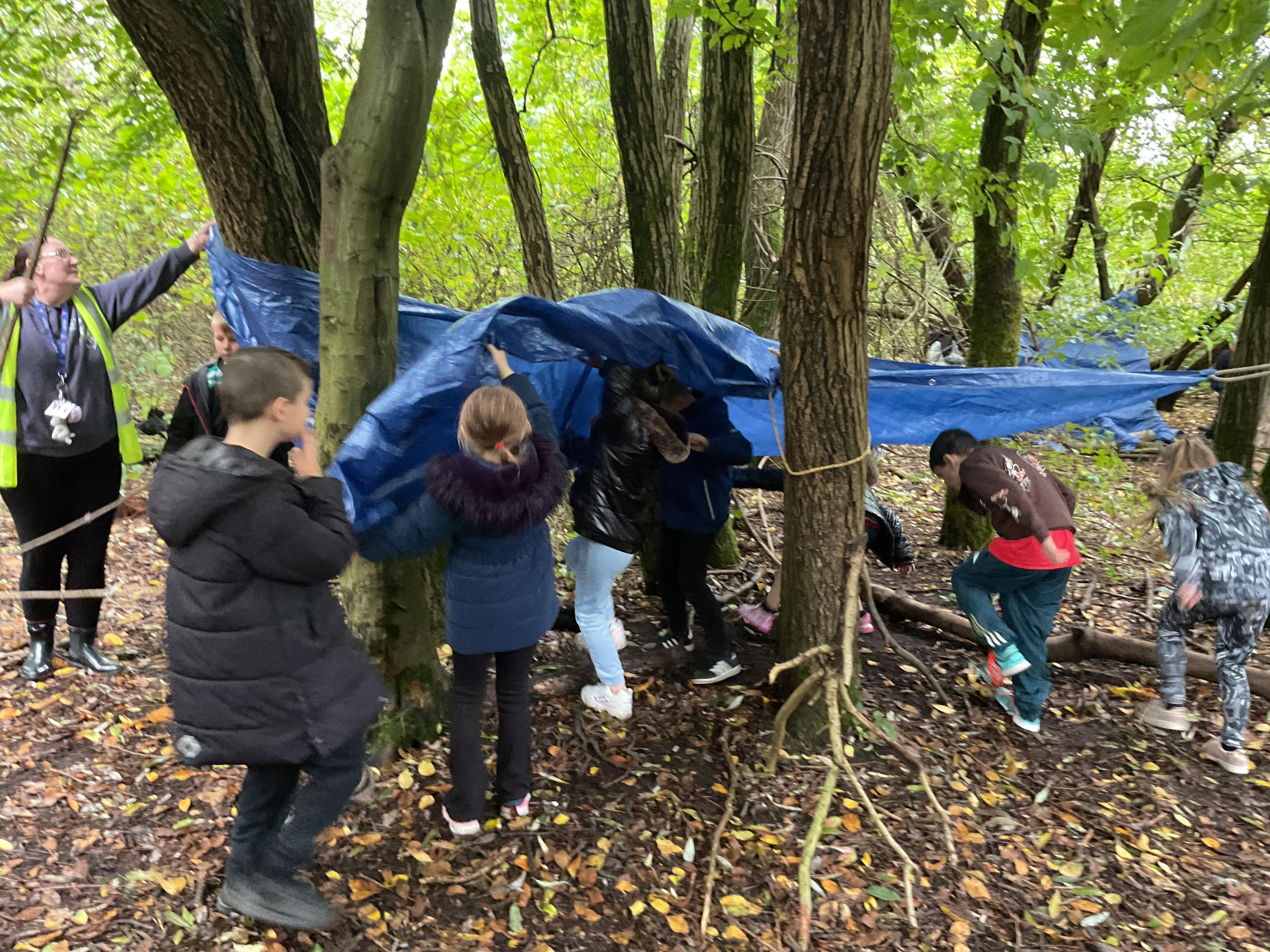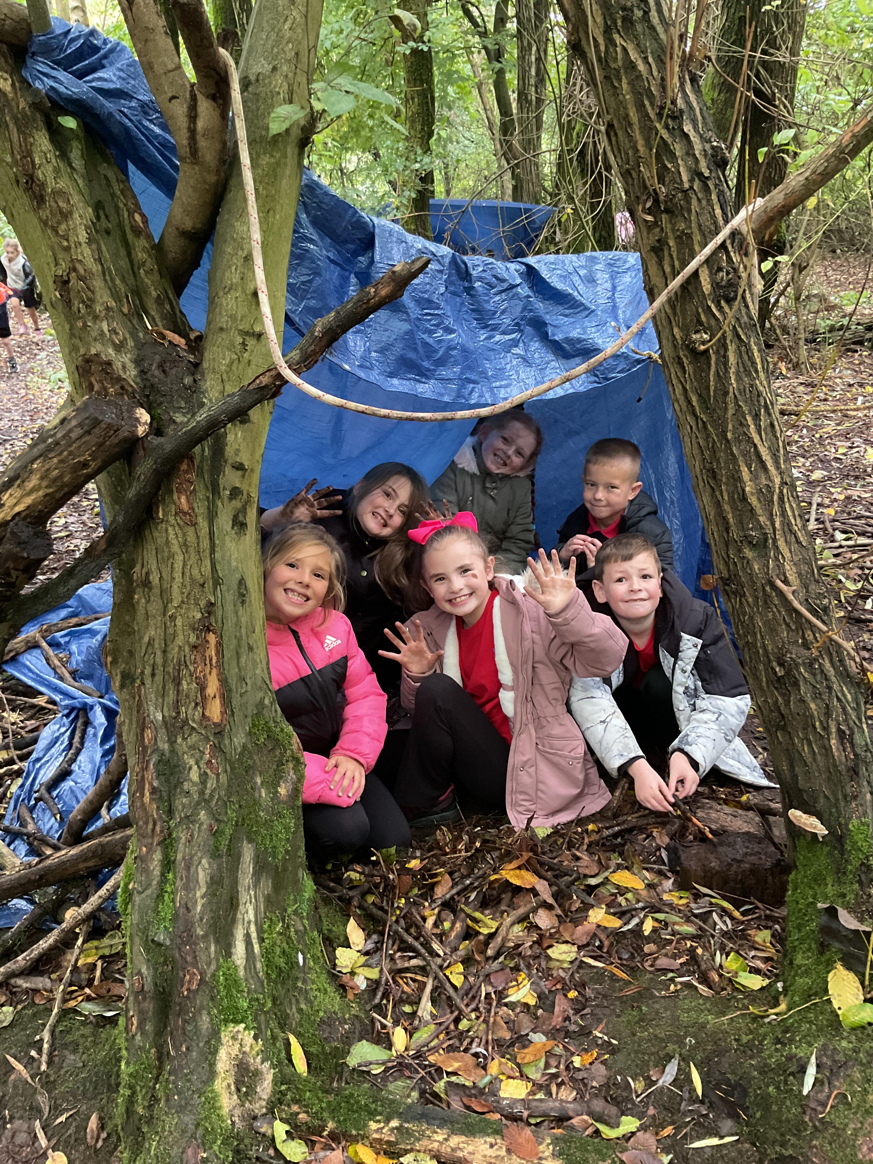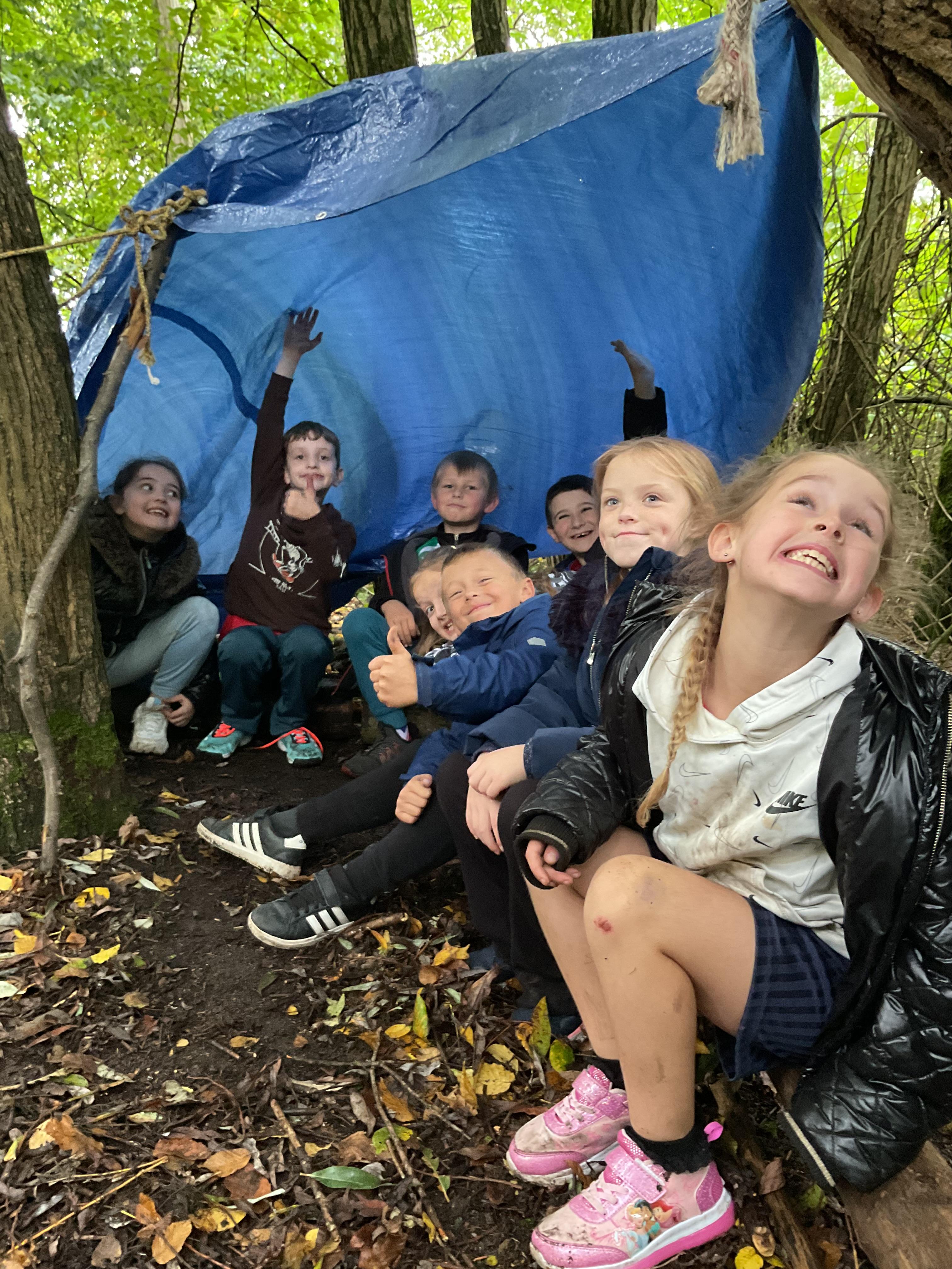We went over to the ALPS and created shelters to make a settlement as part of our Geography topic. It was great, and carefully planned. There was shelter, seats, and enough room for 10 children n each.