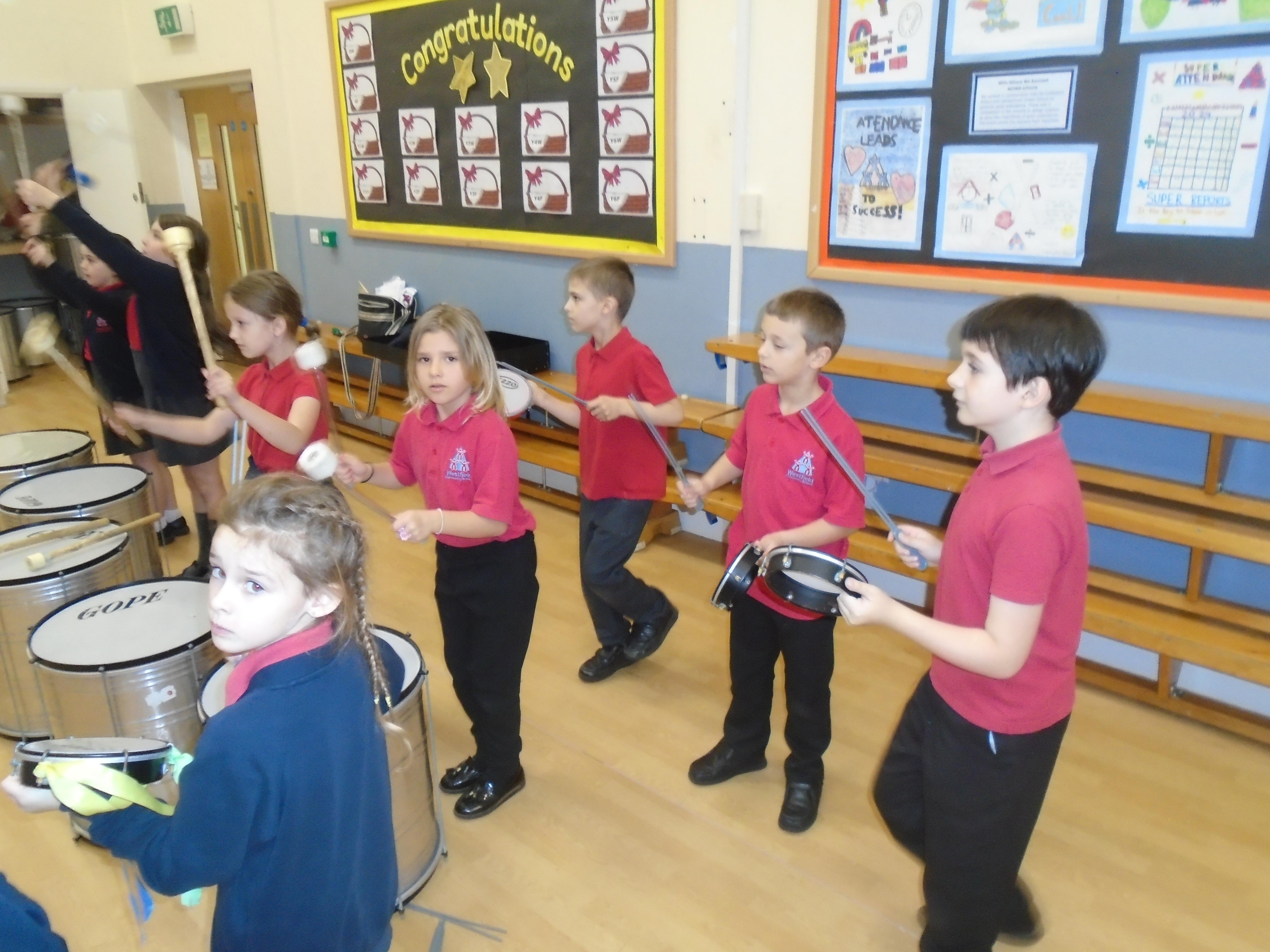 In Music, we have been getting ready for our drumming performance and practicing all the parts.