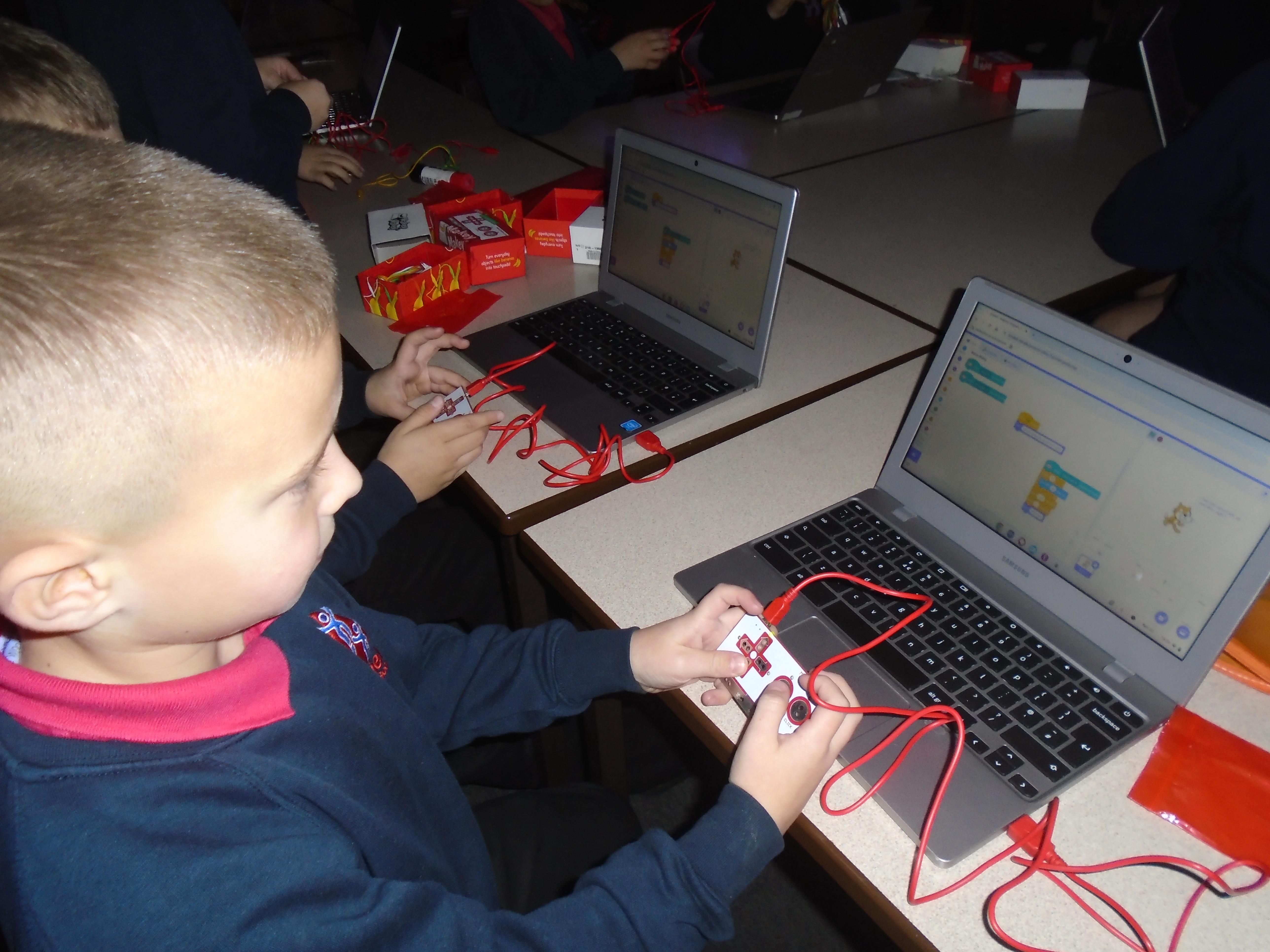 In English, we are writing a recount of a typical morning. Next week we will recount a morning in school. In Computing, we have continued to create a game using Scratch and Makey Makey, using coding to create movement.