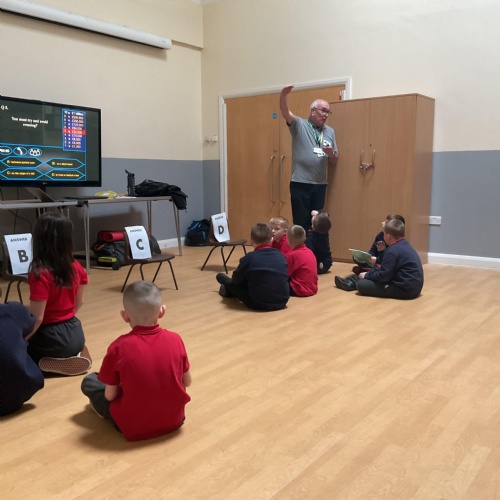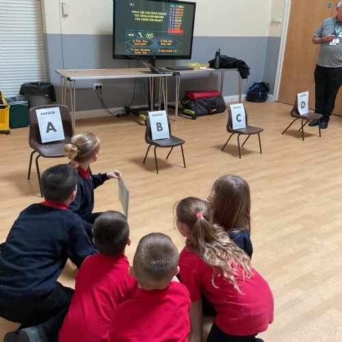 We had a visitor in this week so teach us all about road safety. Have a look at the pictures below, it was great fun playing games to learn all about it.