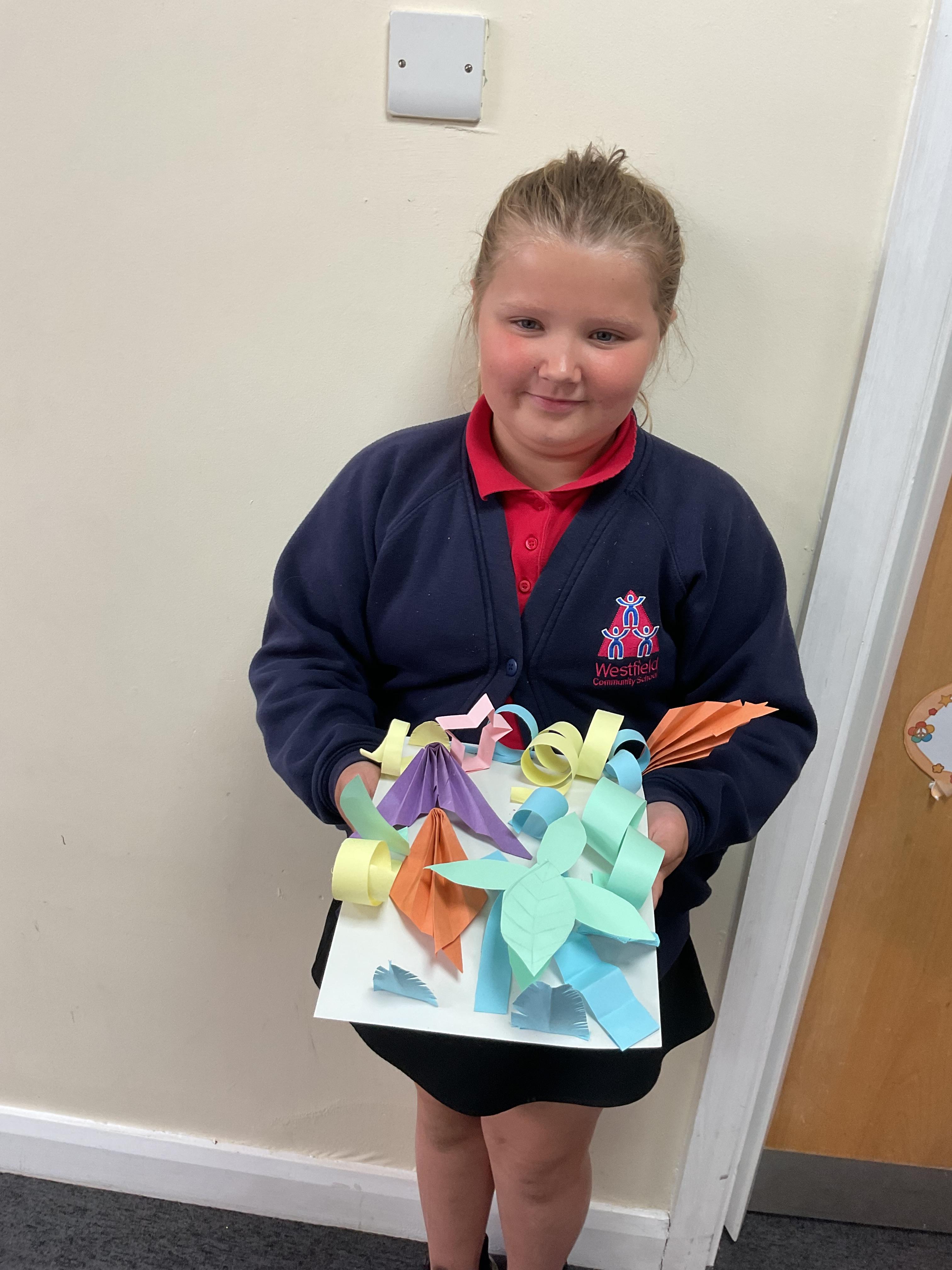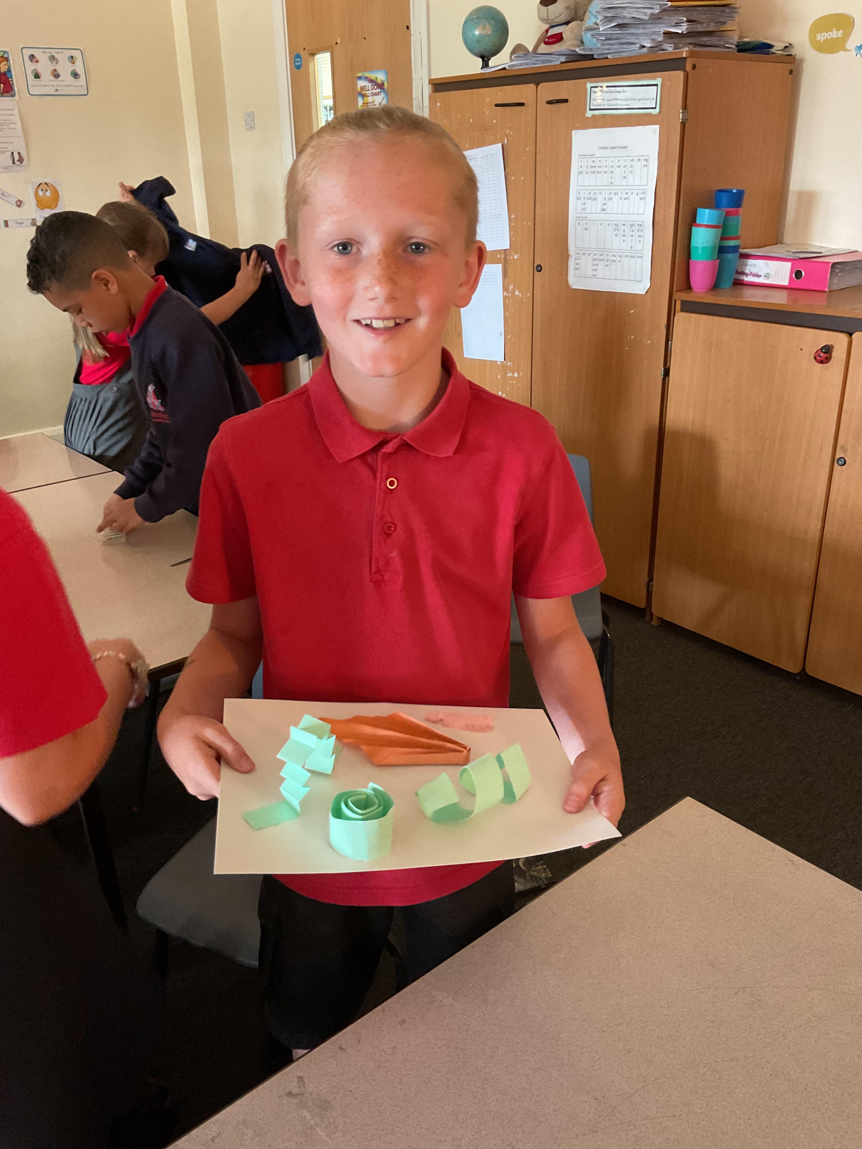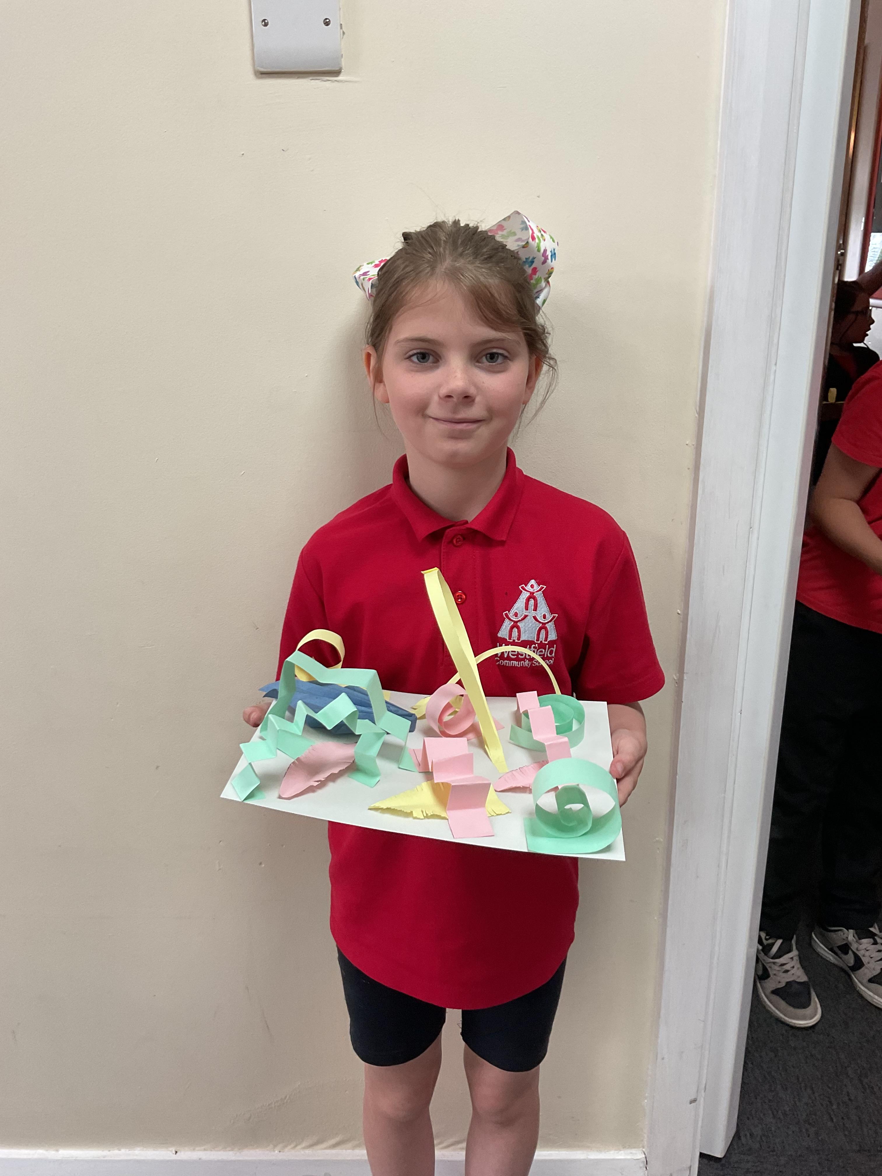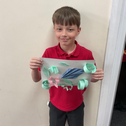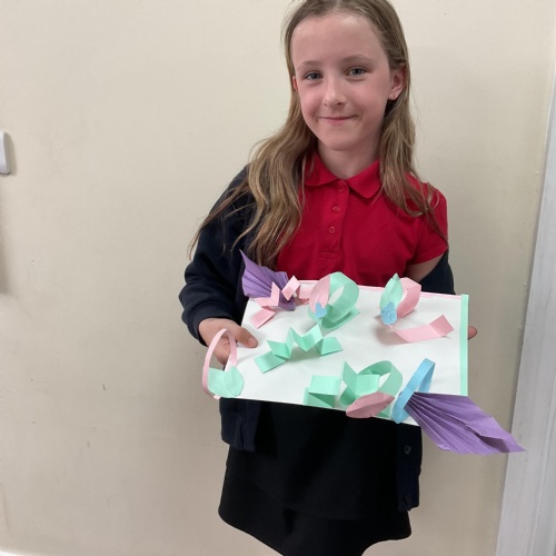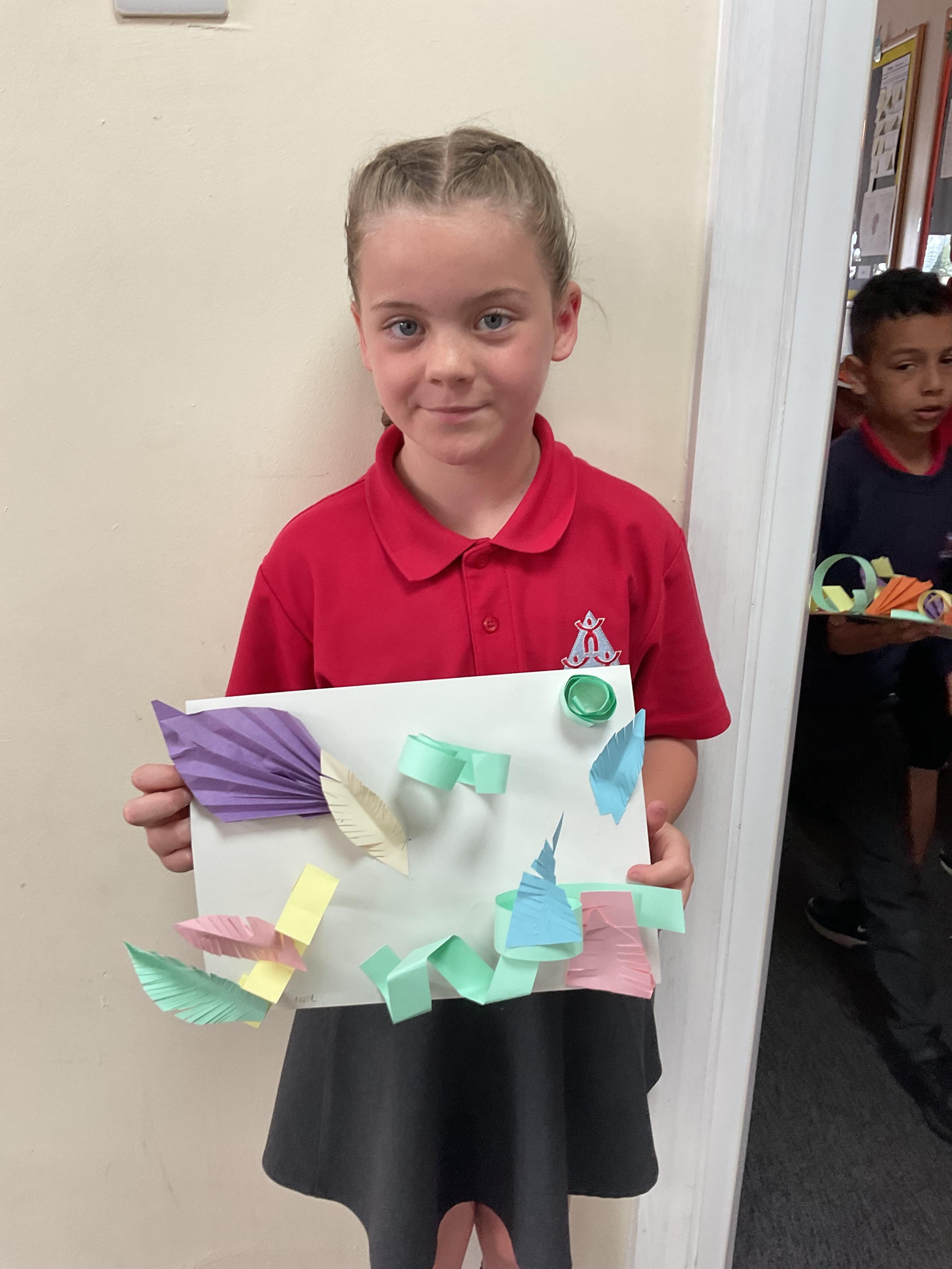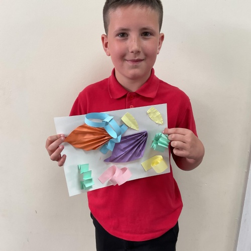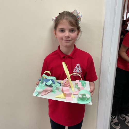 In art, the children have been looking at Rio De Janerio headdresses. They first practised different techniques which they created a 3D sculpture. They then created their final product which was their beautiful headdresses.