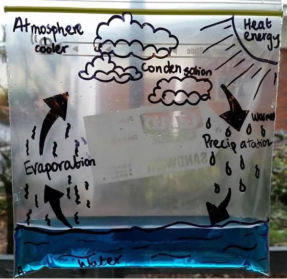 In science, the children created a water cycle in a bag. You can do this easily at home too.
