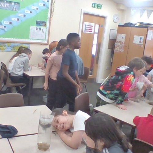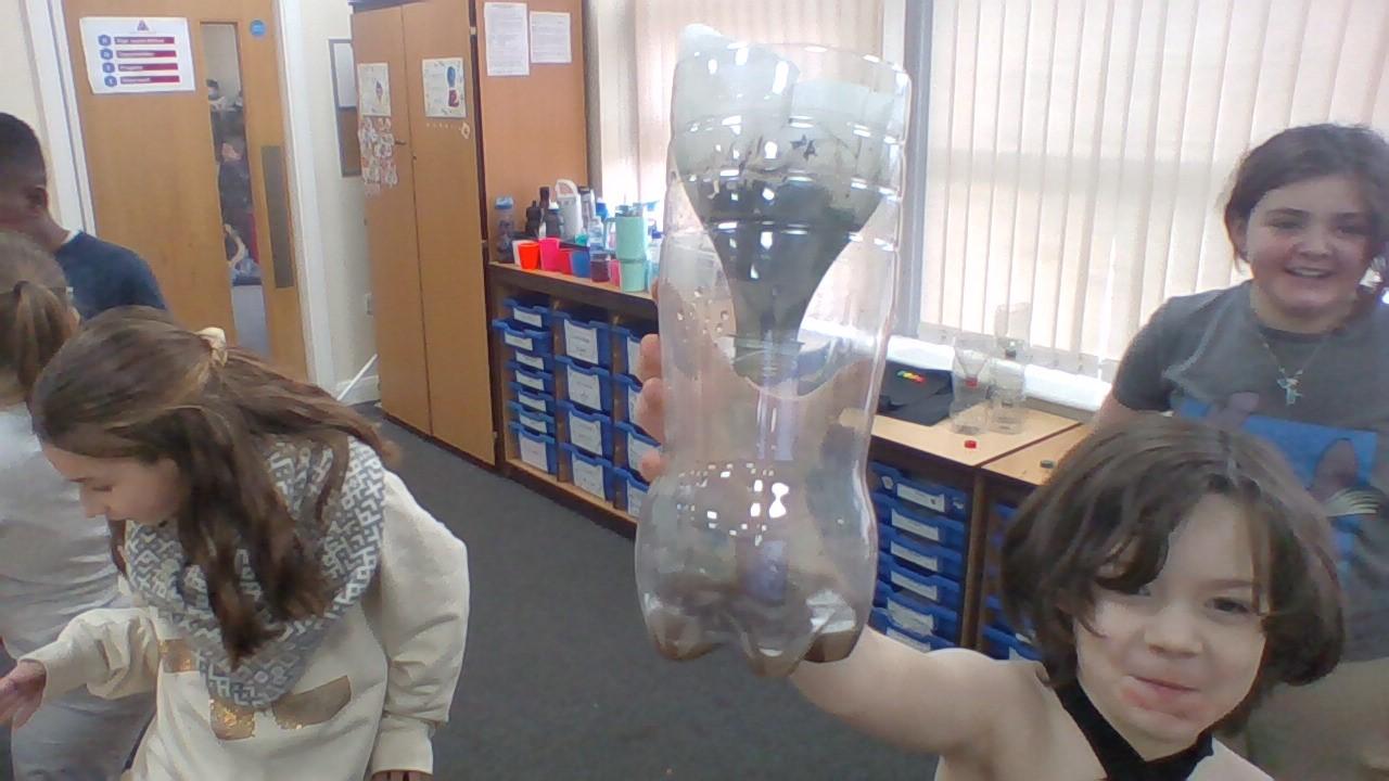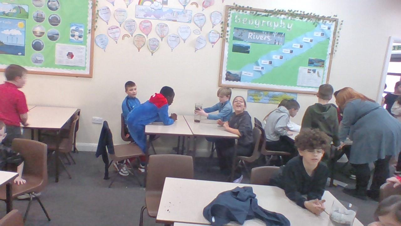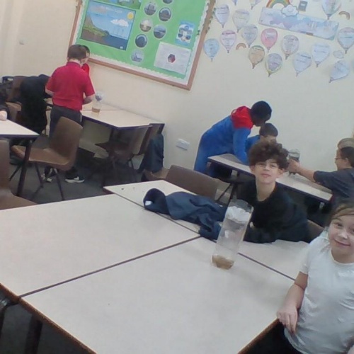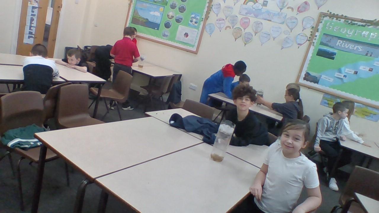 In geography, the class attempted to filter dirty water. This was to show how pollution effects our rivers and that we have to filter water over and over again to make it suitable for human consumption.
