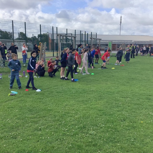 Today the children from Year 5F were invited to Deans Trust to take part in a PE lesson. They worked in teams and learnt how to sprint and the best techniques to use when competing in a relay race.