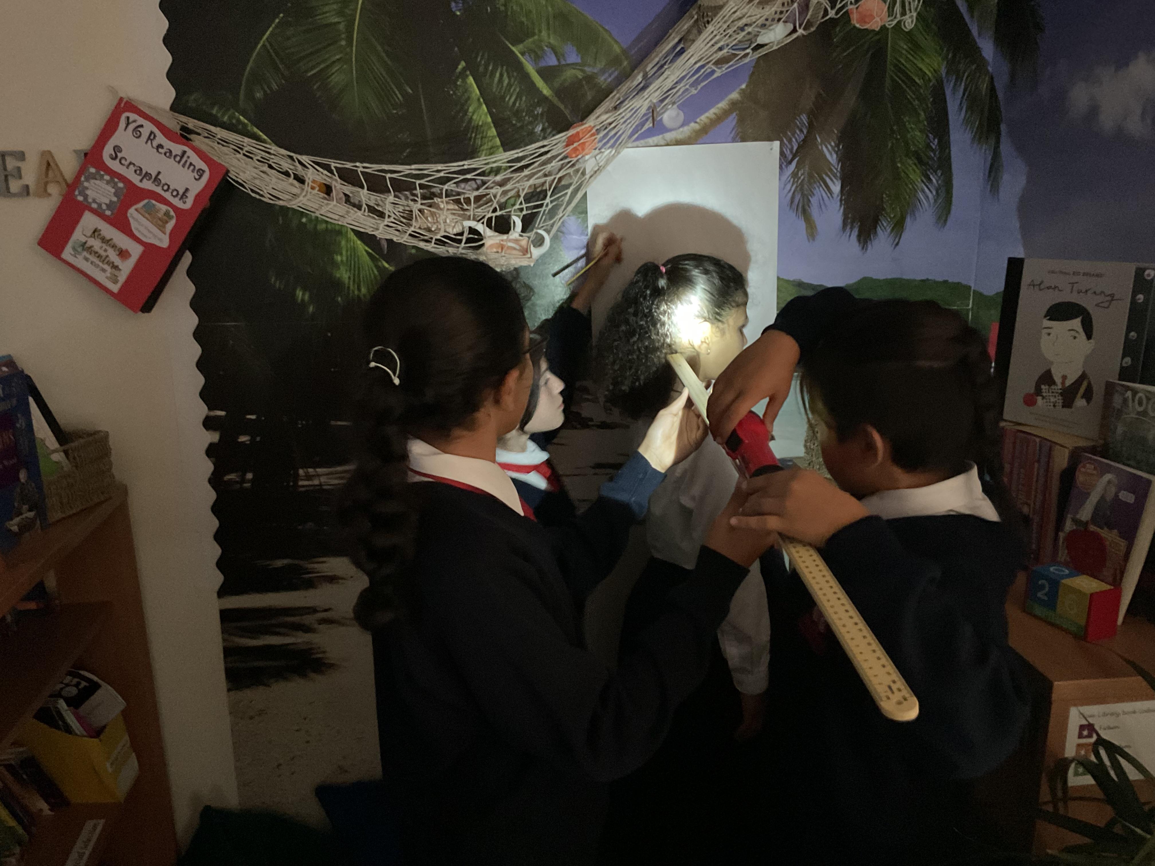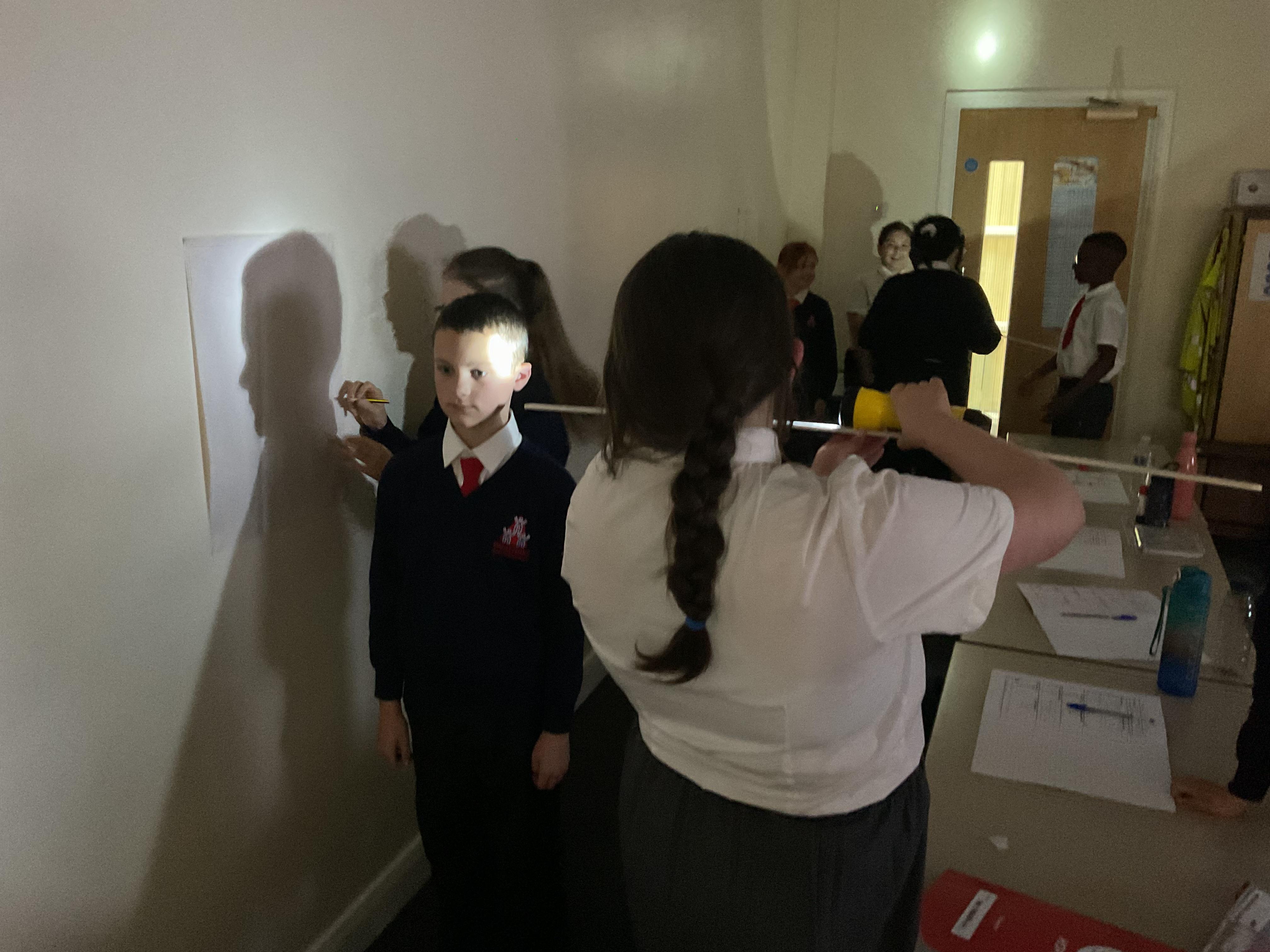 In Science, we are continuing our study of light ad this week we investigated how the we can change the size of a shadow. Did you know that the closer a light source is to an object, then the larger the shadow will be?