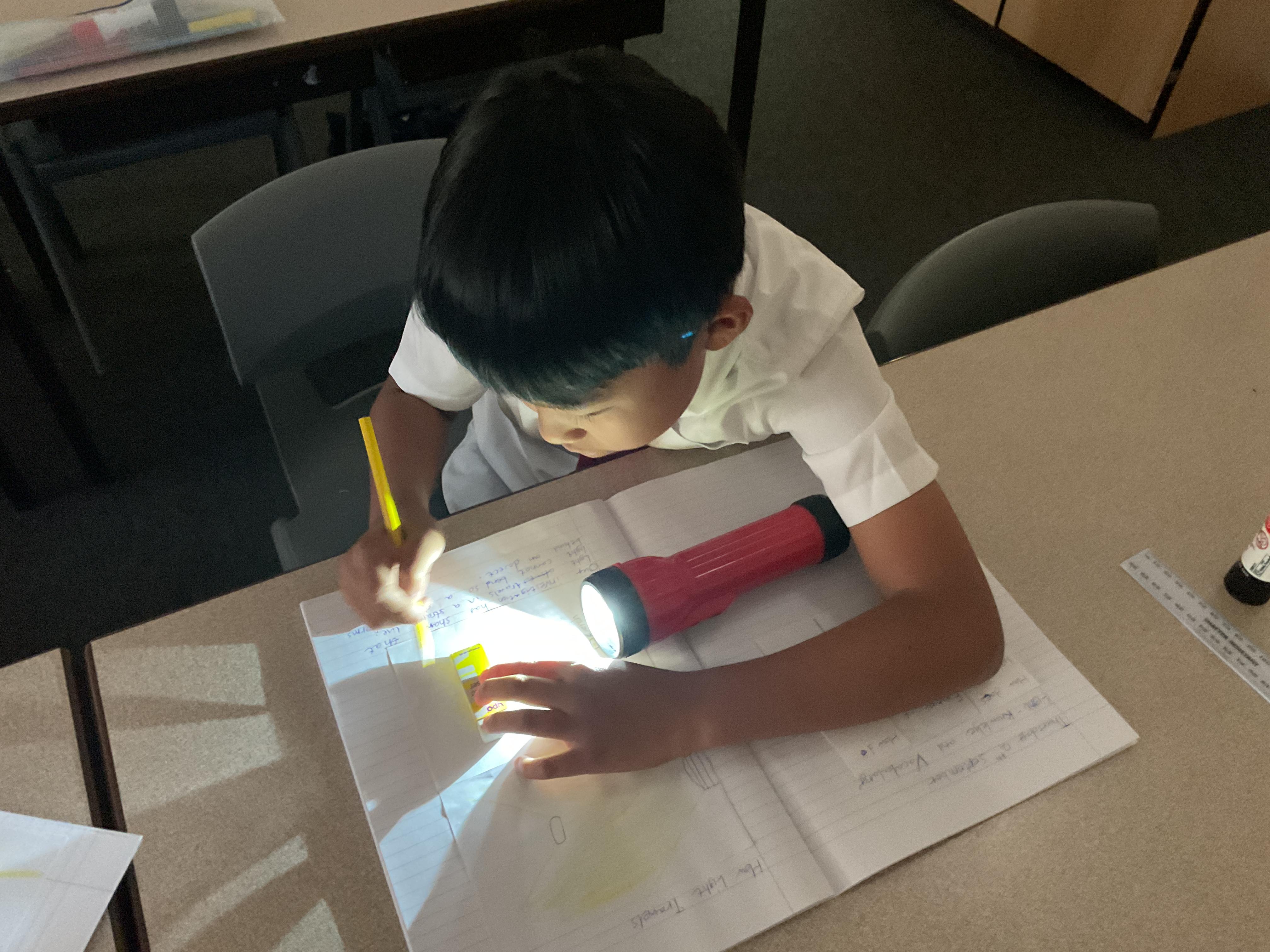 Our first Science topic is light. This week we investigated how light travels and what happens to a beam of light when it meets an object.