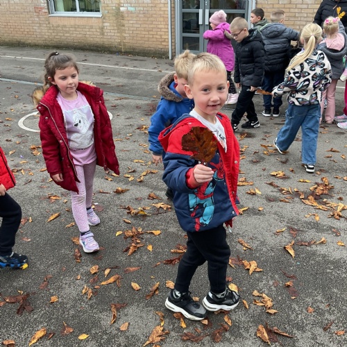We also went for a walk around the school grounds to collect leaves tyhat we can use for our art work this term!