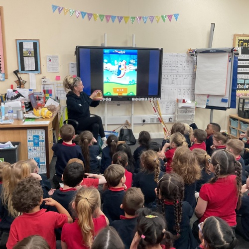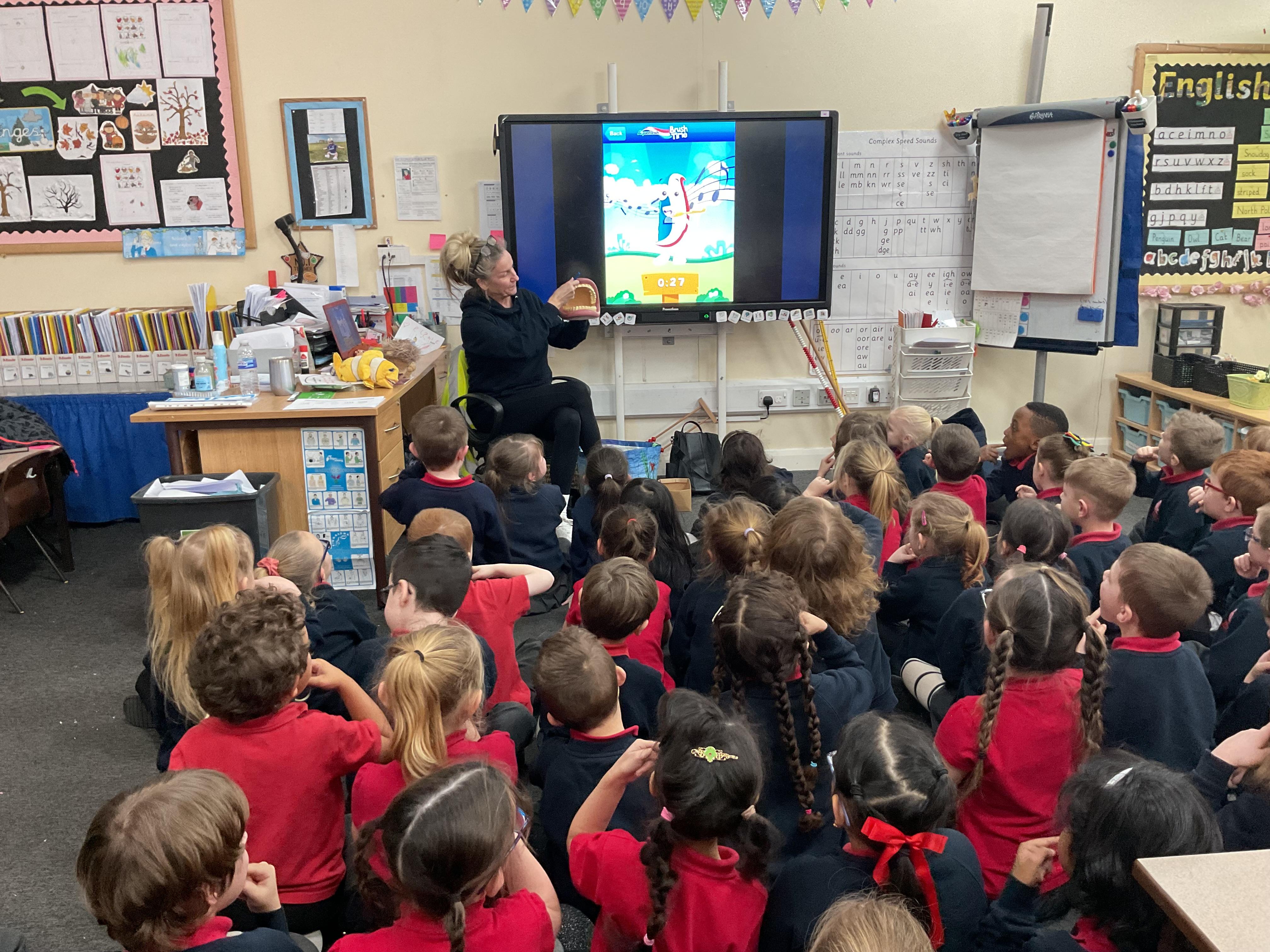 We were shown how to brush our teeth correctly to keep them healthy. We know we need to brush at least twice a day and for 2 minutes at a time. We were also told not to rinse out toothbrushes whilst brushing to make sure we don't wash the toothpaste off our teeth.