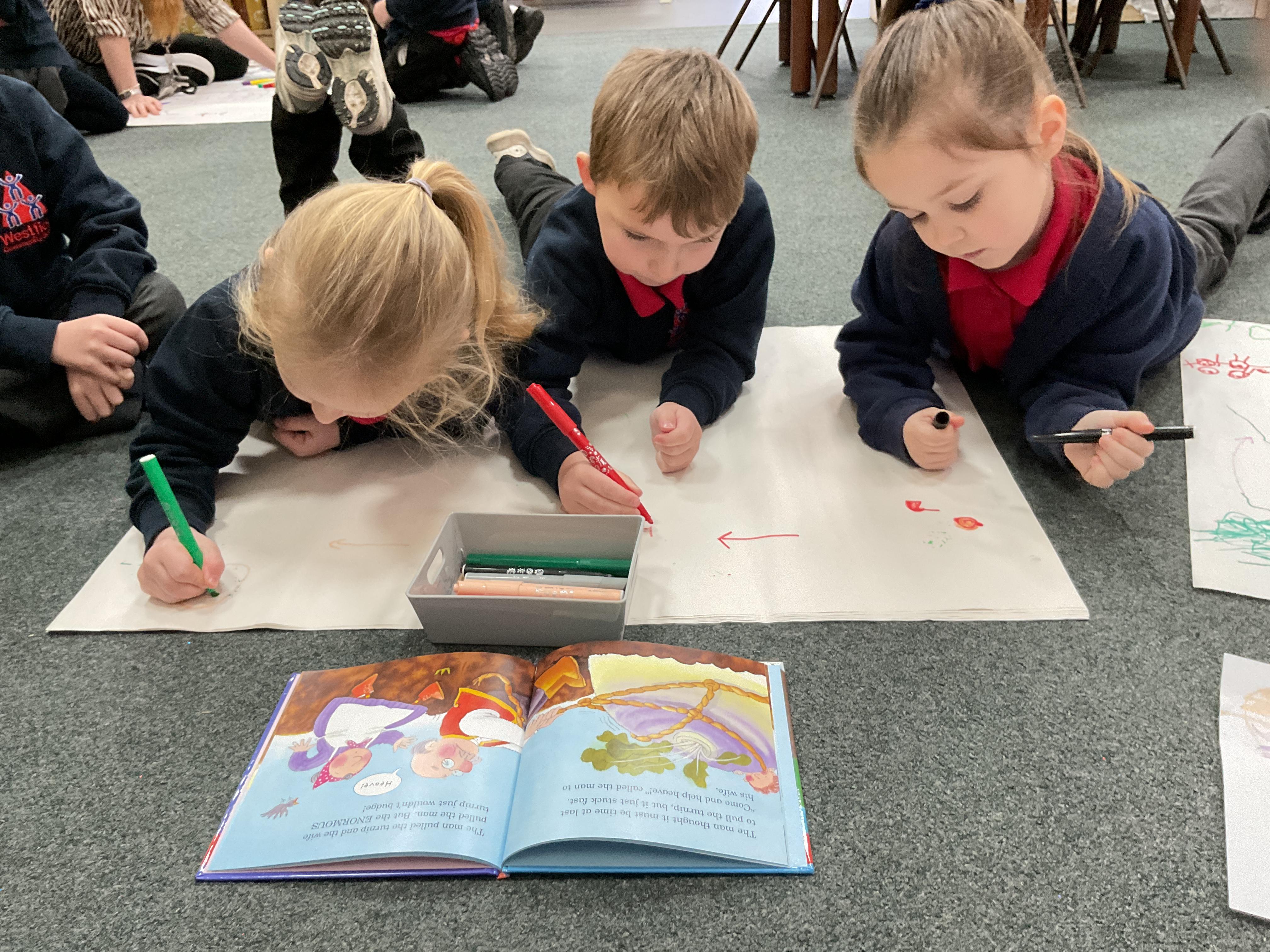 We created our own story maps at the start of the week to help us learn about the story and the characters. This is one of our favourite activities and really does help us to learn about the beginning, middle and end of the story and to talk about the events in the story ![]()