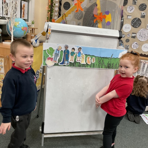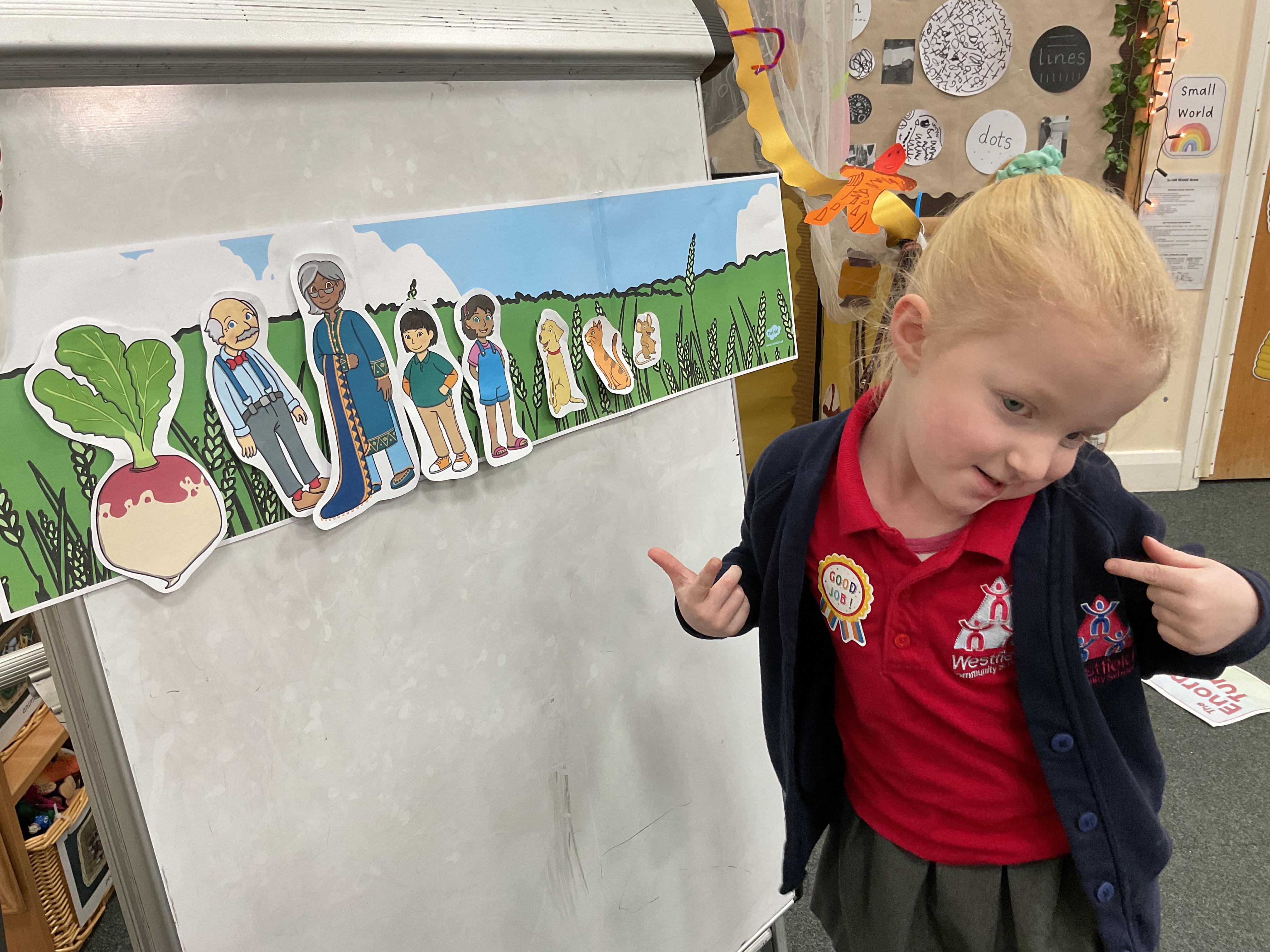 We then explored putting the characters in the correct order according to the story. Here we are identifying, ordering and then retelling the story in our own words ![]()