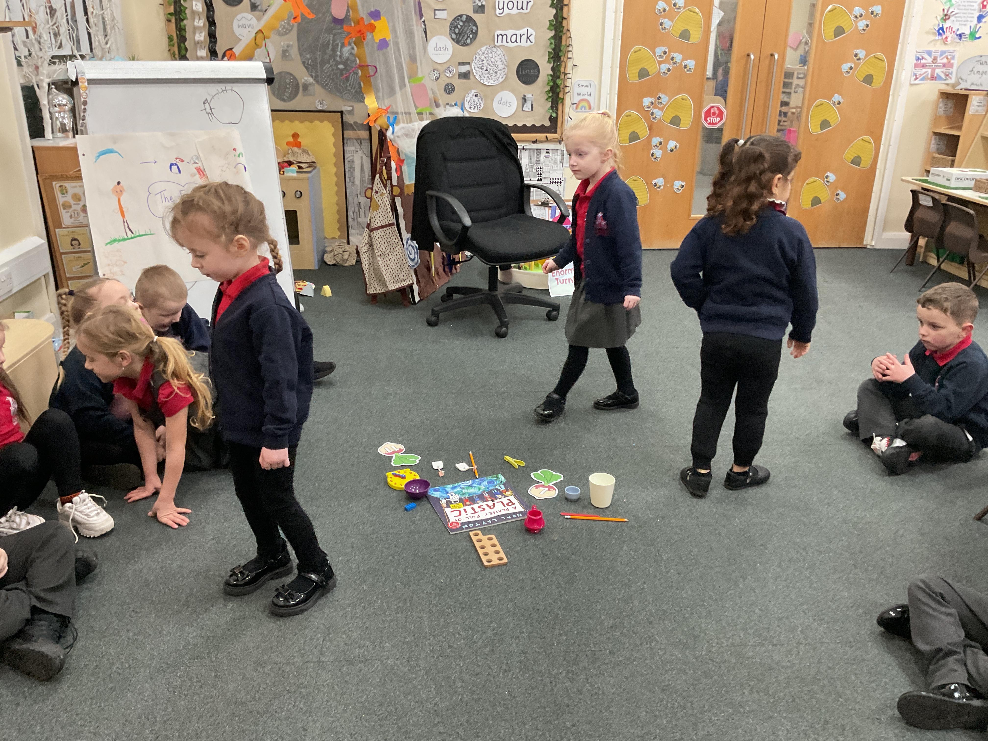 As part of our thinking story we looked at how recycling plastic could help the world. We were set a challenge to look around our classroom and find things made of plastic. We learned all about how long it takes to break down and the damage it does. We are now going to be recycling more in class.
