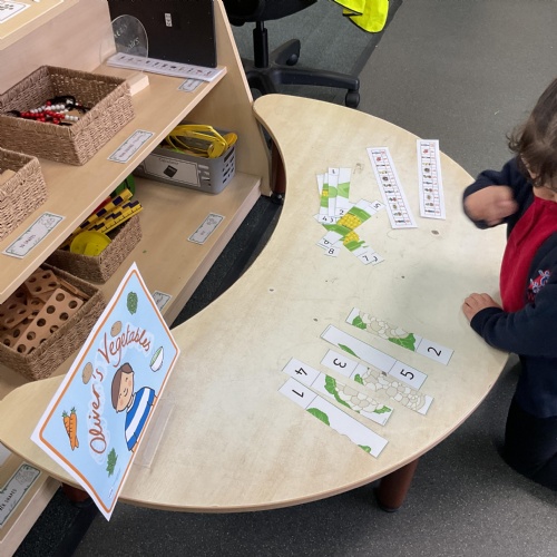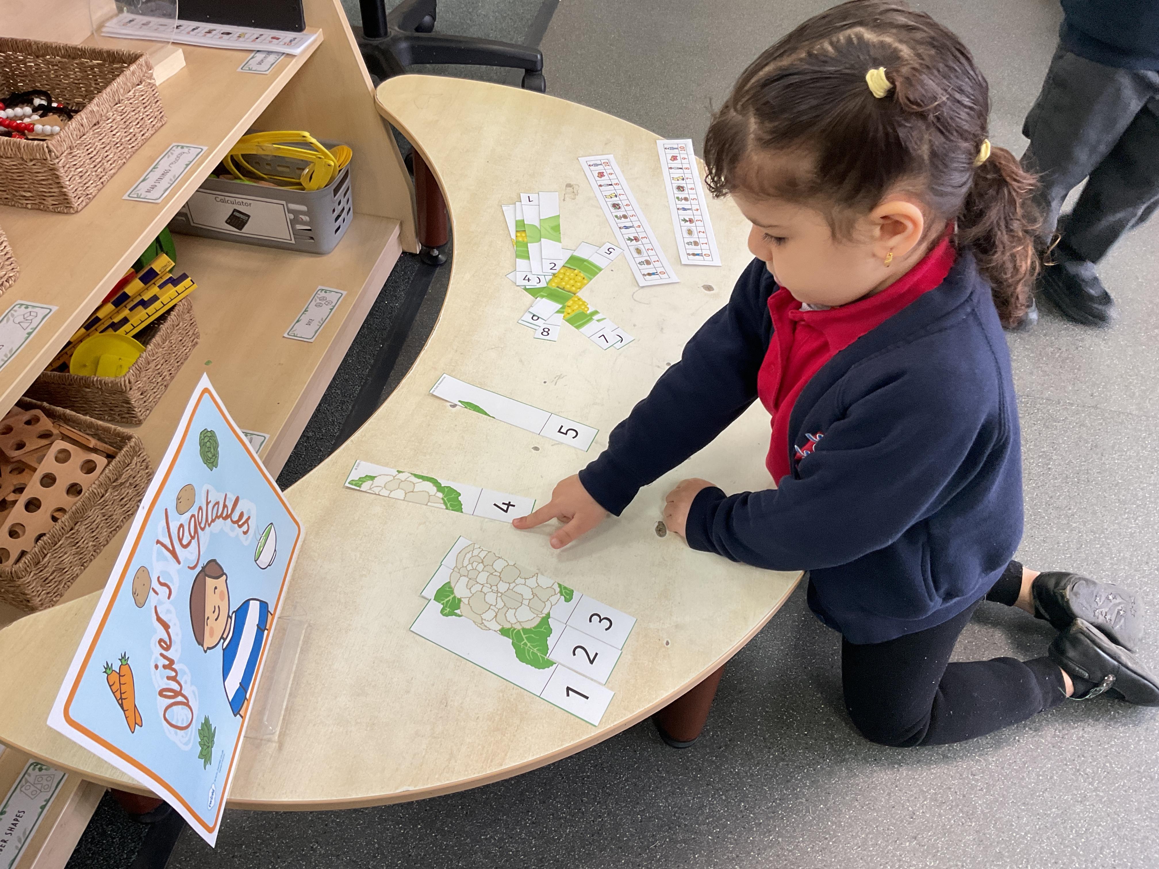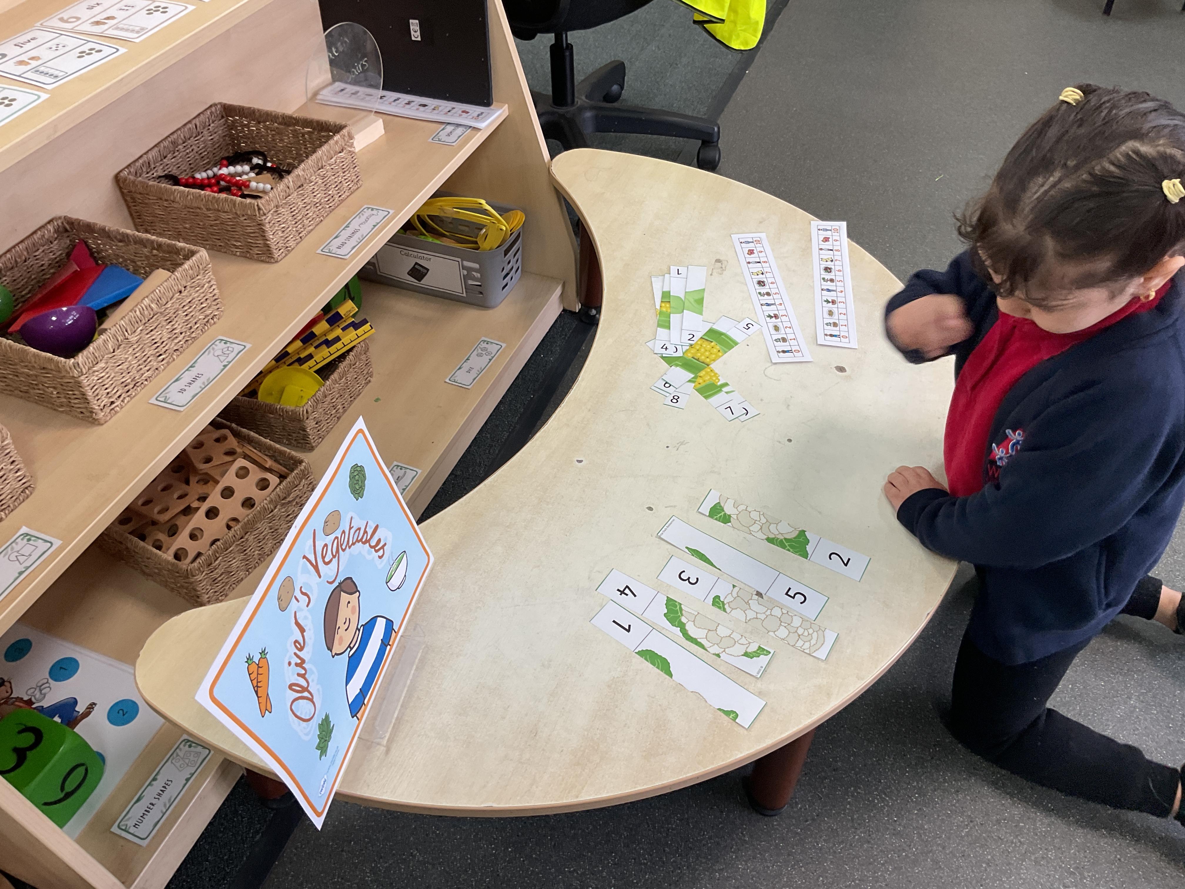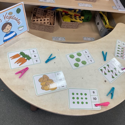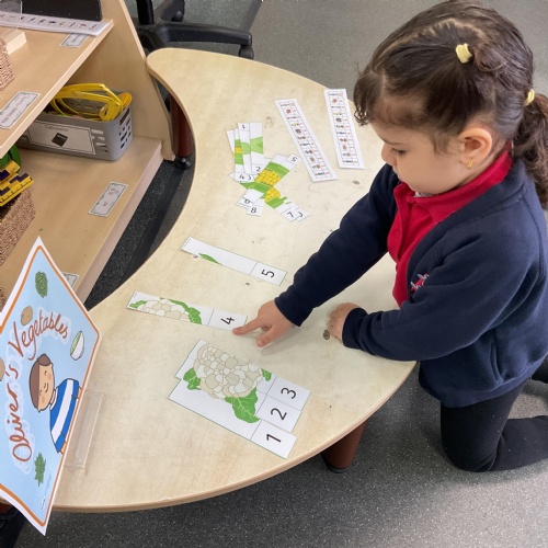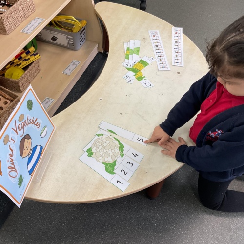 We also took our theme of healthy eating and vegetables in particular into the Maths Area. Here we ordered numbers from 1-5 and 1-10 and correctly completed the jigsaw picture of different vegetables. Great work everyone ![]()