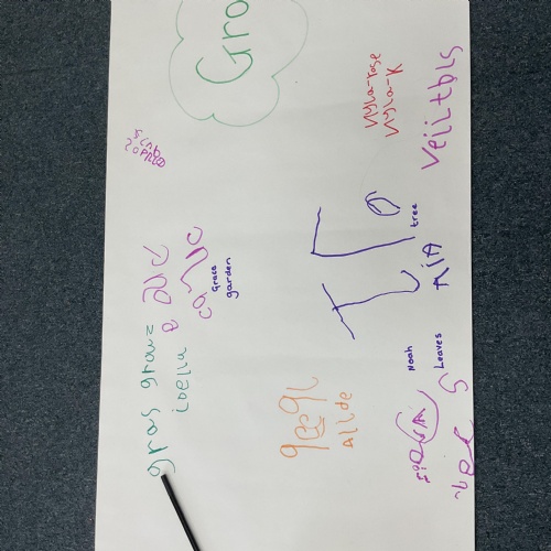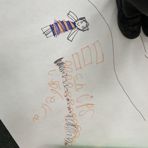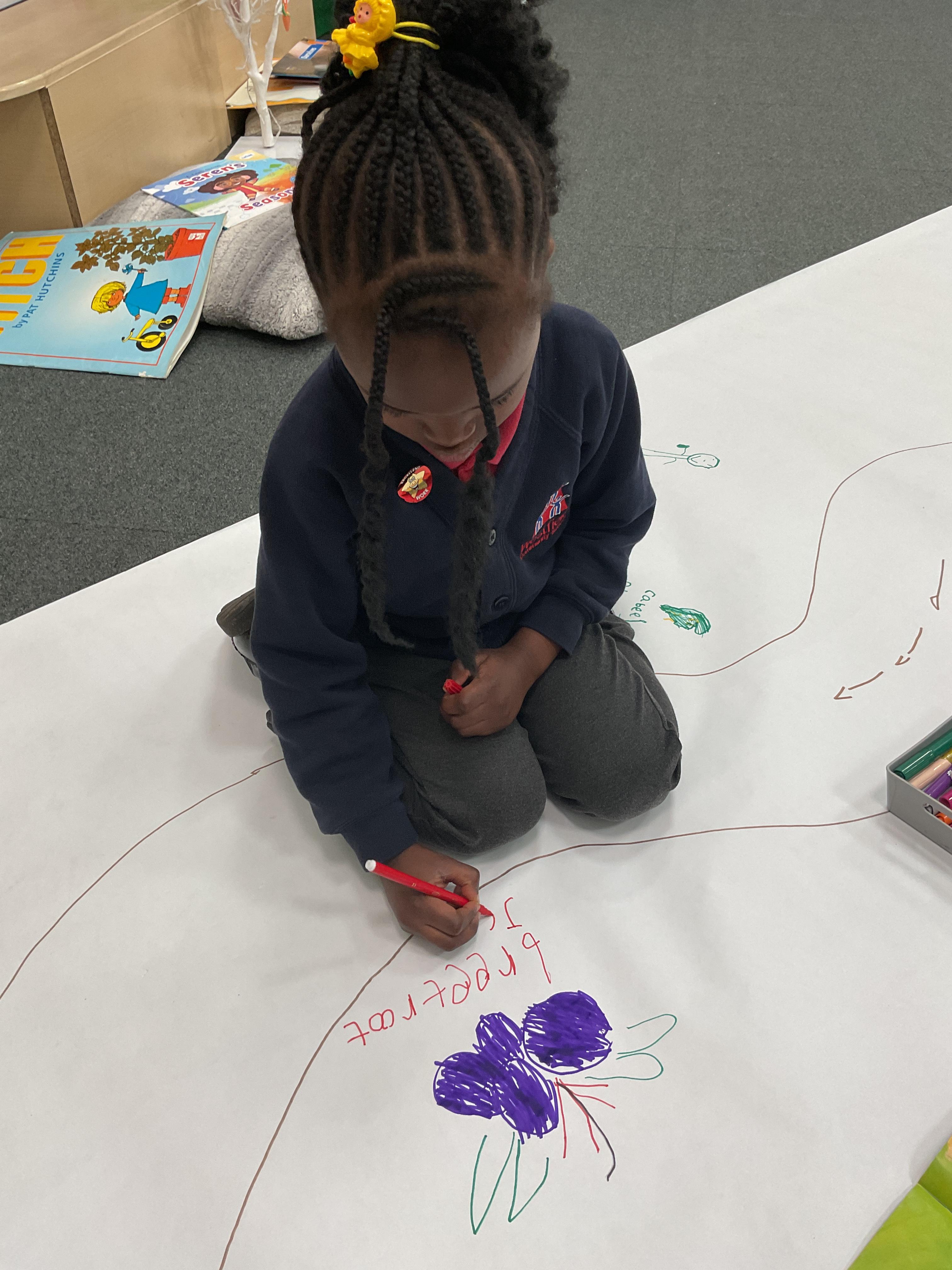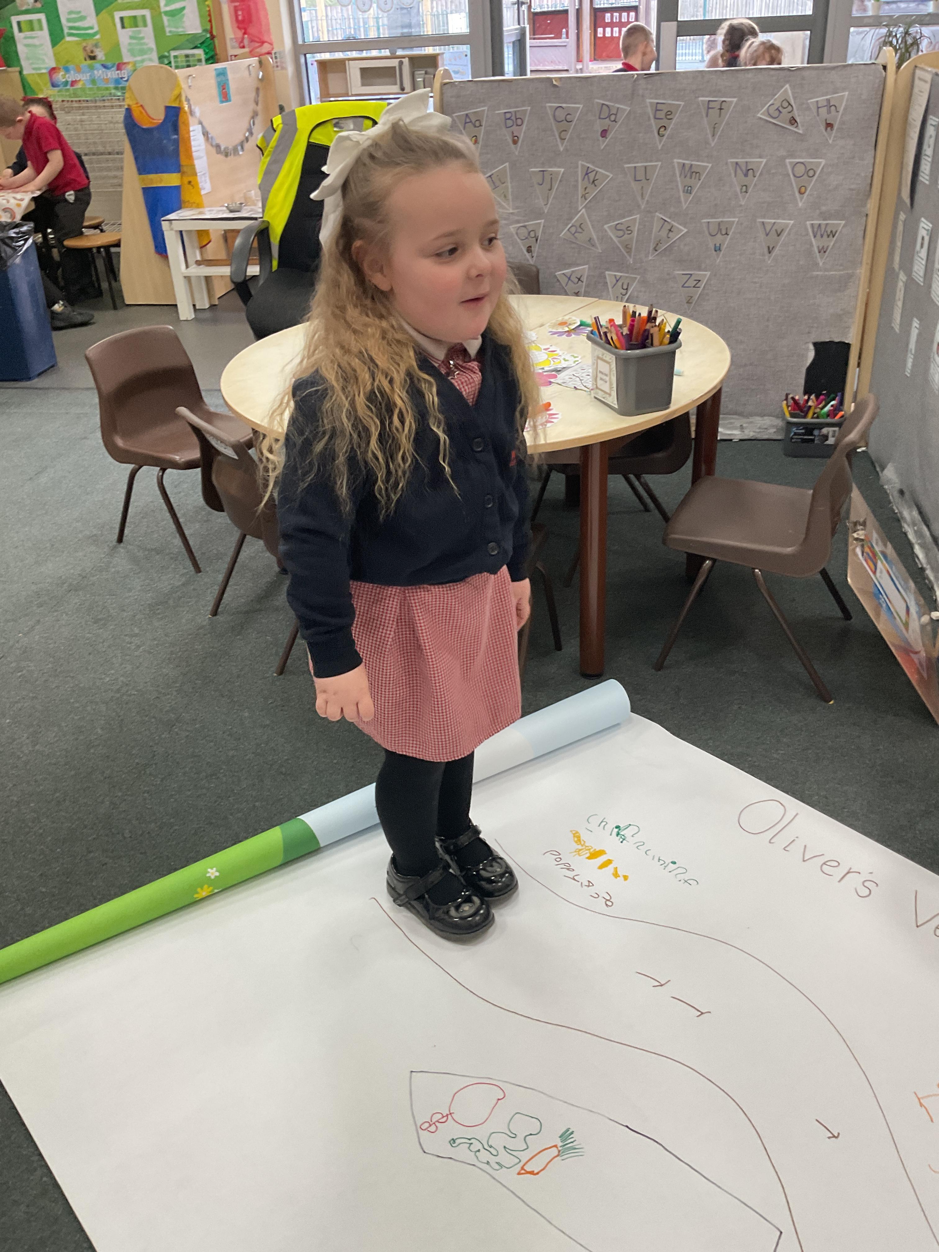 We also walked along the story map and retold the story of what Oliver discovered in Grandpa's garden. Here we are perfecting our memory and story telling skills ![]()