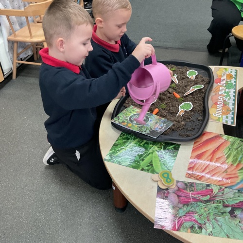 Welcome back to our Spring 2 class blog. This half term we will be learning all about Growth - growth of animals, plants and of course.... us! We will be using different texts of the week to help focus our learning and to develop our knowledge. This week we have been using the text Oliver's Vegetables. A lovely story about a little boy Oliver who said he didn't like vegetables only chips. What he didn't realise is chips are made from potatoes and they are a vegetable. Let's look at some of the lovely invitations to come and play we have explored this week ![]()