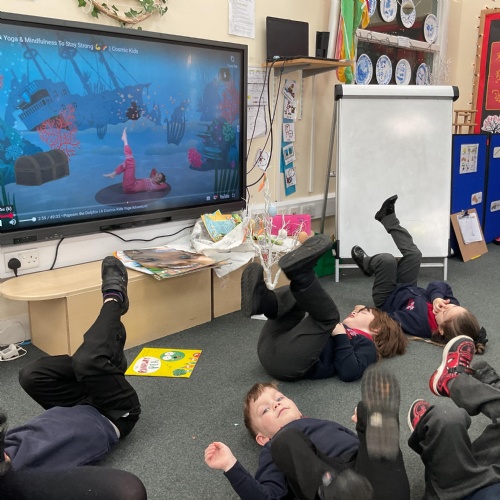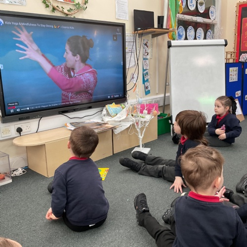 We also looked at the effect exercise has on our bodies. We used the story of the Hungry Caterpillar in our Yoga sessions. We love Yoga! ![]()