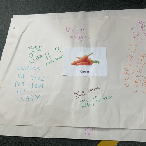 Towards the end of the week and after lots of discussions and hands on exploration of vegetables we created fact files detailing all we knew about certain vegetables from the story of Oliver's Vegetables. Take a look at our writing ![]()