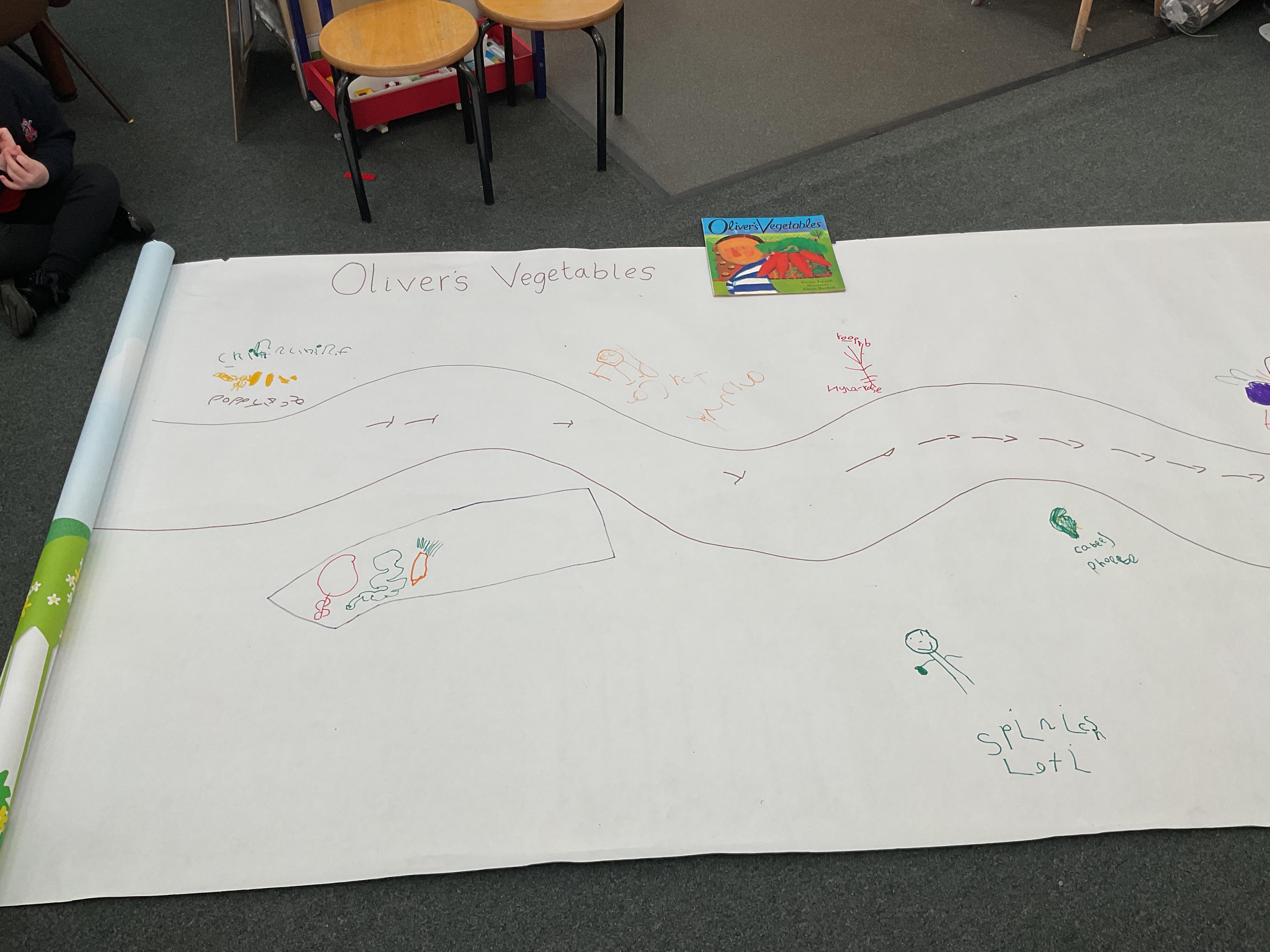 At the start of the week we did exactly what Oliver did in the story. We picked our own carrots, these were carrots with a difference though as they had words on them! We selected a carrot, pulled it from the soil and read it to our friend. What a great idea ![]()