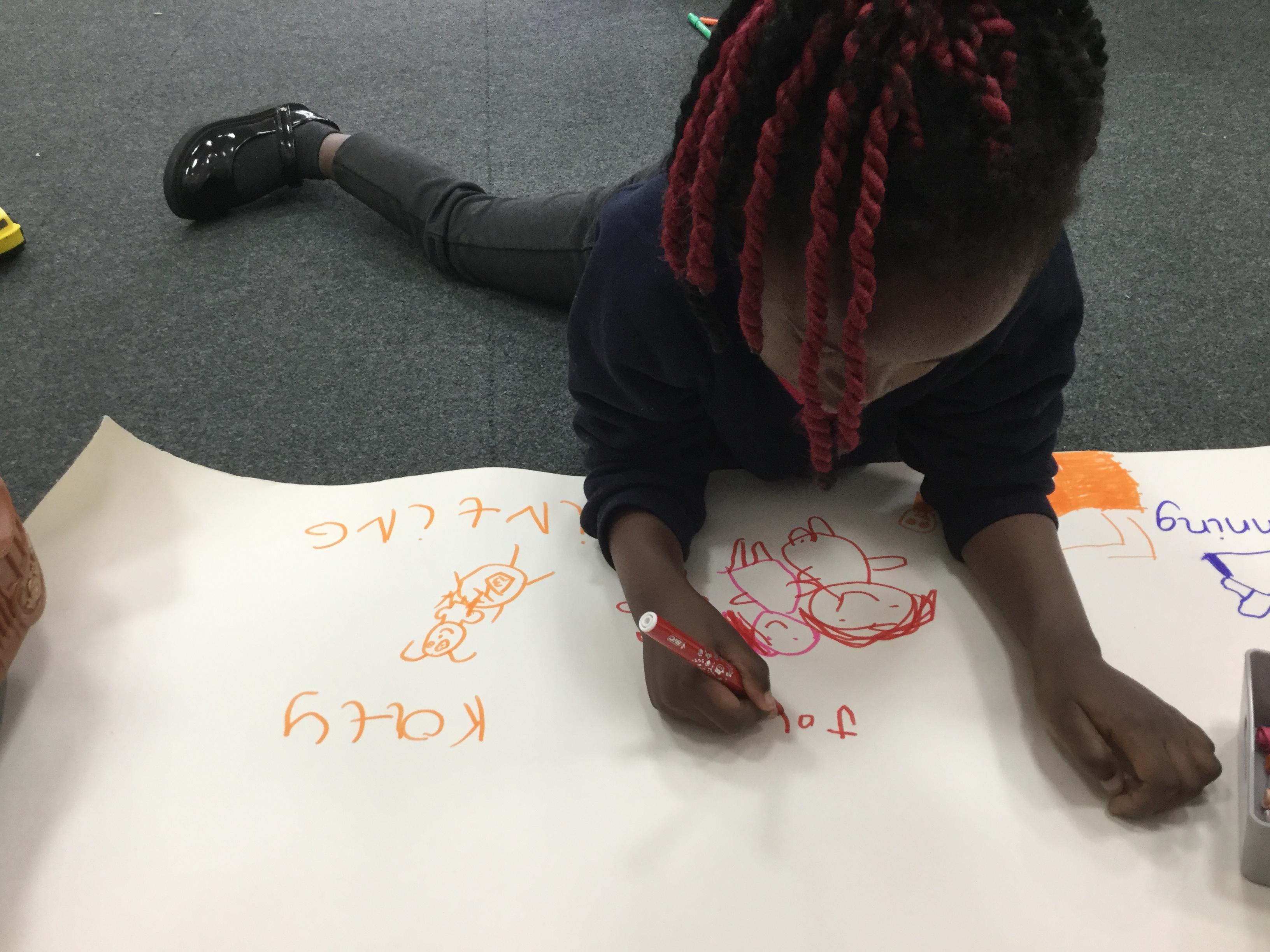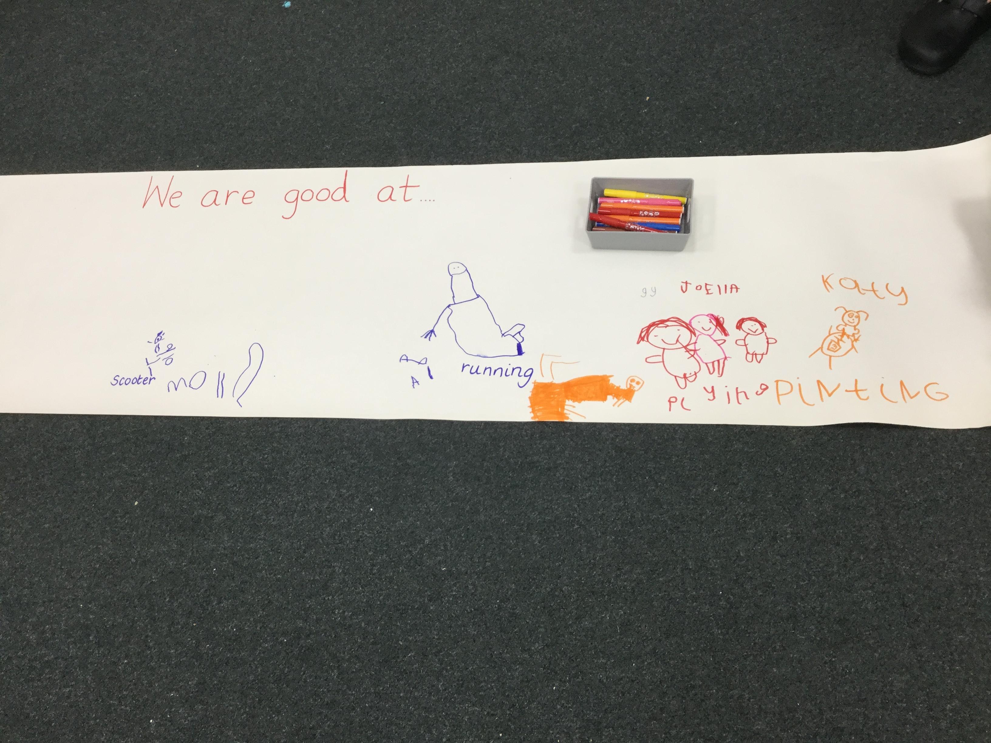 Using the fabulous text Marvellous Me we talked about and thought about the amazing things we can do and how we are all different. Some things we find easy and some we find hard but we can try hard and never give up. Here we are creating our display work showing the things we are good at. We even had a go at writing a label. Keep up the great work everyone!