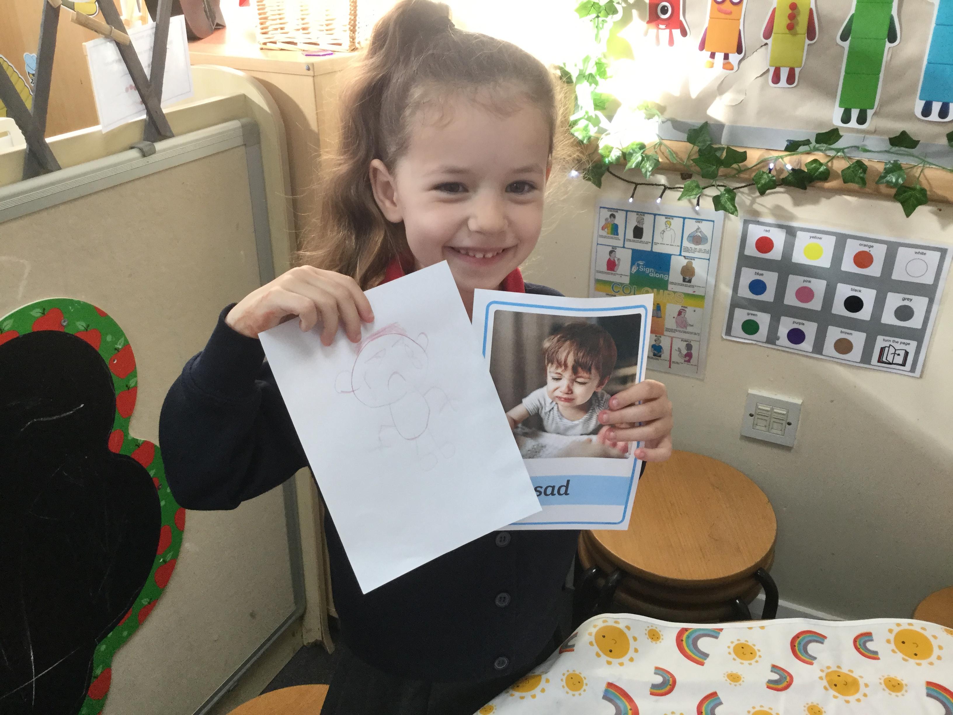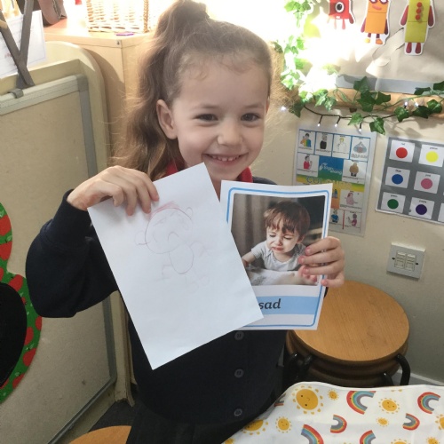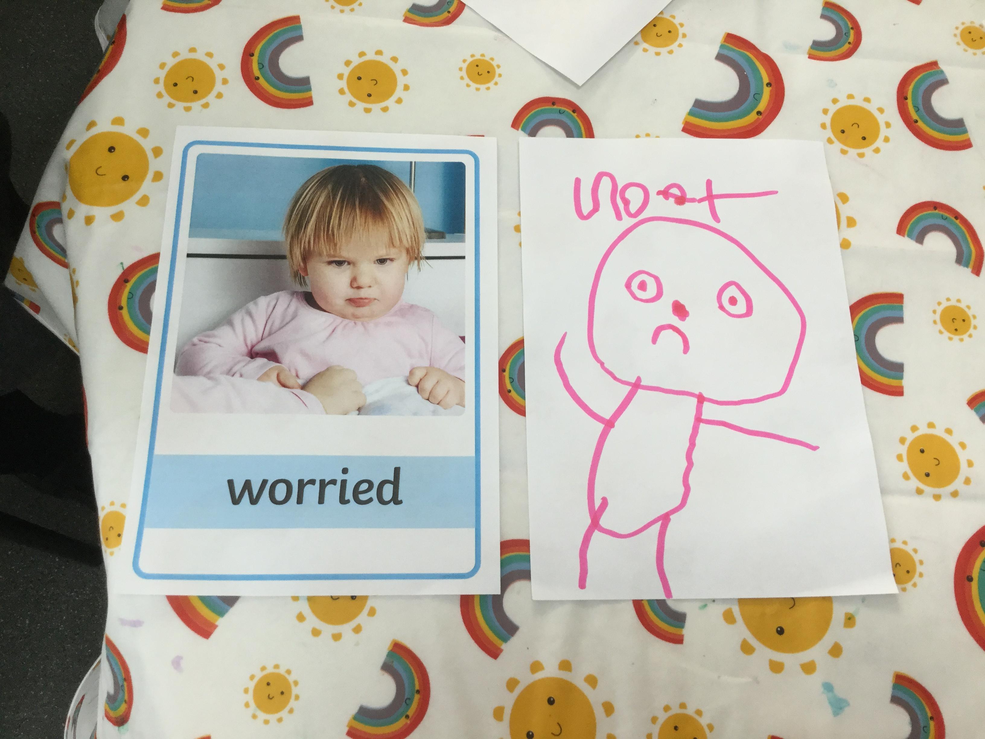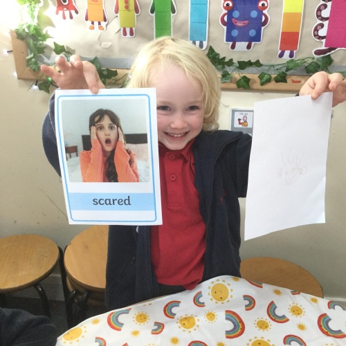 We also listened to the story The Weather inside Me. A lovely story that talks about feelings and emotions and how to deal with them. To help us understand these big feelings we made faces using mirrors, drew ourselves experiencing different emotions and talked about the things that happen that make us feel a certain way. Take a look at these great drawings ![]()