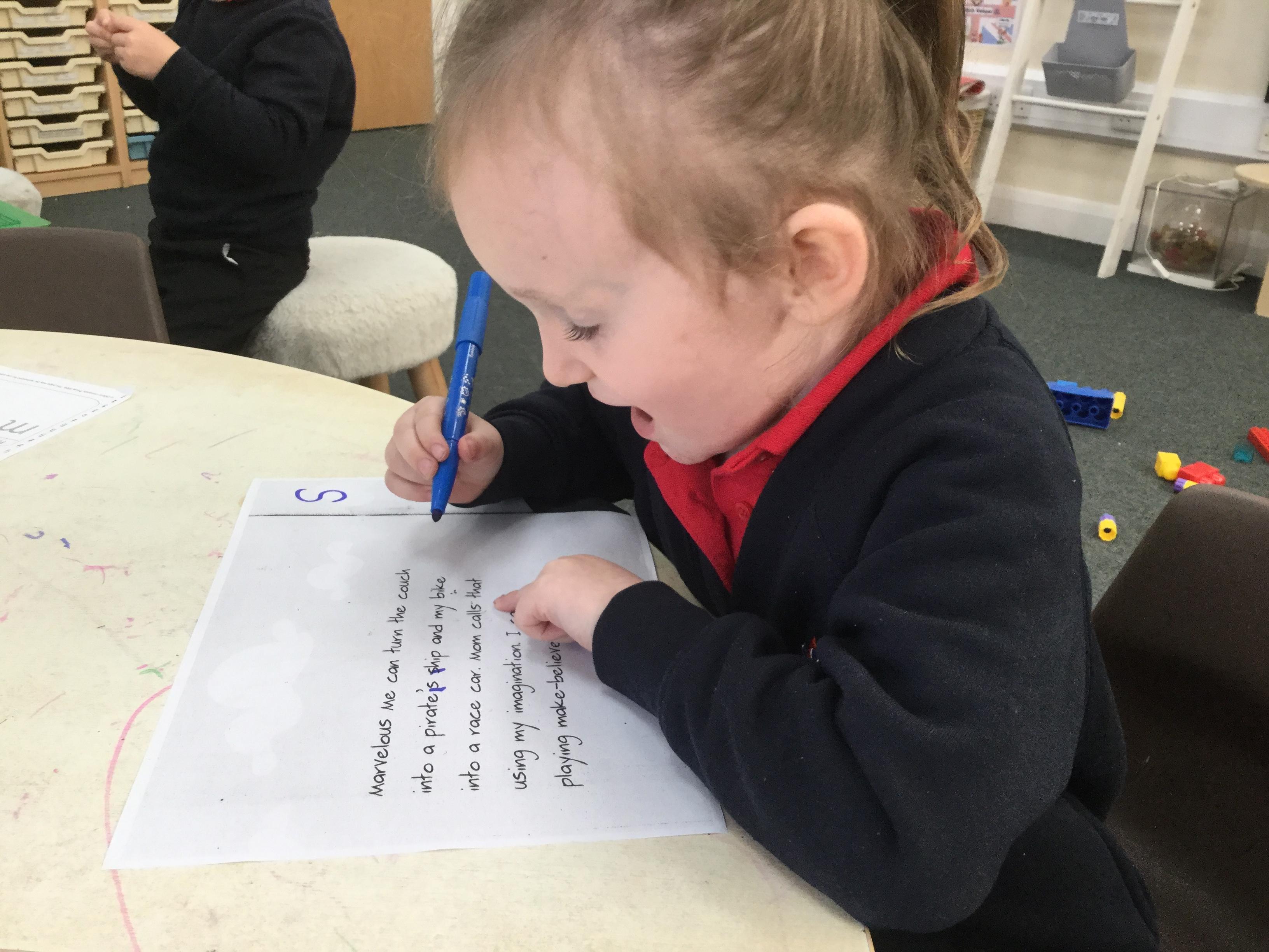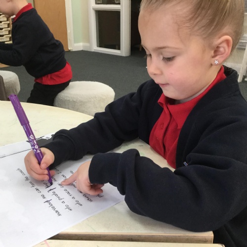 We continue with our letter detective work. Scanning a page from the text of the week, finding letters we have been learning about and circling them - a great pre reading skill. This is something you can try at home - choose a book, start on the first sentence and slowly trail your finger looking for a sound. The children love this ![]()