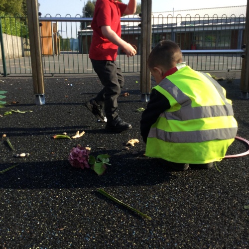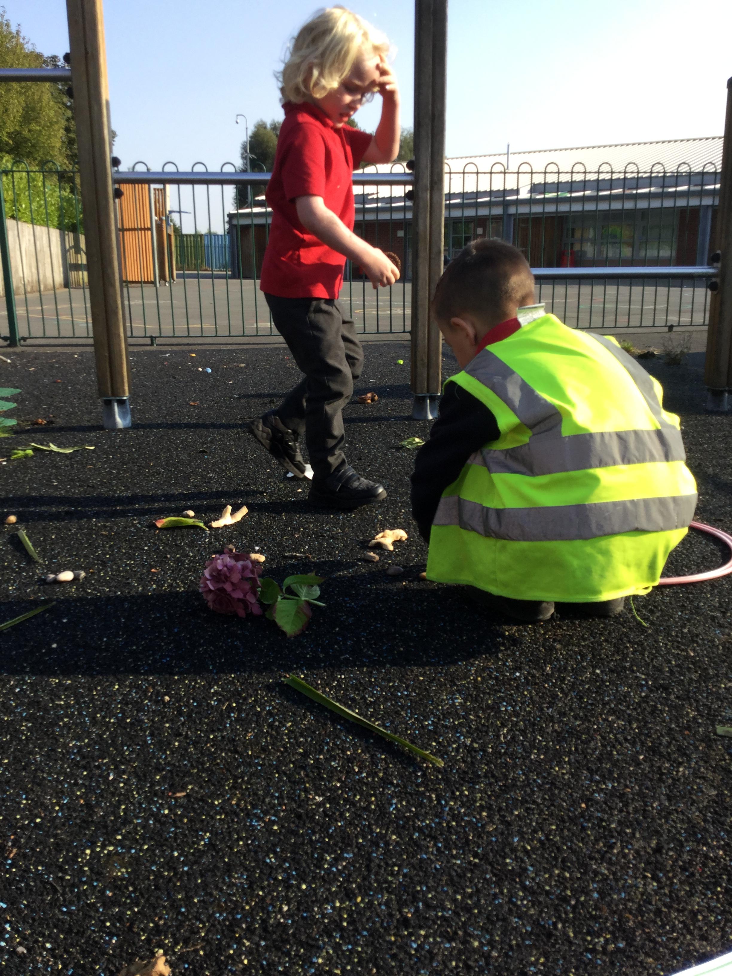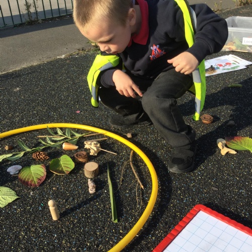 We have also taken the opportunity to take our learning outdoors this week. We had a great time using lots of different natural materials to create faces linked to the text Marvellous Me. And the work the children produced is truly marvellous. Take a little look ![]()