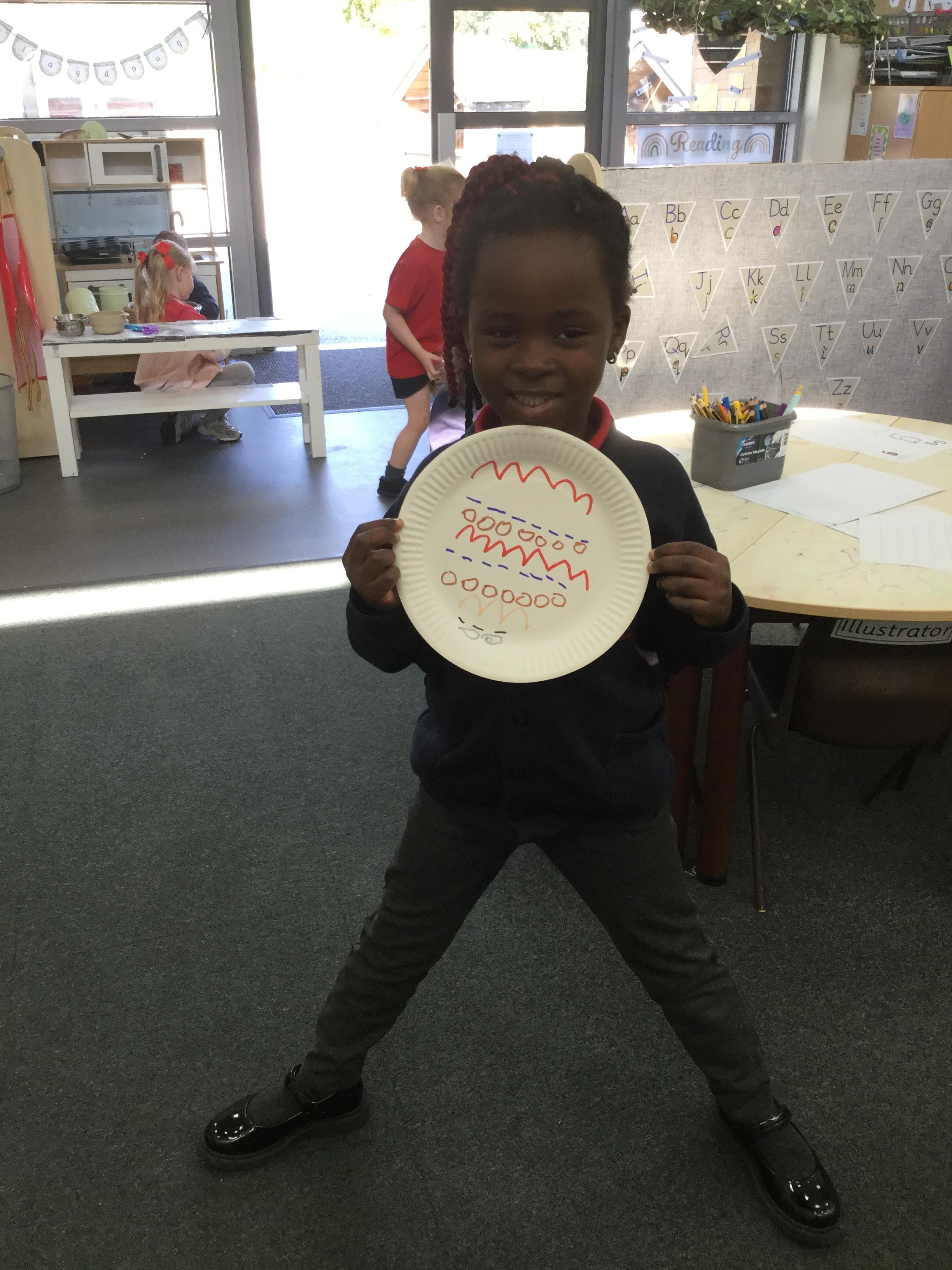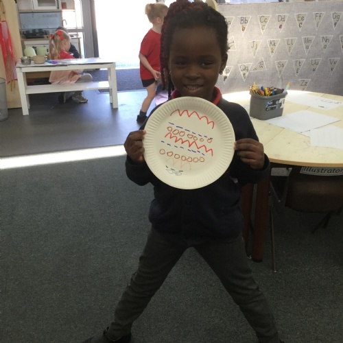 We have also been exploring pattern in the creative area. We have talked about repeating patterns, colours, shapes and the children explored creating their own pattern wheel. Take a look at these lovely examples ![]()