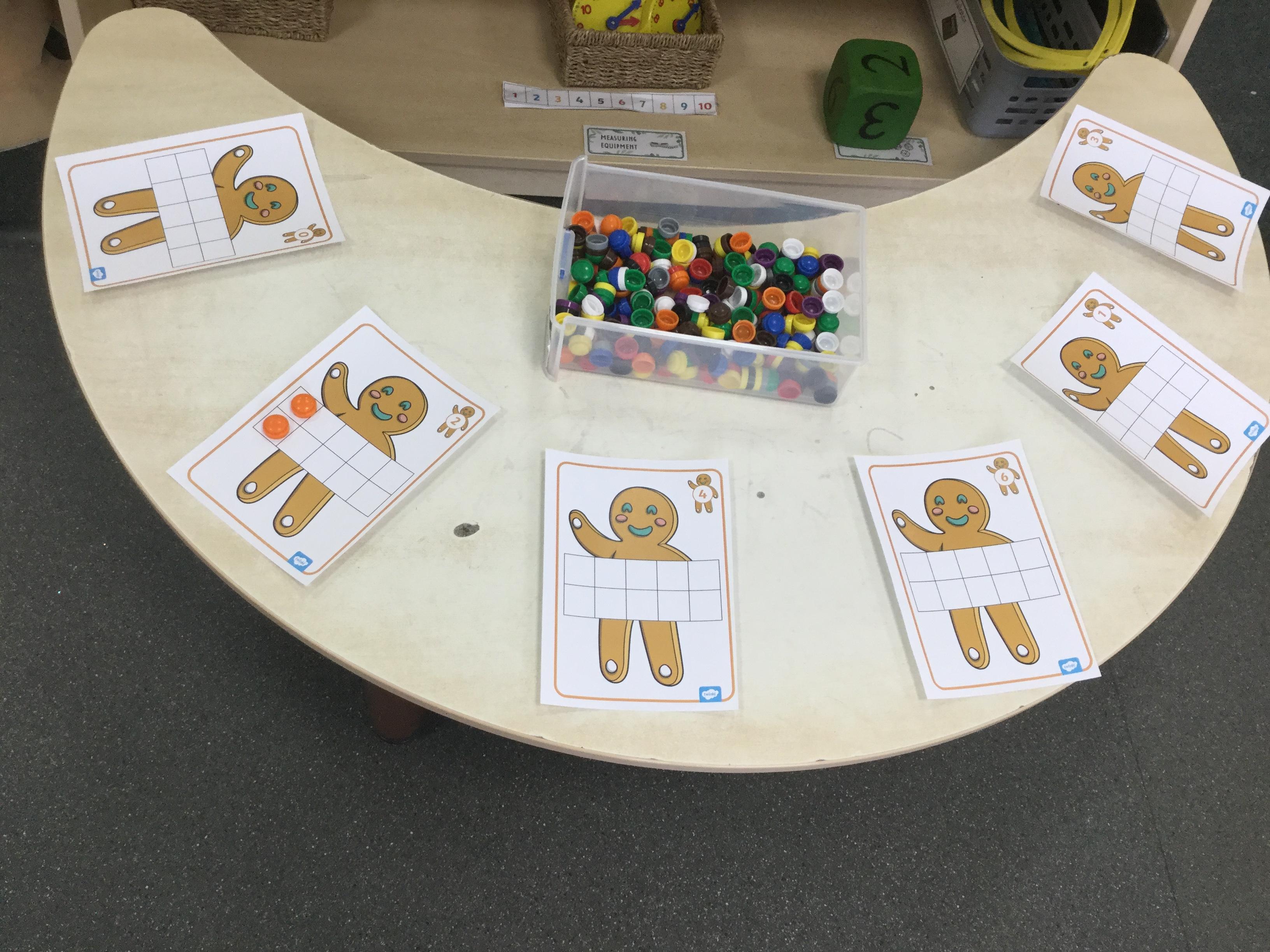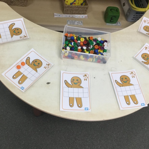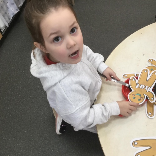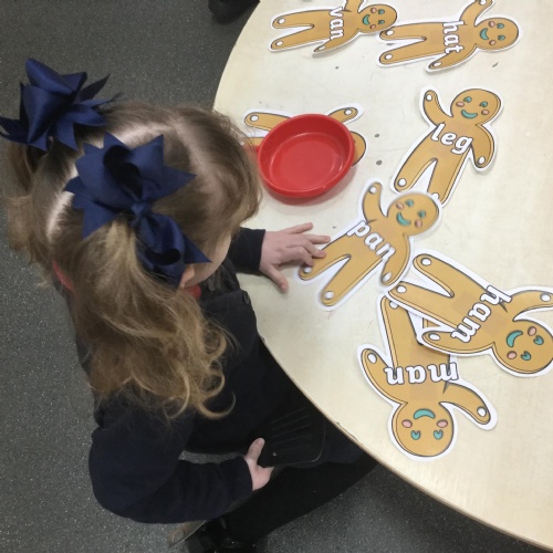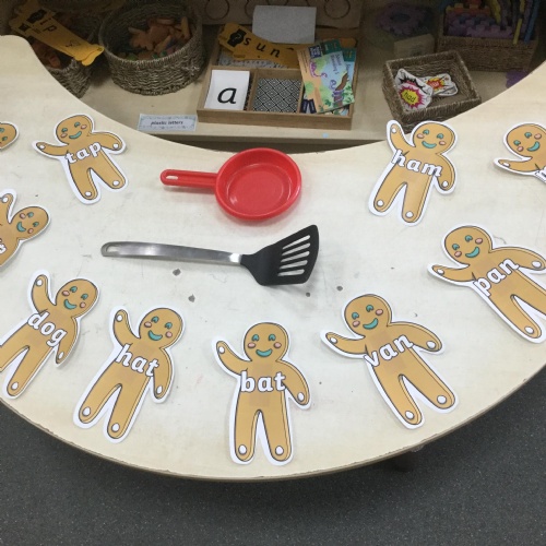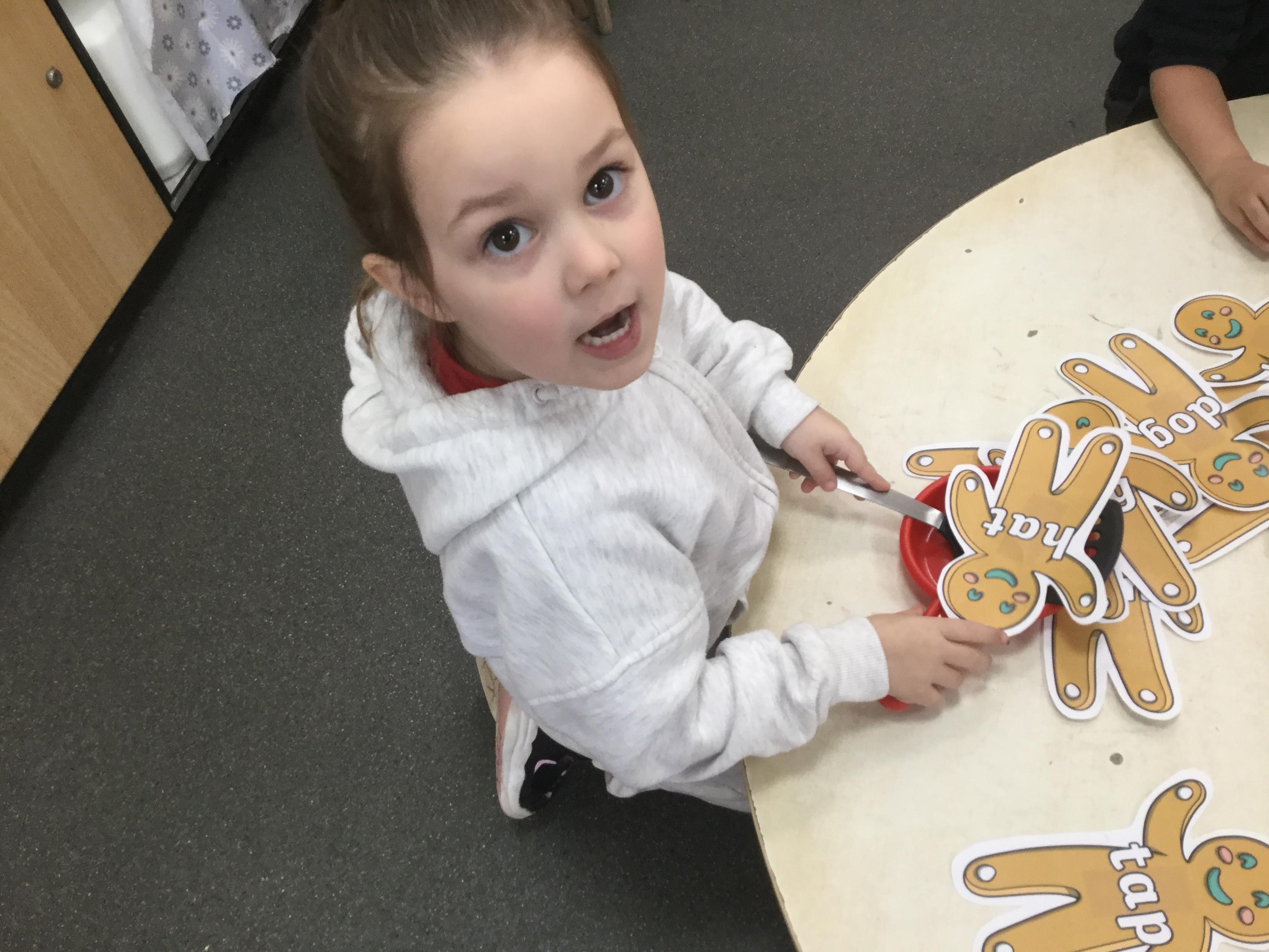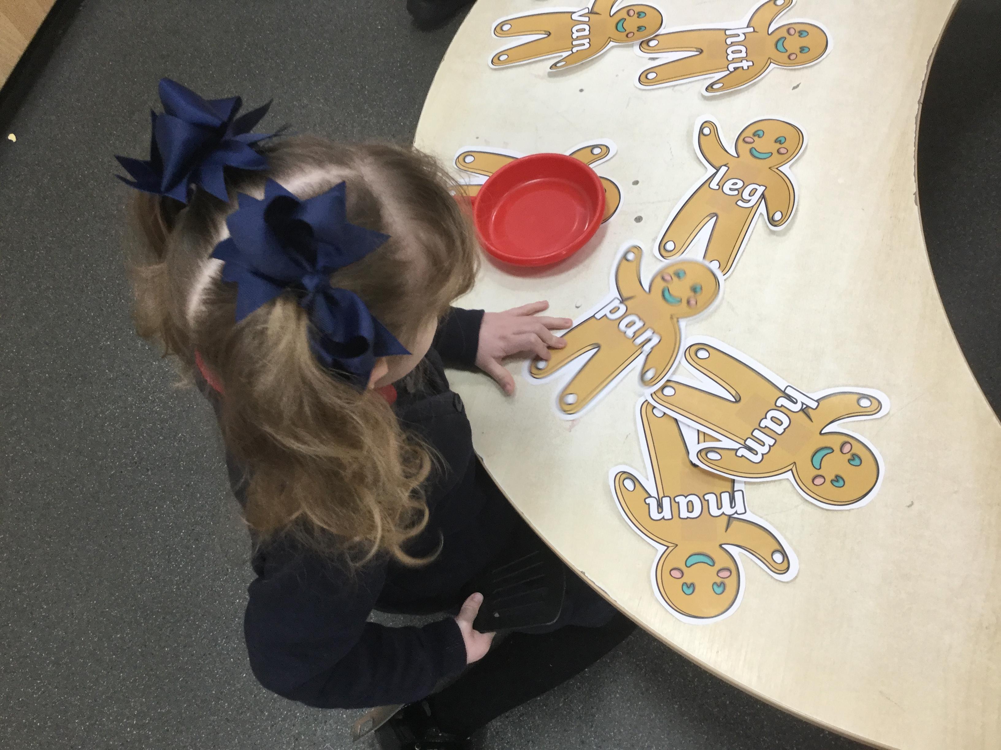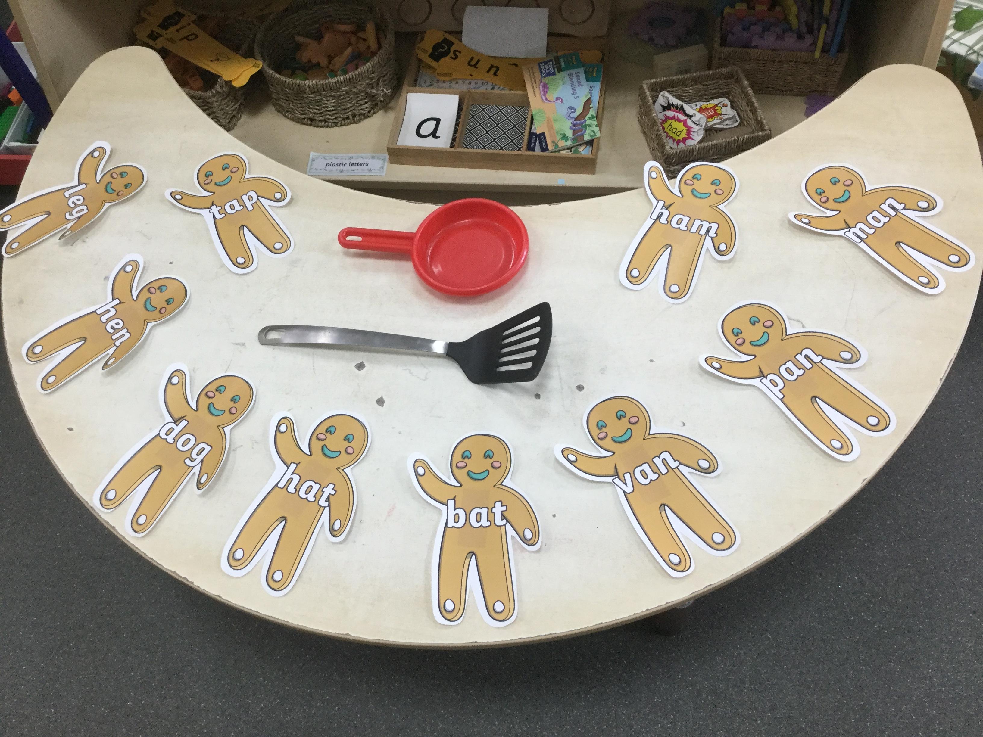 We have also been using the theme of Gingerbread Men to help us with our reading. We played a game were we had to choose a gingerbread, fred talk and read the game and then pop it into the pan to cook. We had such a fun time it hardly felt like learning!