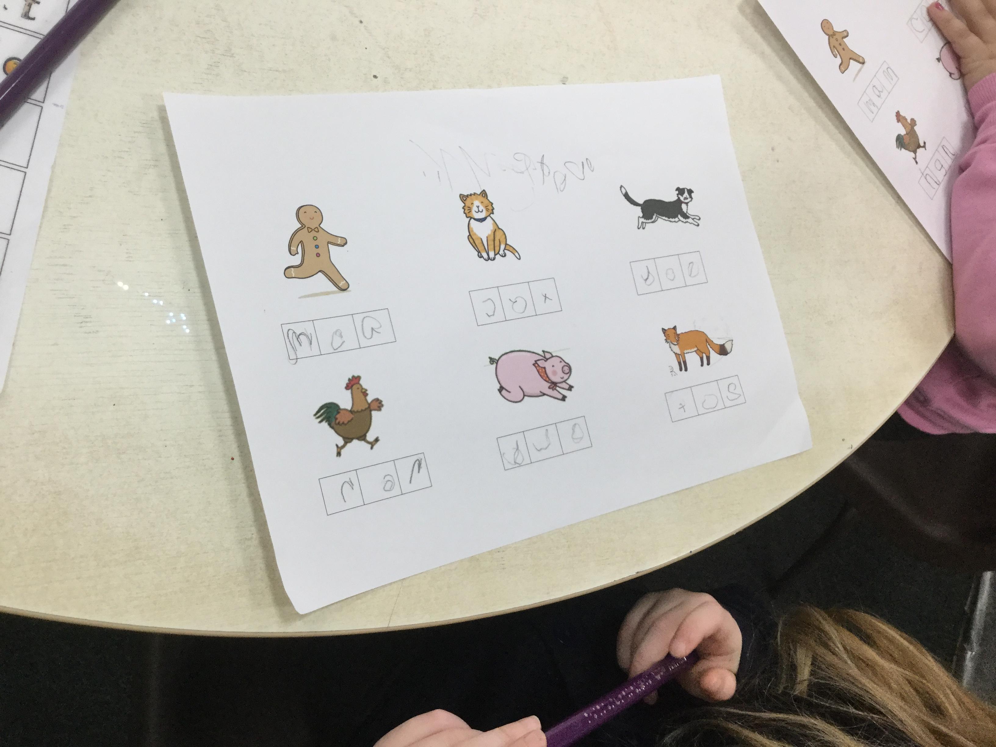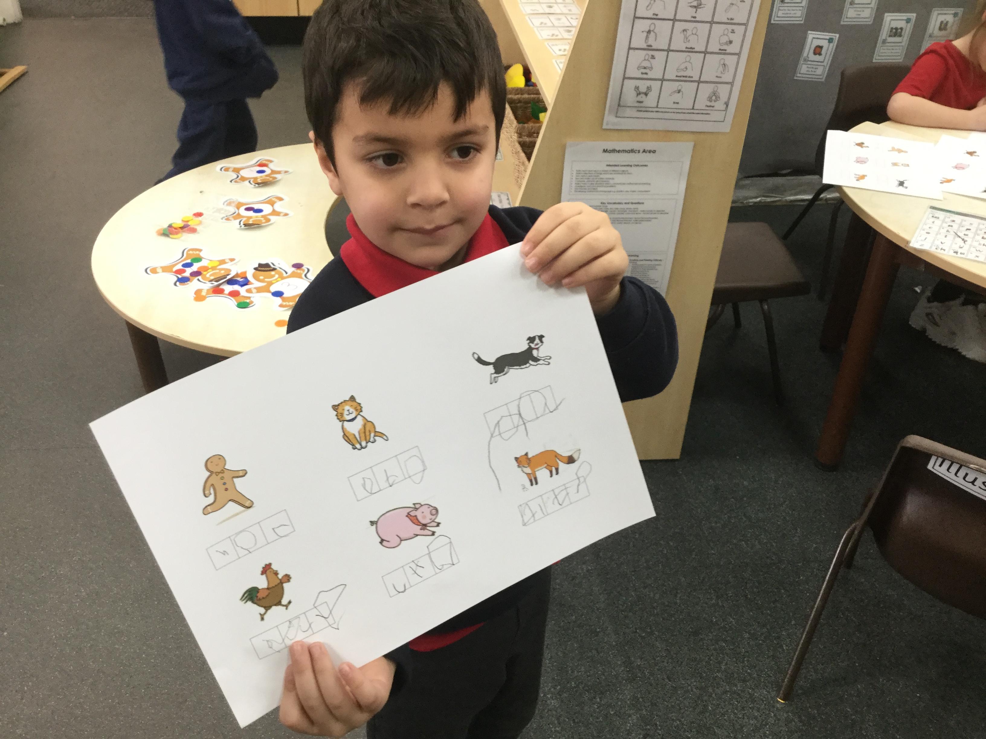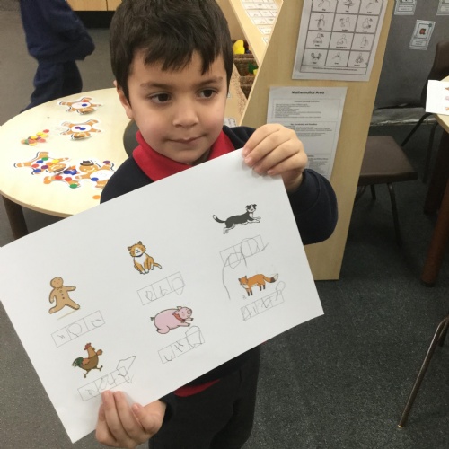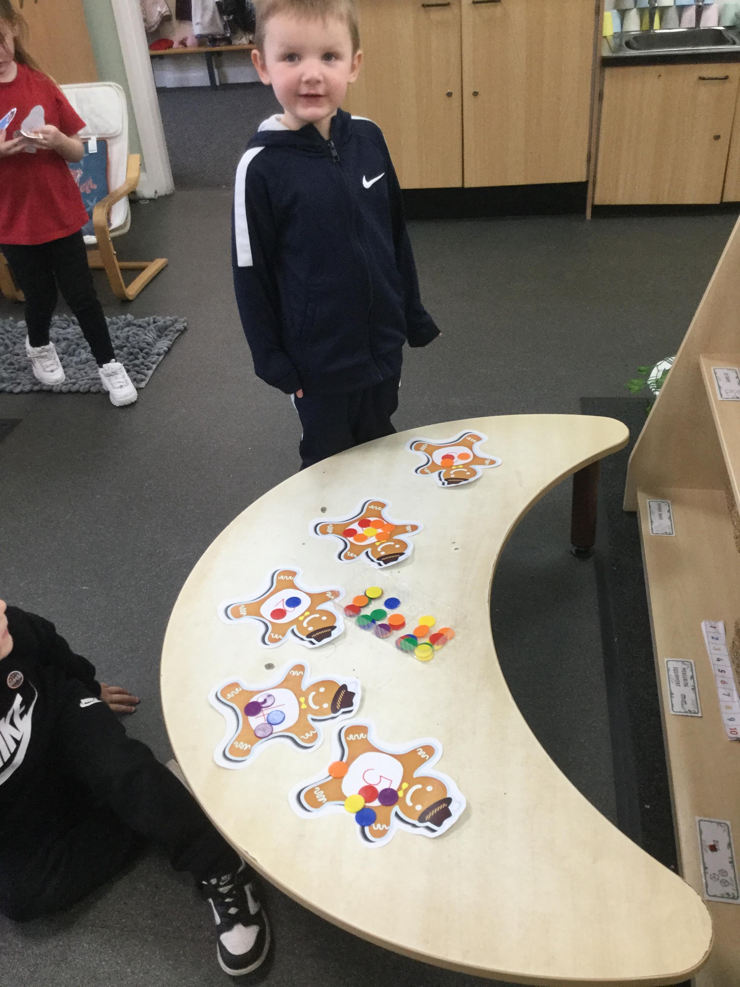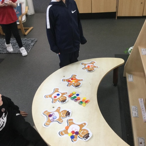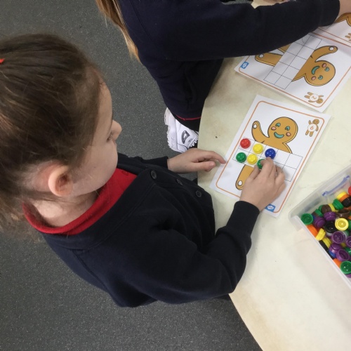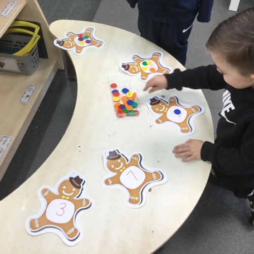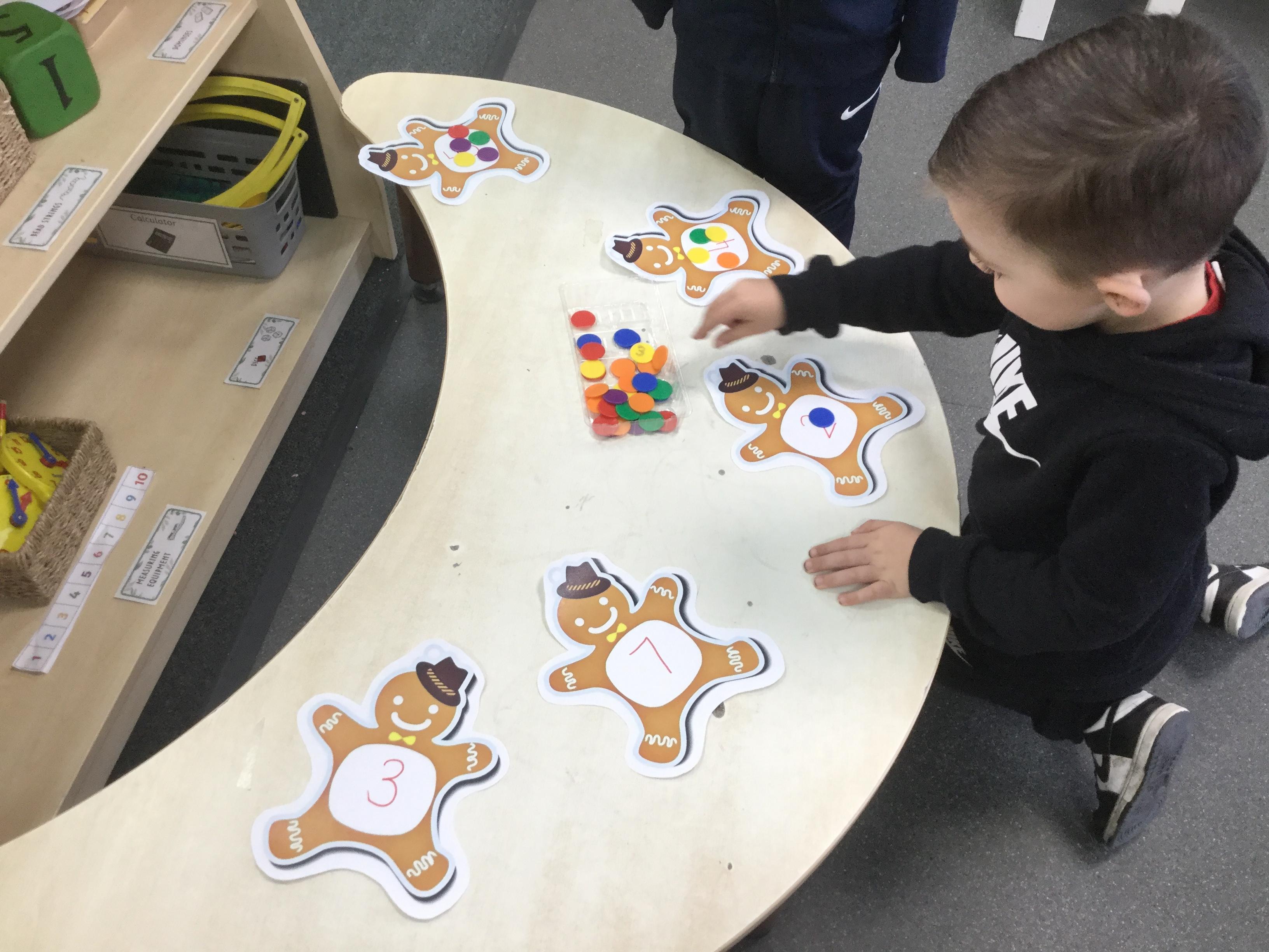 We have also been using the theme of Gingerbread Men to help us with our reading. We played a game were we had to choose a gingerbread, fred talk and read the game and then pop it into the pan to cook. We had such a fun time it hardly felt like learning!