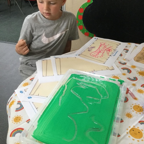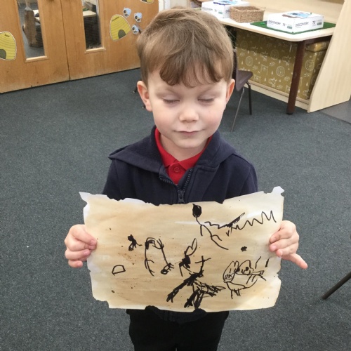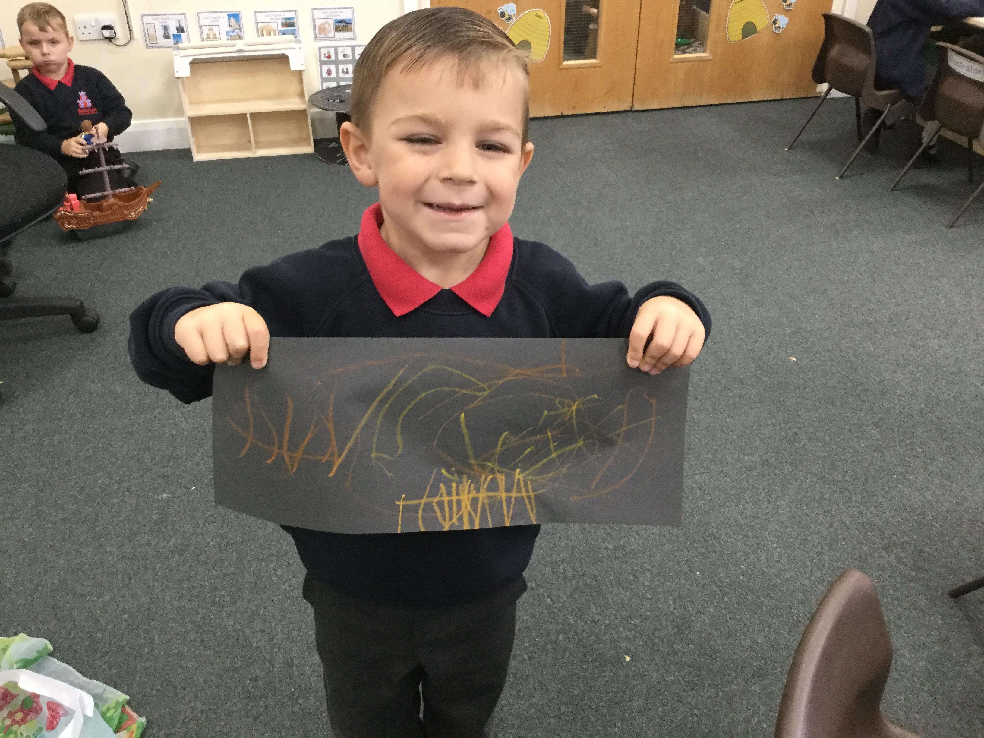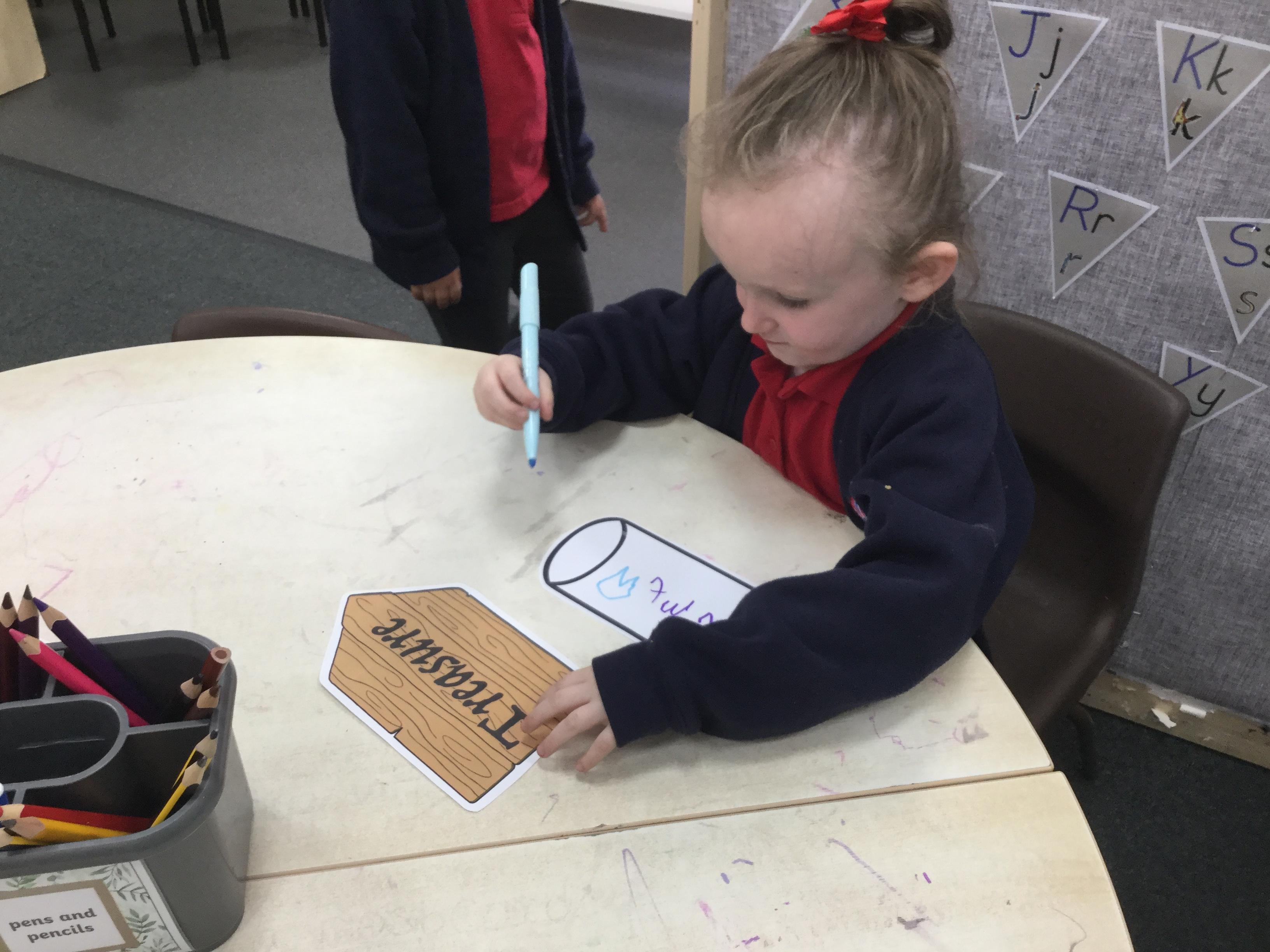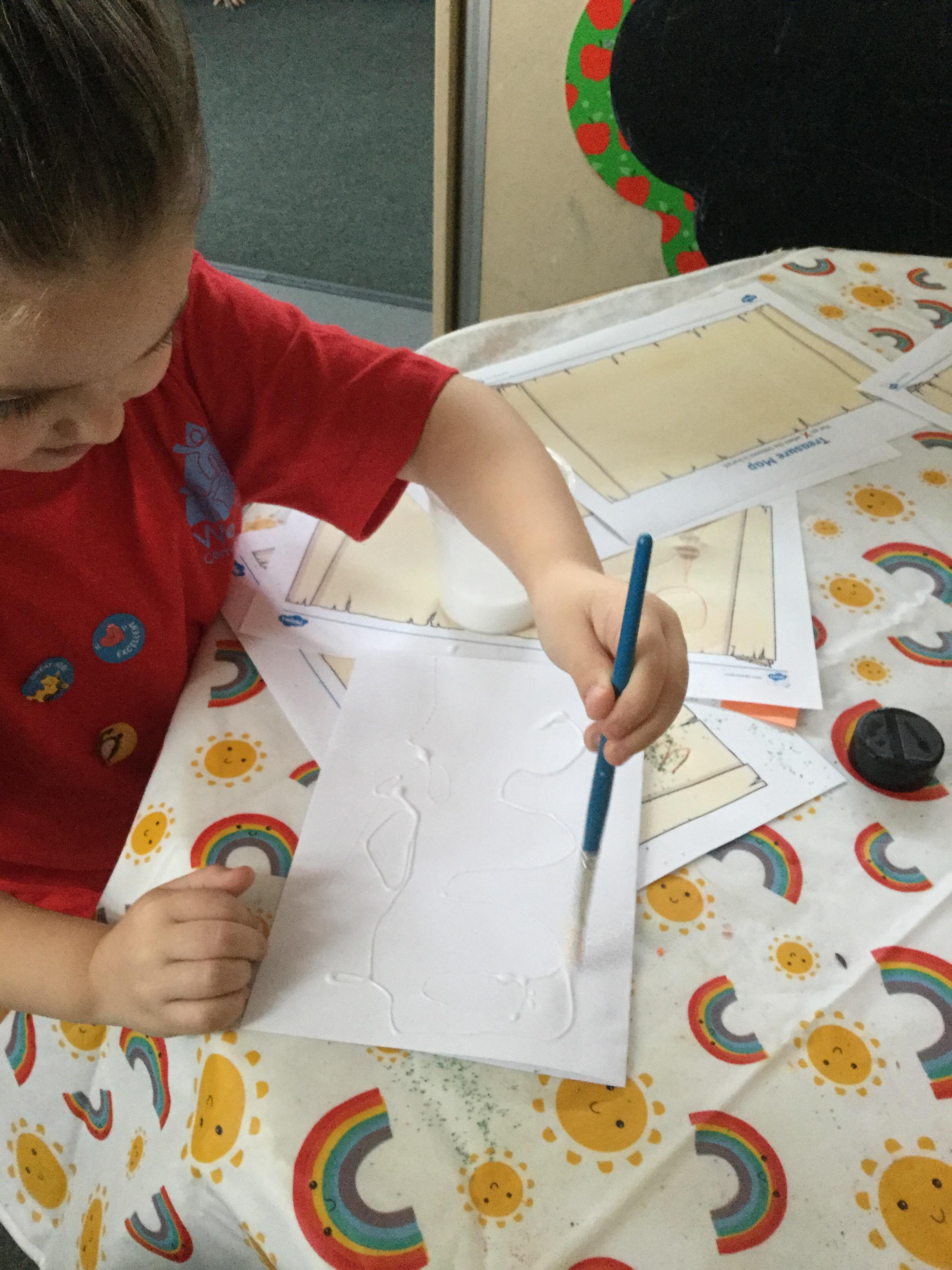 We have also been busy in the writing area in class. We created our very own pirate treasure map on weathered paper just like Pirate Jed used in the story.
