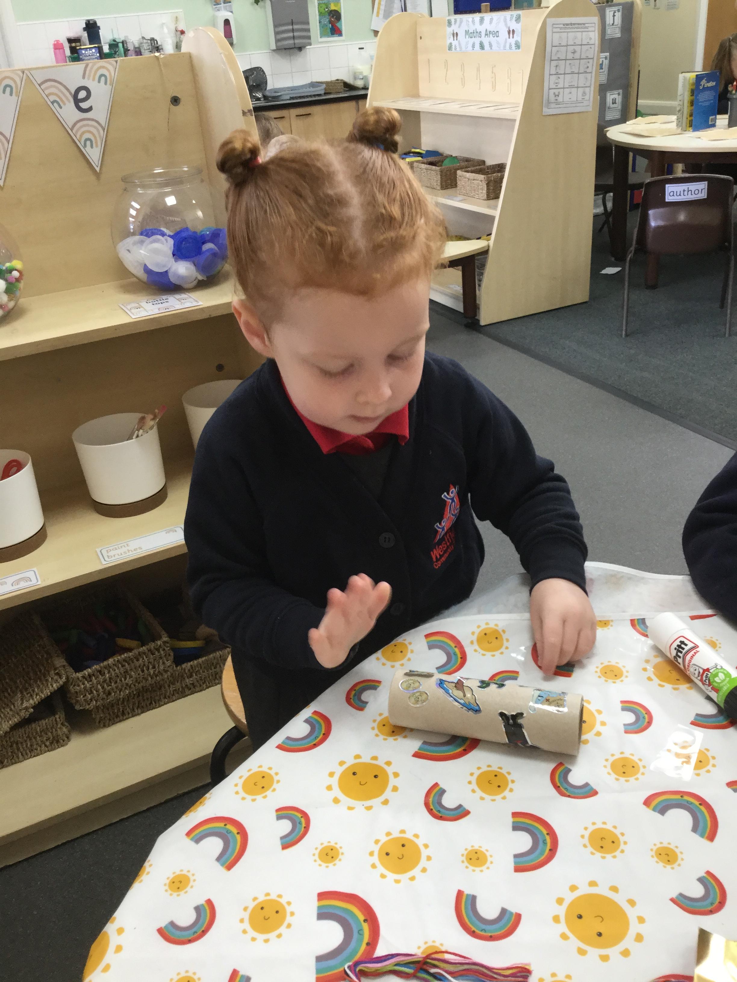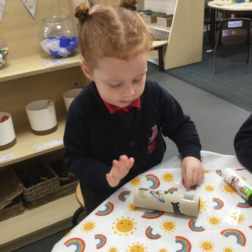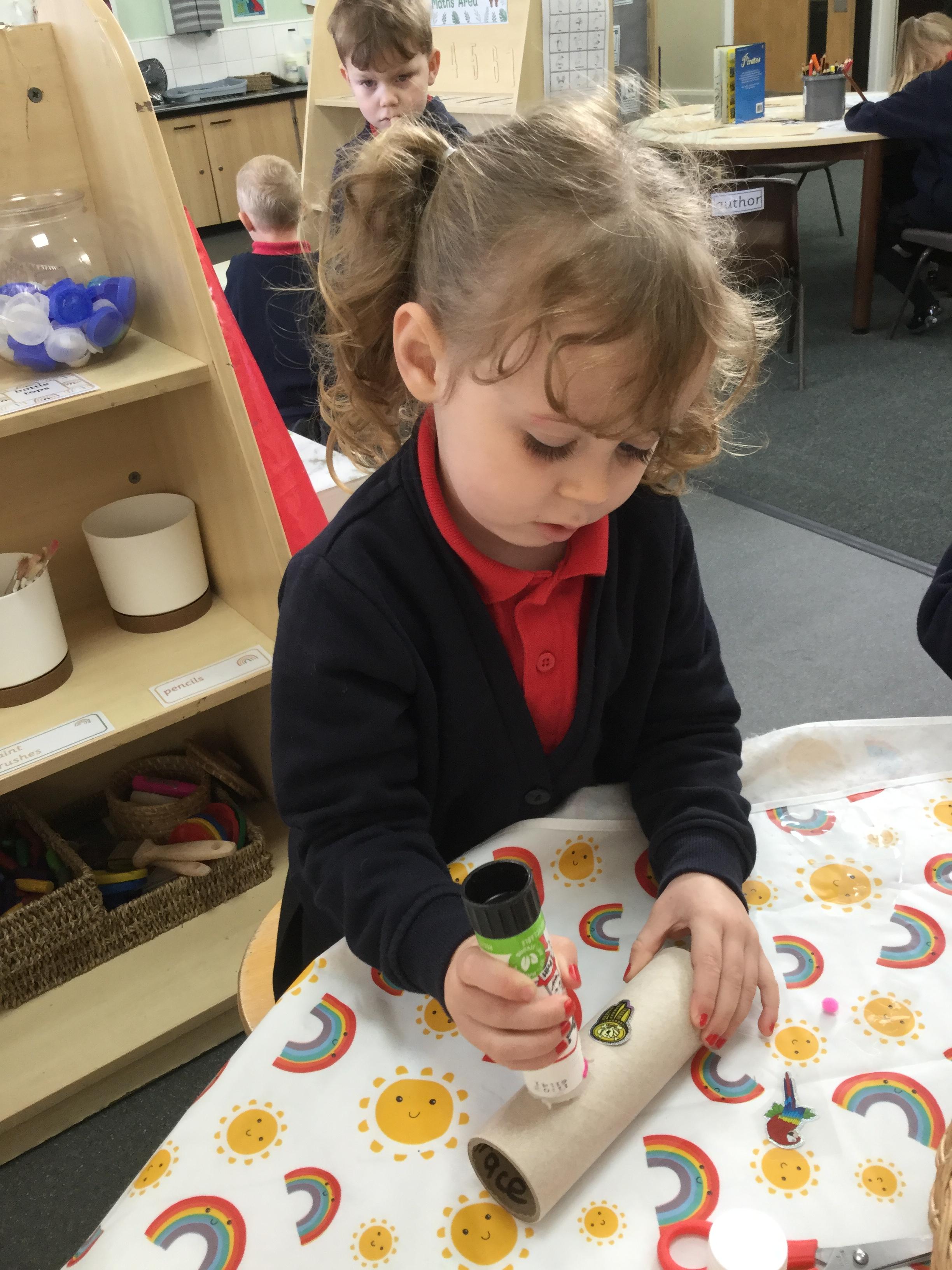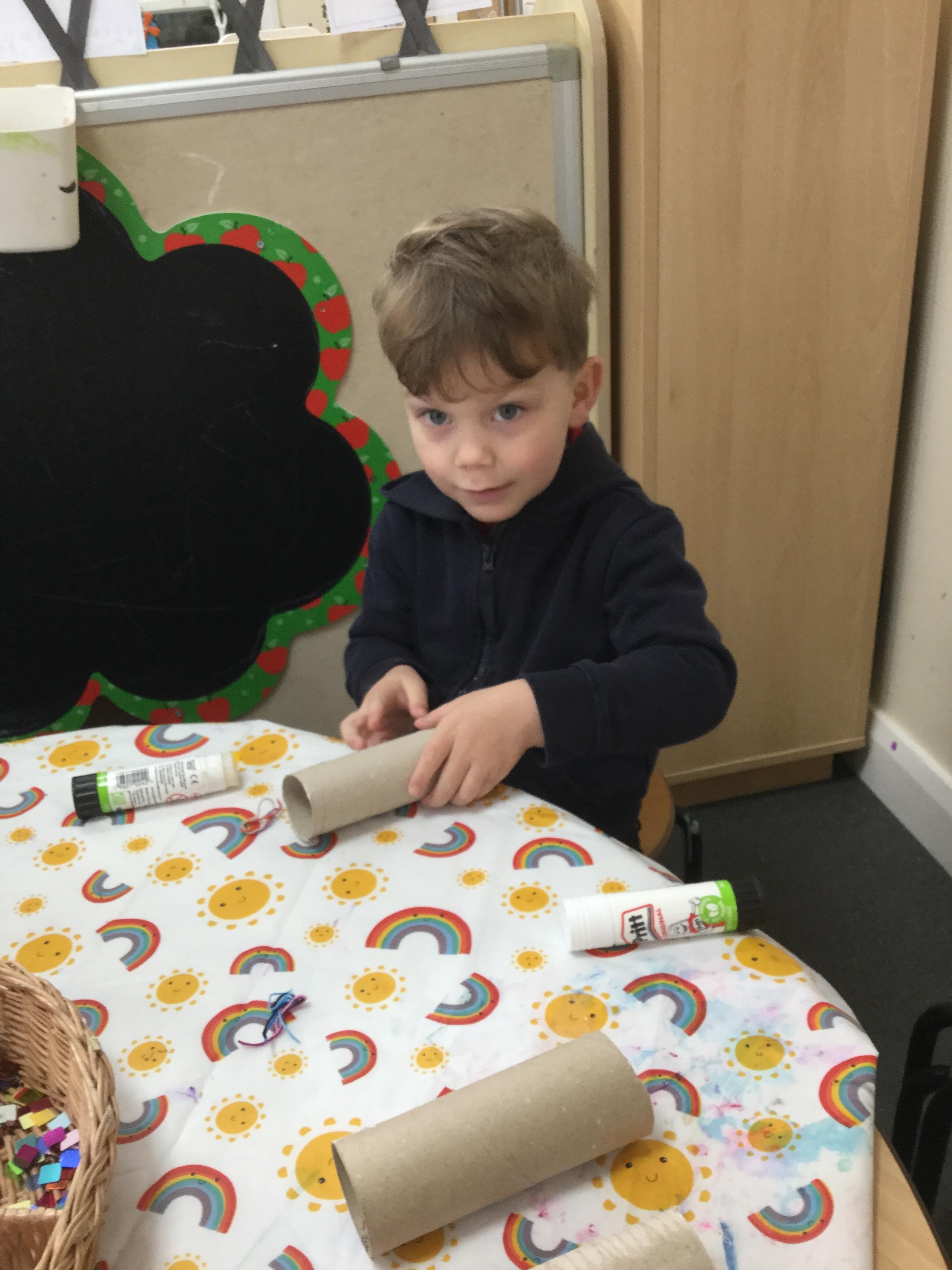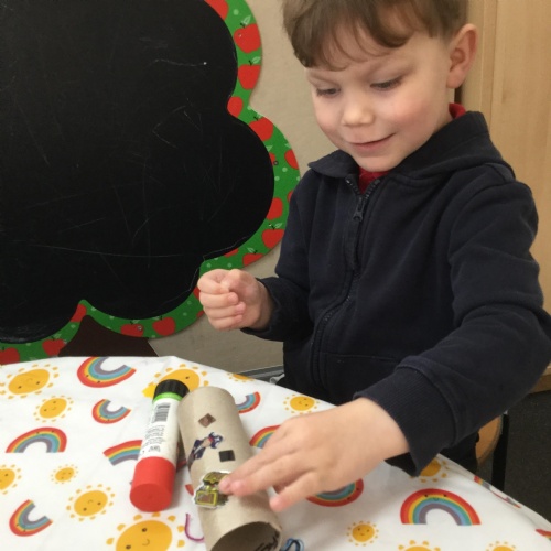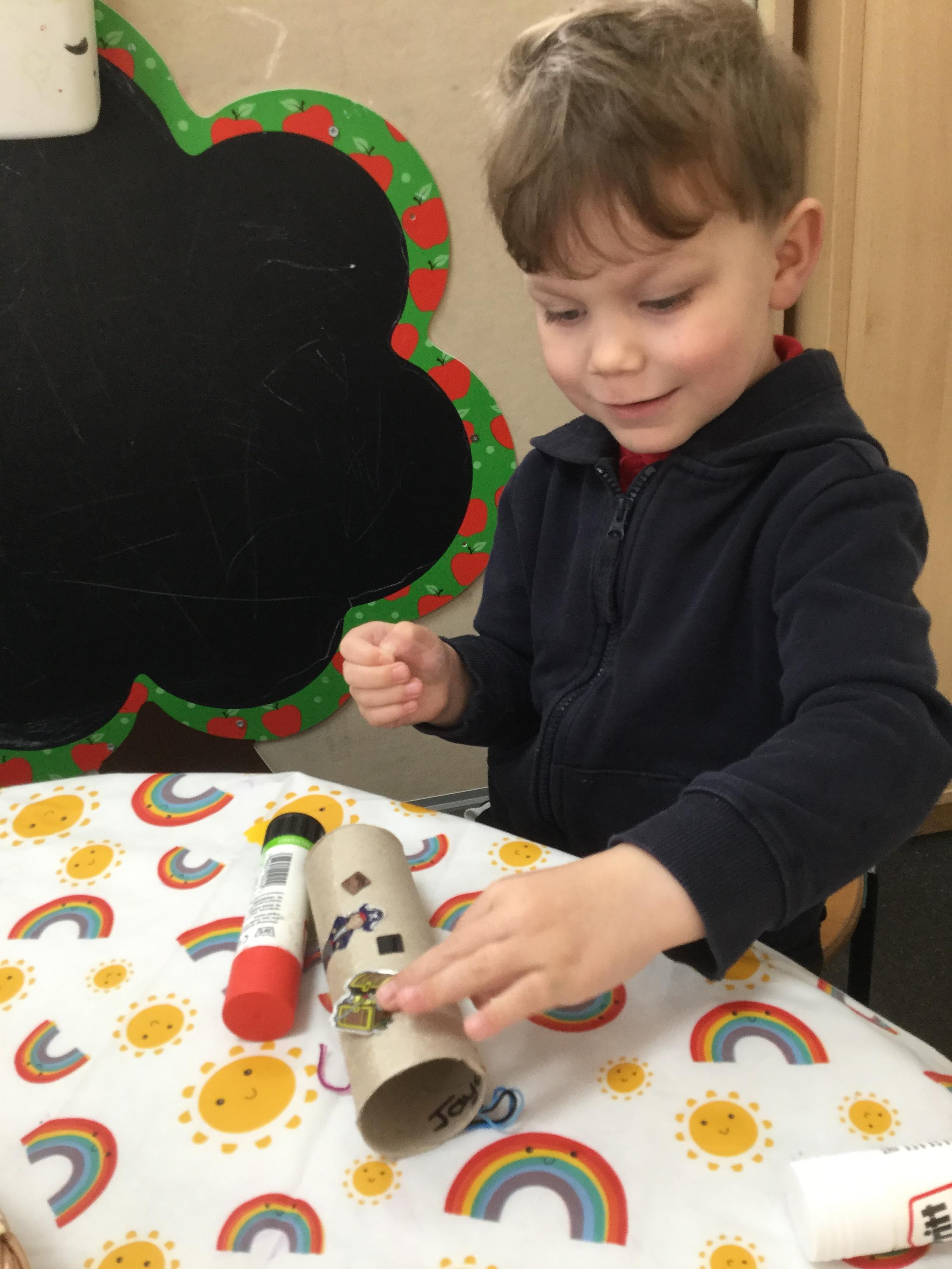 We have also been busy in the creative area. Every good pirate needs a telescope - just like Pirate Jed. Thank you to all those people who provided us with tubes. As you can see we had a great time designing, making and using our telescopes - a great way of developing our fine motor control ![]()