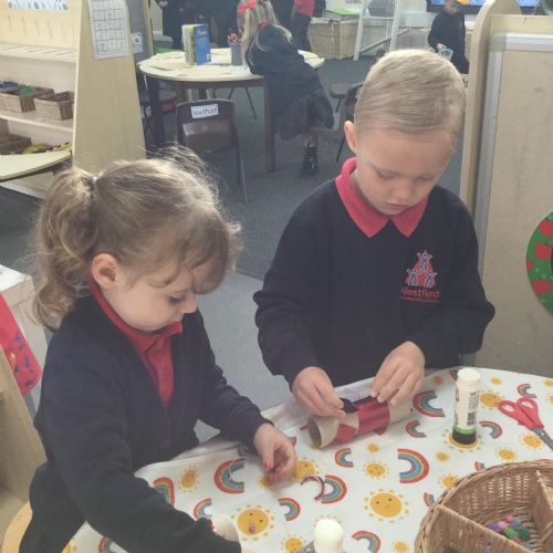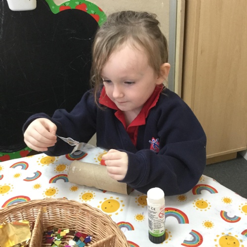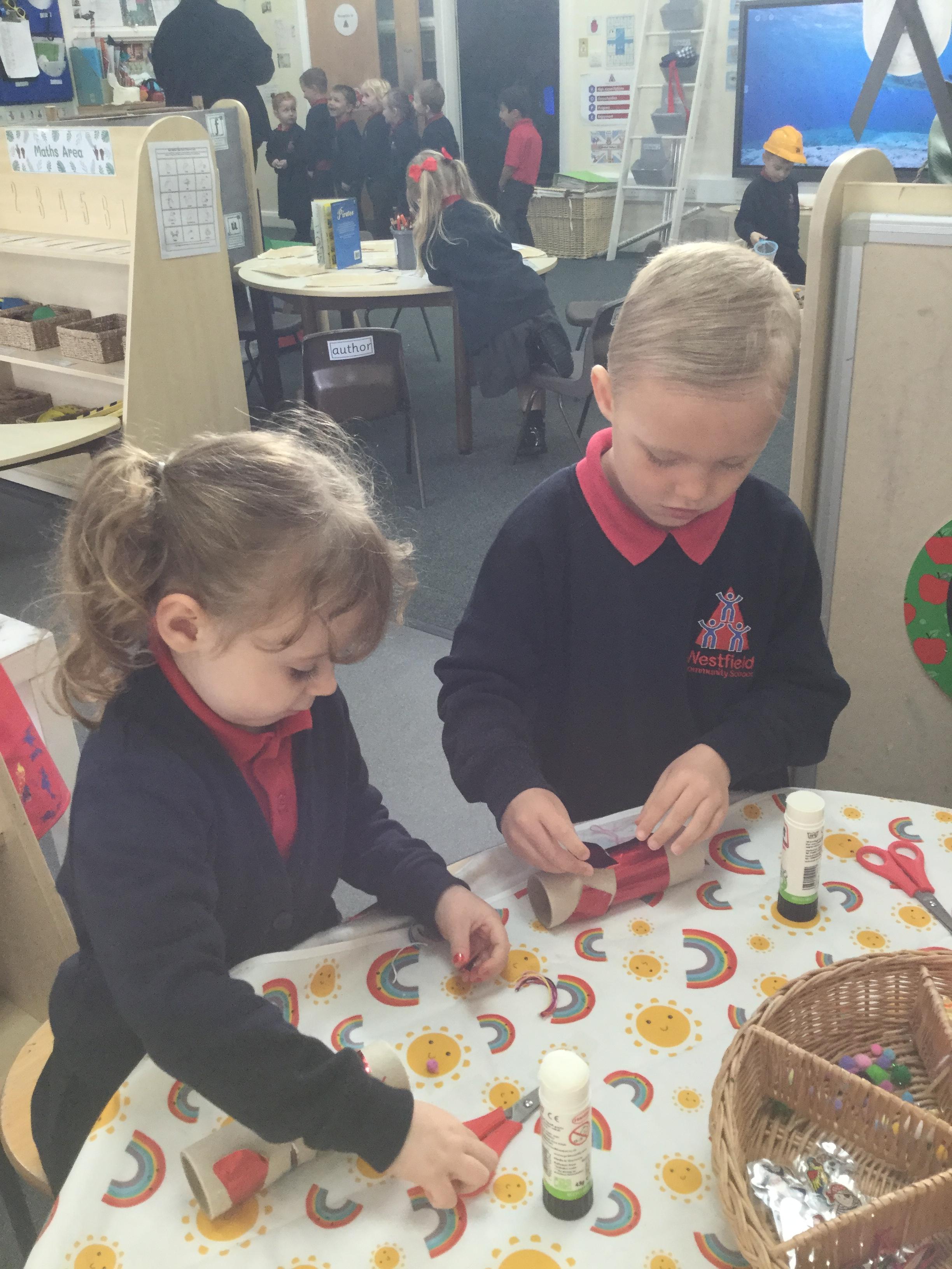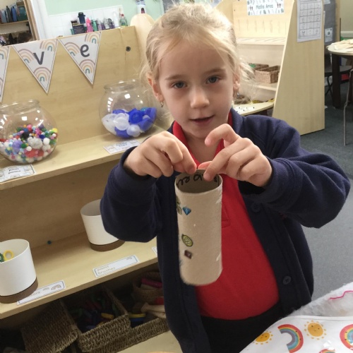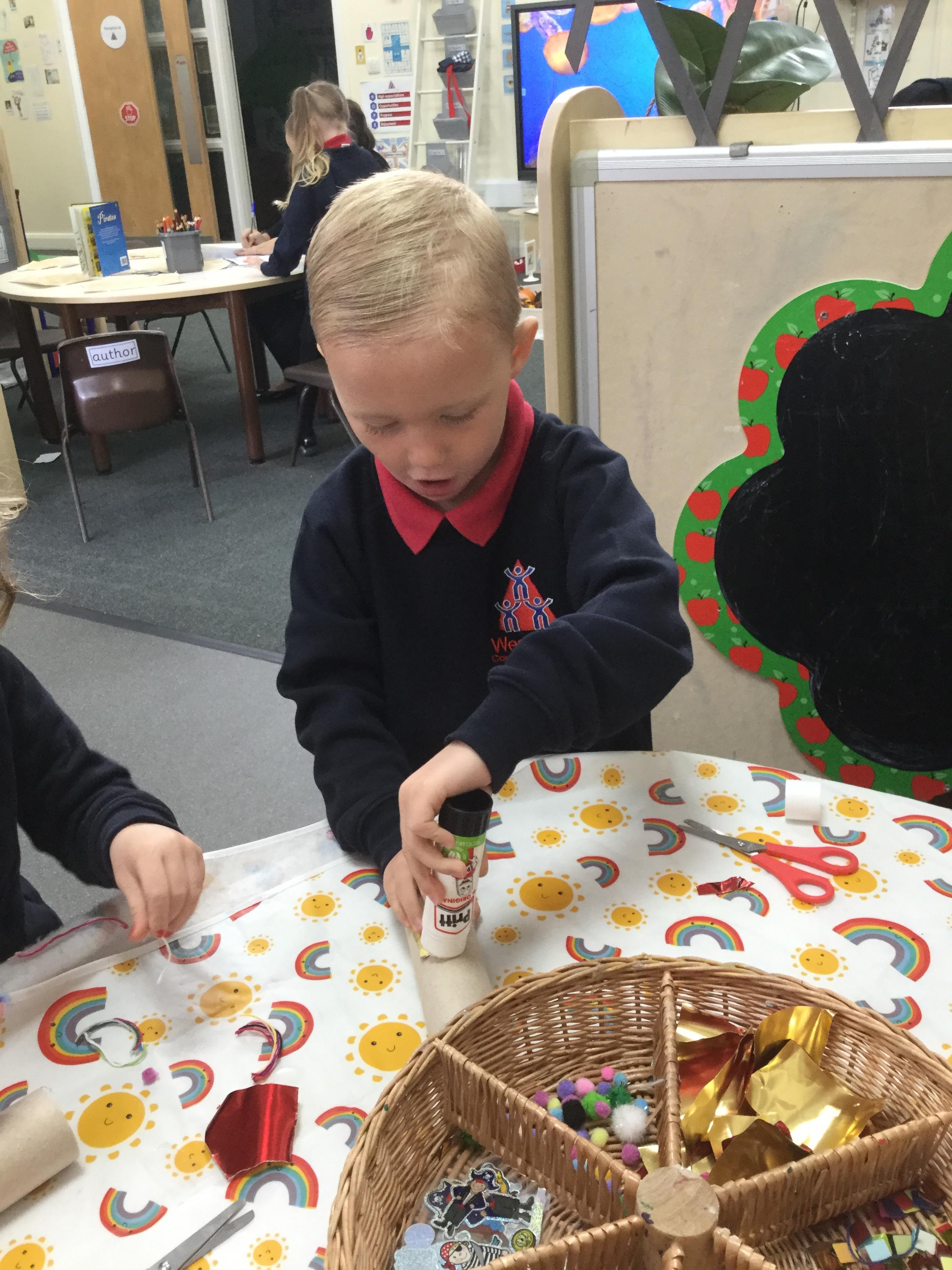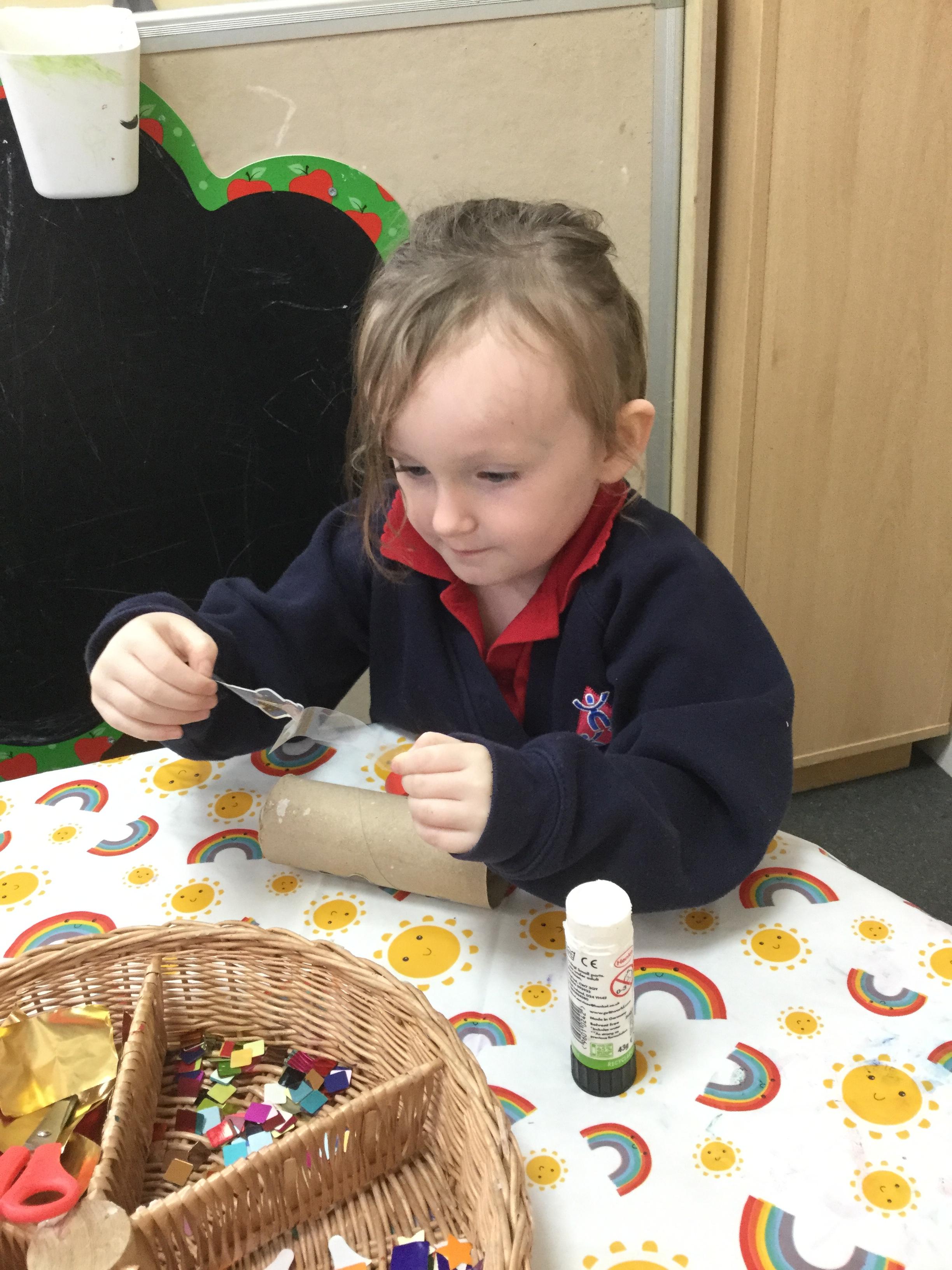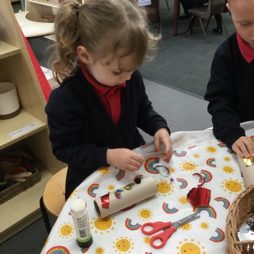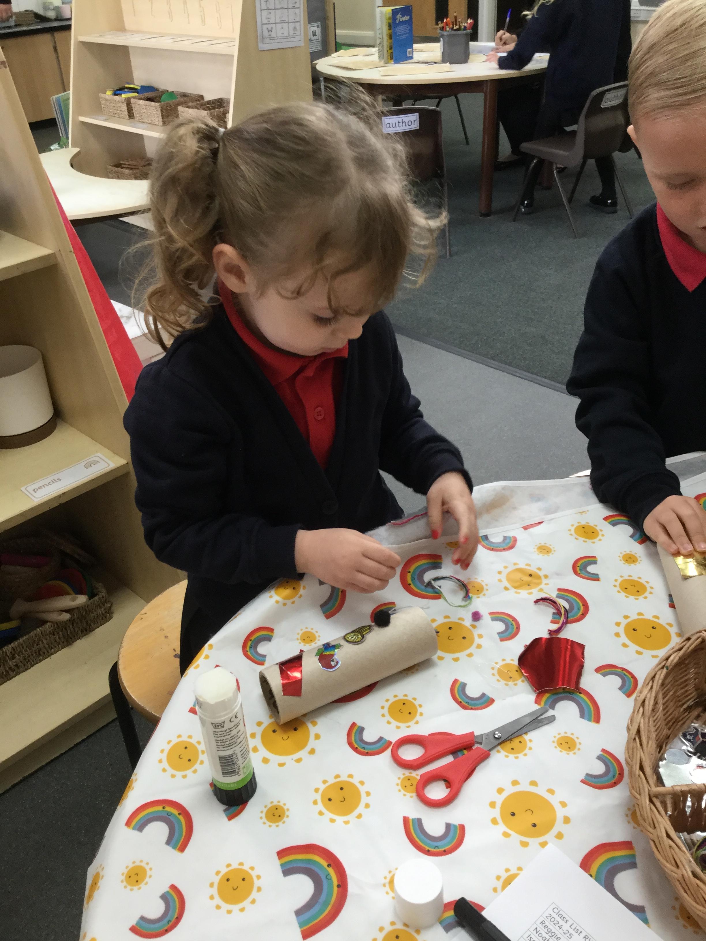 We have also been busy in the creative area. Every good pirate needs a telescope - just like Pirate Jed. Thank you to all those people who provided us with tubes. As you can see we had a great time designing, making and using our telescopes - a great way of developing our fine motor control ![]()