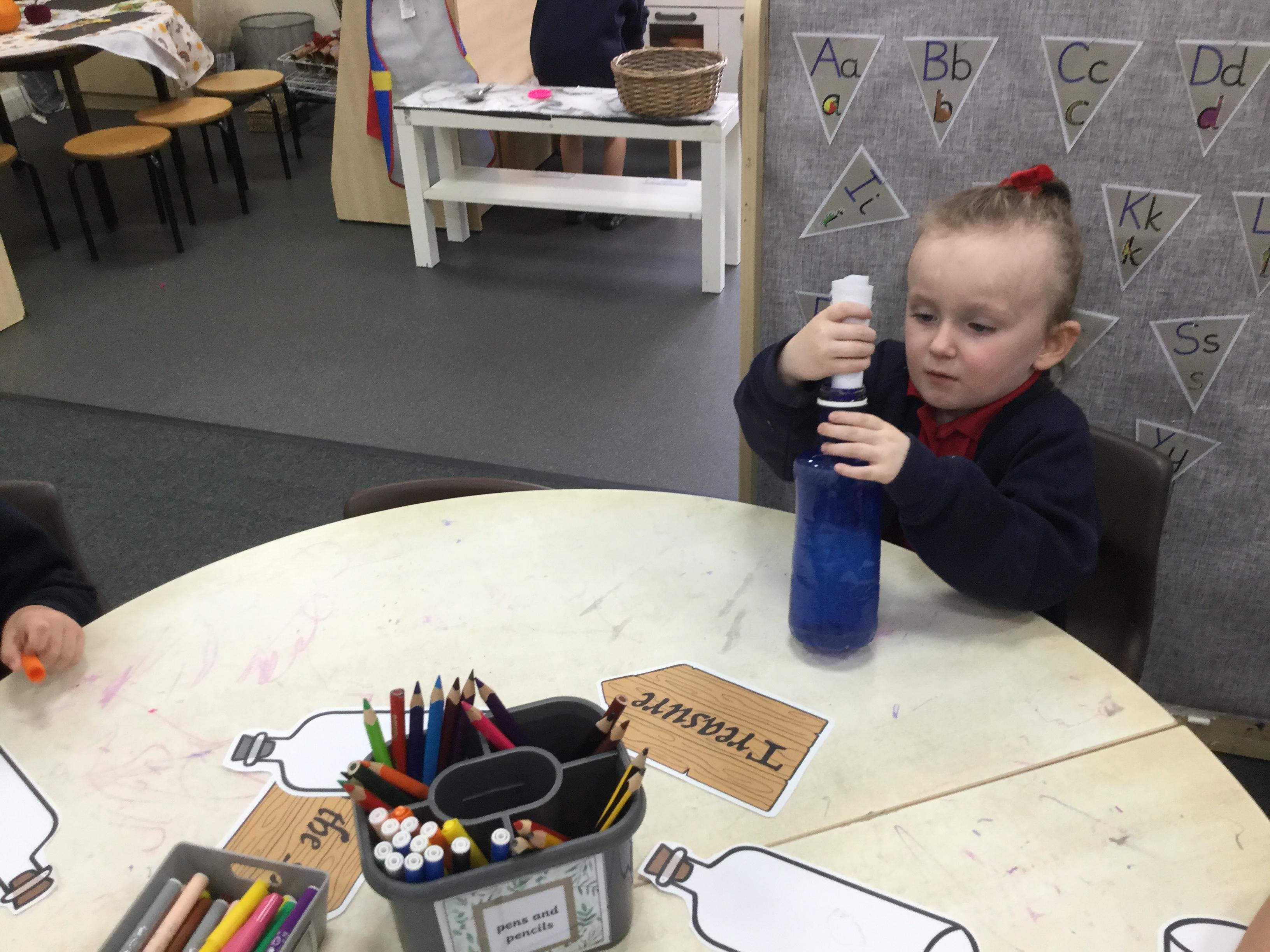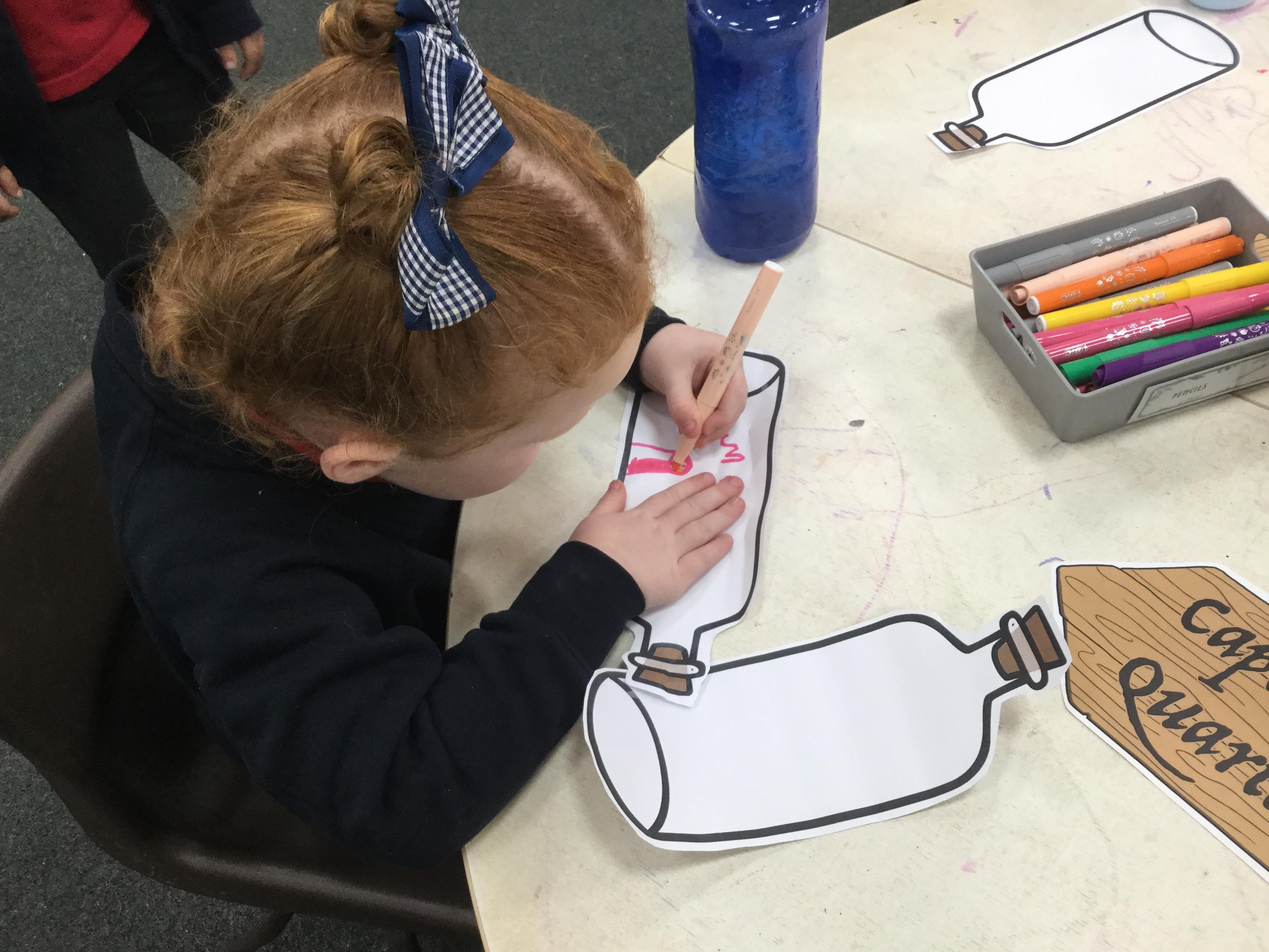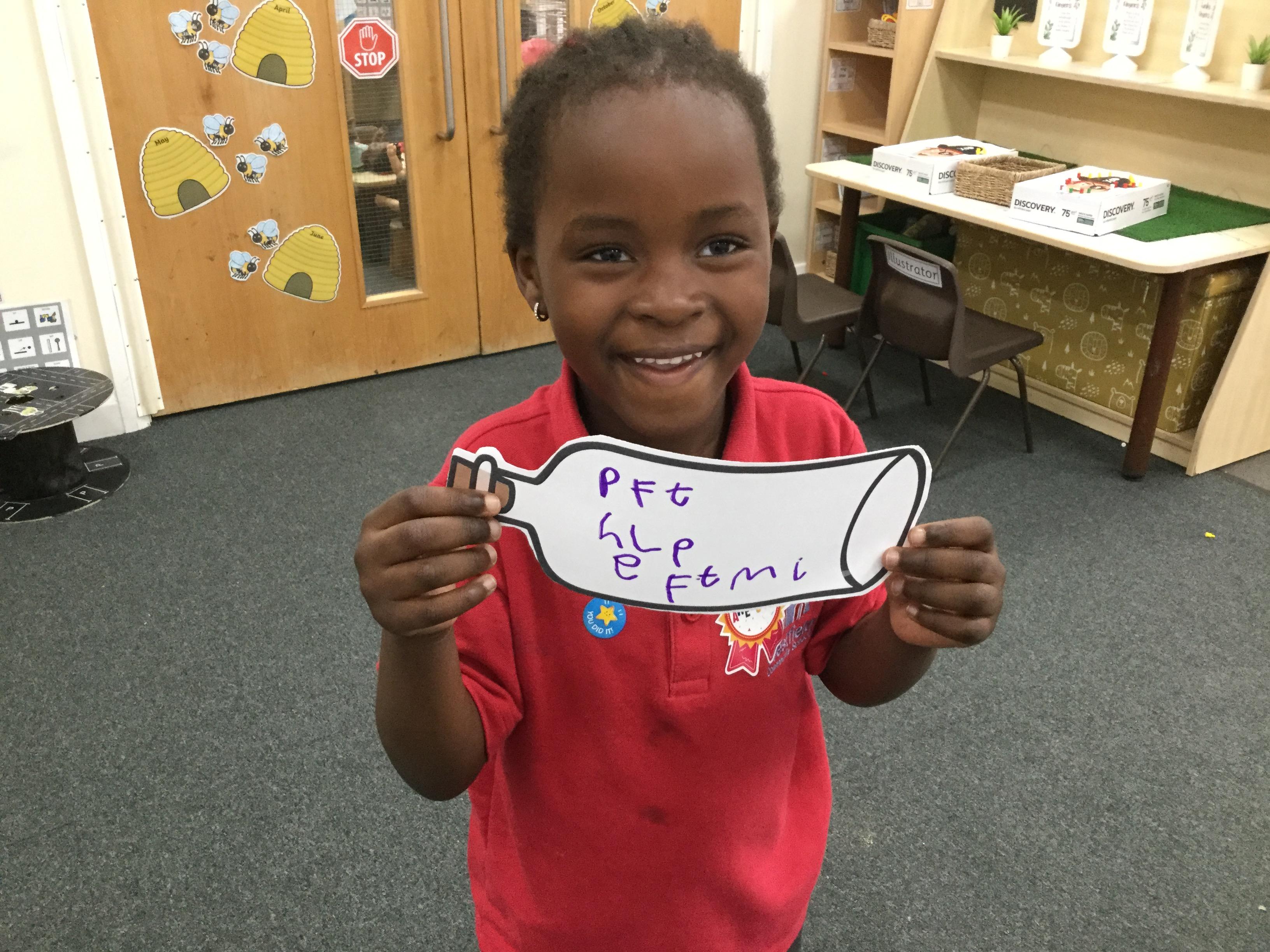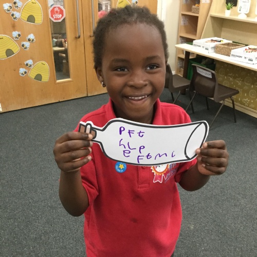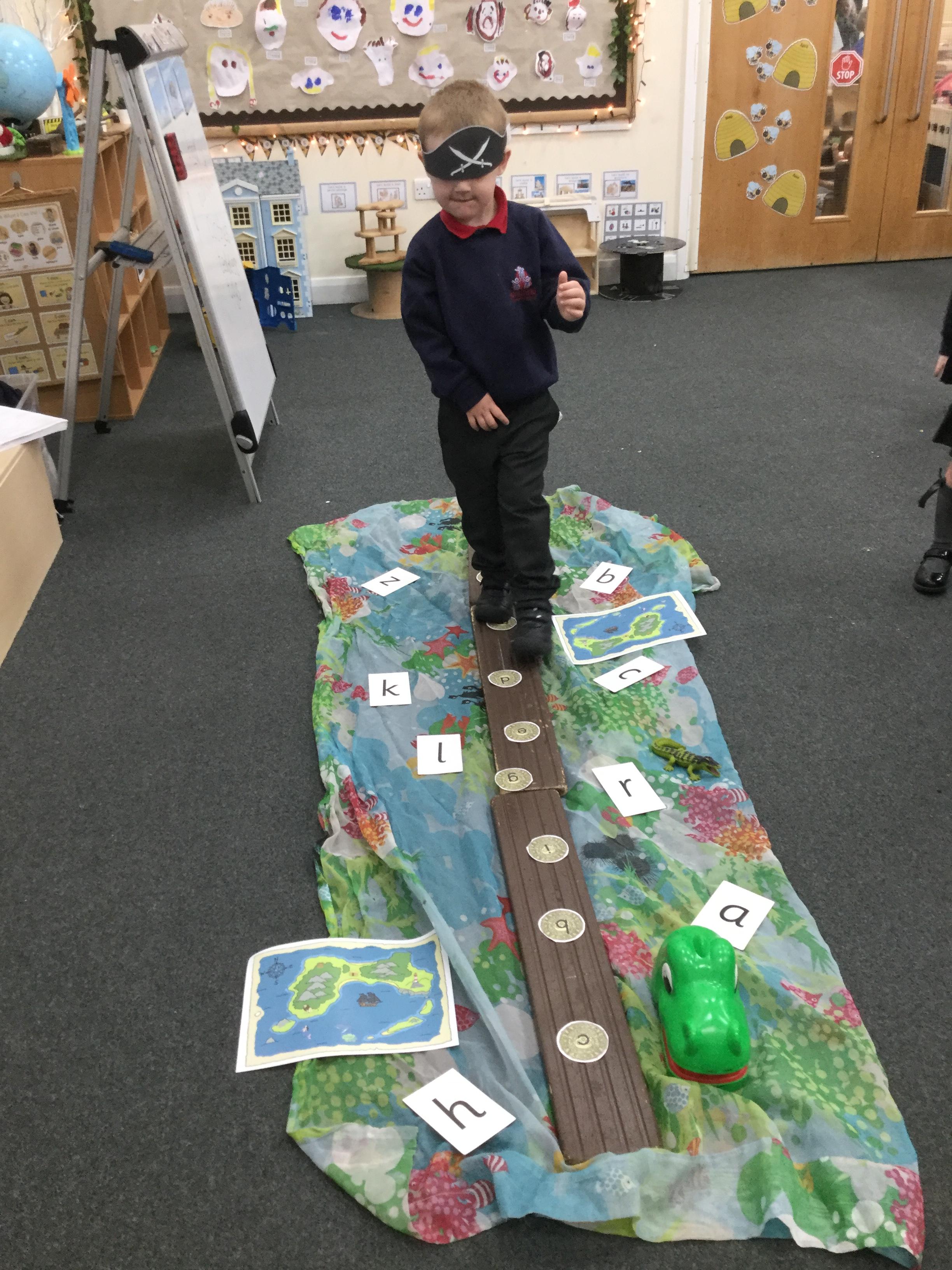 In true pirate style we have walked the plank - saying the letter sounds out loud and avoiding the crocodiles around us and creating messages in bottles. We have had such a wonderful week learning all about Pirate Jed and his family. Take a look at us in action ![]()
